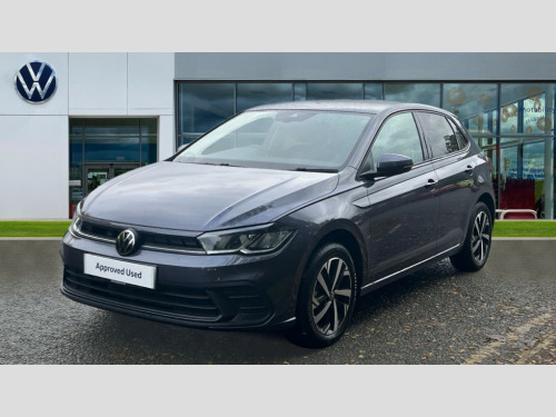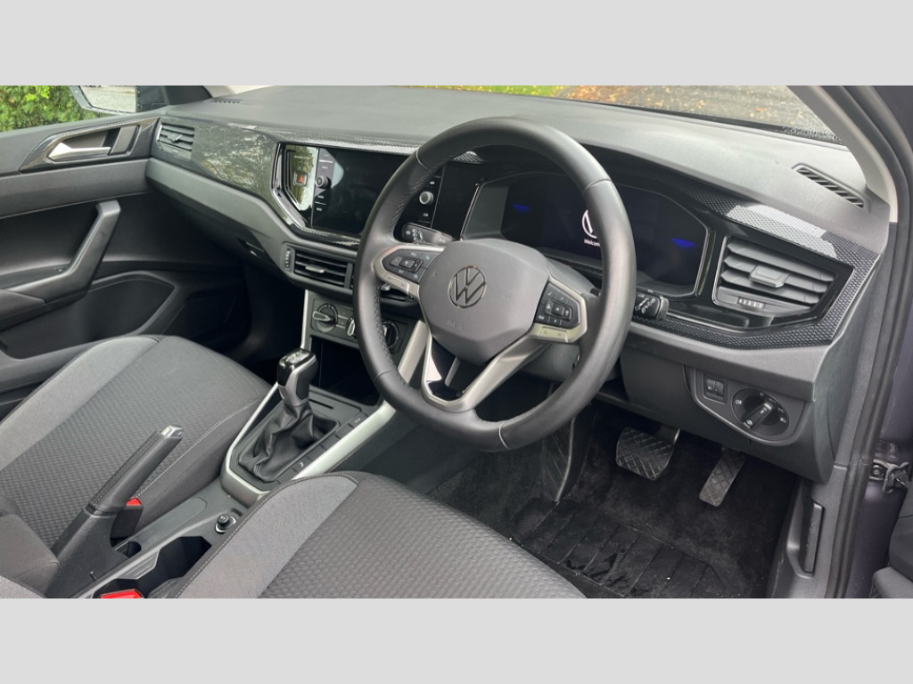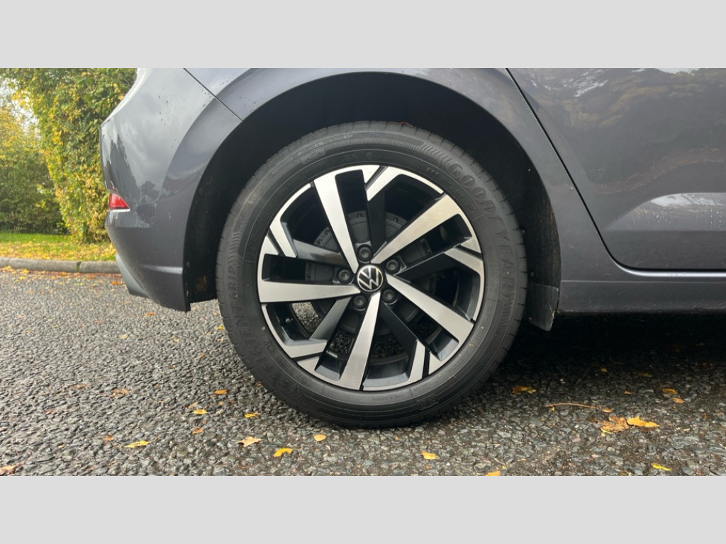 Volkswagen Polo 1.0 TSI Match 5dr DSG Advanced driver attention and drowsiness monitor, Bluetooth mobile phone interface, Dynamic road sign display, Emergency call service, Multifunction front facing camera for distance control, Park distance control, Power assisted speed sensitive steering, Predictive adaptive cruise control without follow-to-stop and speed limiter, Preparation for navigation system with media and internet package, Preparation for We connect and We connect plus, Rear view camera, Speedo and rev counter, electronic odometer, trip, service interval display and exterior temperature gauge, Standard rear axle, Travel Assist - Lane keeping system and traffic jam assist, Travel assist including emergency assist, Trip computer, Warning signal and warning light for front and rear seatbelts not fastened, Washer fluid level indicator, Wireless app connect, Front wheel drive, Rear shock absorpion, Start-stop system with battery regeneration (recuperation - energy recovery during braking), DAB Digital radio, Diversity antenna for FM reception, Front and rear 6 speakers, Automatic dimming interior rear view mirror, Automatic headlight control with LED separate daytime running lights with coming/leaving home function, Body colour bumpers with chrome inserts, Body colour door handles, Body colour door mirrors, Electric front windows, Engine badge deletion, Headlight range adjustment, Heat insulating and laminated safety glass windshield, LED Headlights, LED rear combination lamps, Power folding adjustable/heated exterior mirrors and front passenger exterior mirror lowering function, Rain sensor, Rear electric windows, Rear fog light, Rear side wing doors, Rear tinted glass from B-pillar backwards approx 65% tinted, Rear windscreen washer and wiper with interval delay, Third brake light, 12V power socket in centre console, 2 front and 2 rear reading lights with switch off delay and dimmer, 2 USB-C ports in the front, 2 USB-C charging sockets on the center console in the rear, 3 rear head restraints, 60/40 split folding rear seat and rear seat bench not split, Ceramique roof lining, Chrome plated radiator grille inserts, air vent surrounds and light switch surrounds, Door and side trim panel, Driver and front passenger seat height adjustment, Driver/passenger sunvisors with illuminated vanity mirrors, Front centre armrest, Front seat backrest storage pockets, Front standard seats, Handbrake lever handle in leather, Hartley/Thomas cloth upholstery, Headliner in recycled material, Isofix child seat preparation easy-fit (for two outer rear seats, and front passenger seat) compatible with I-size, Leather trimmed gear knob, Luggage compartment cover, Luggage compartment lighting, Removable luggage compartment floor, Single front passenger seat, Standard climatic zones, Standard pedal cluster, Three spoke leather wrapped multifunction steering wheel with shifting paddles, Light and vision pack - Polo, 3 point height adj front seatbelts + pretensioners, 3 point seat belt for centre rear seat, 3 point seatbelts, outer rear with ECE lable, ABS, Driver and front passenger airbag with front passenger airbag deactivation, Drivers and front passengers safety optimised head restraints, ESC (Electronic stability control) + EDL (Electronic Differntial lock) and ASR (Traction control), Extended and predictive pedestrian/ cyclist protection, Front assist with autonomous emergency braking (for Adaptive Cruise Control ACC up to 130 mph), Front curtain and side airbags with center airbag, Front disc brakes, Hill hold control, Manual child lock in rear doors, Rear drum brakes, Single tone horn, Tyre pressure loss indicator, Alarm with interior protection, Anti-theft alarm system with interior monitoring, backup horn, and towing protection, Anti-theft wheel bolts, Electronic engine immobiliser, Lava stone black gloss/matt decorative inserts in dash and front door panels, 16" Torsby alloy wheels, Low rolling resistance tyres