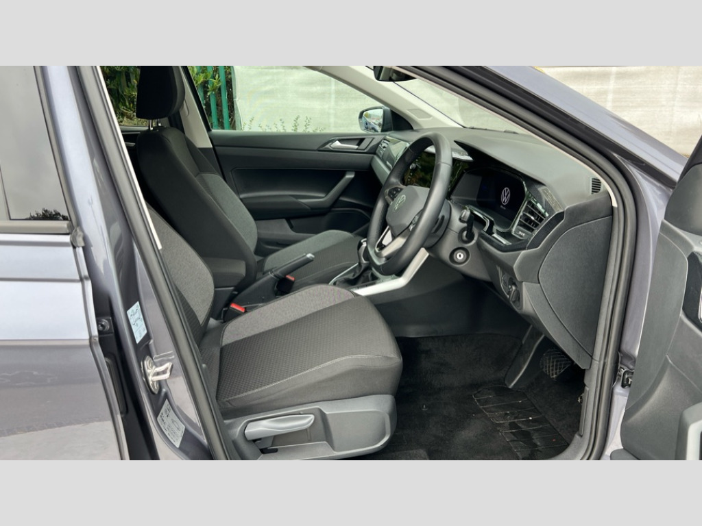 Volkswagen Polo 1.0 TSI Match 5dr DSG Advanced driver attention and drowsiness monitor, Bluetooth mobile phone interface, Dynamic road sign display, Emergency call service, Multifunction front facing camera for distance control, Park distance control, Power assisted speed sensitive steering, Predictive adaptive cruise control without follow-to-stop and speed limiter, Preparation for navigation system with media and internet package, Preparation for We connect and We connect plus, Rear view camera, Speedo and rev counter, electronic odometer, trip, service interval display and exterior temperature gauge, Standard rear axle, Travel Assist - Lane keeping system and traffic jam assist, Travel assist including emergency assist, Trip computer, Warning signal and warning light for front and rear seatbelts not fastened, Washer fluid level indicator, Wireless app connect, Front wheel drive, Rear shock absorpion, Start-stop system with battery regeneration (recuperation - energy recovery during braking), DAB Digital radio, Diversity antenna for FM reception, Front and rear 6 speakers, Automatic dimming interior rear view mirror, Automatic headlight control with LED separate daytime running lights with coming/leaving home function, Body colour bumpers with chrome inserts, Body colour door handles, Body colour door mirrors, Electric front windows, Engine badge deletion, Headlight range adjustment, Heat insulating and laminated safety glass windshield, LED Headlights, LED rear combination lamps, Power folding adjustable/heated exterior mirrors and front passenger exterior mirror lowering function, Rain sensor, Rear electric windows, Rear fog light, Rear side wing doors, Rear tinted glass from B-pillar backwards approx 65% tinted, Rear windscreen washer and wiper with interval delay, Third brake light, 12V power socket in centre console, 2 front and 2 rear reading lights with switch off delay and dimmer, 2 USB-C ports in the front, 2 USB-C charging sockets on the center console in the rear, 3 rear head restraints, 60/40 split folding rear seat and rear seat bench not split, Ceramique roof lining, Chrome plated radiator grille inserts, air vent surrounds and light switch surrounds, Door and side trim panel, Driver and front passenger seat height adjustment, Driver/passenger sunvisors with illuminated vanity mirrors, Front centre armrest, Front seat backrest storage pockets, Front standard seats, Handbrake lever handle in leather, Hartley/Thomas cloth upholstery, Headliner in recycled material, Isofix child seat preparation easy-fit (for two outer rear seats, and front passenger seat) compatible with I-size, Leather trimmed gear knob, Luggage compartment cover, Luggage compartment lighting, Removable luggage compartment floor, Single front passenger seat, Standard climatic zones, Standard pedal cluster, Three spoke leather wrapped multifunction steering wheel with shifting paddles, Light and vision pack - Polo, 3 point height adj front seatbelts + pretensioners, 3 point seat belt for centre rear seat, 3 point seatbelts, outer rear with ECE lable, ABS, Driver and front passenger airbag with front passenger airbag deactivation, Drivers and front passengers safety optimised head restraints, ESC (Electronic stability control) + EDL (Electronic Differntial lock) and ASR (Traction control), Extended and predictive pedestrian/ cyclist protection, Front assist with autonomous emergency braking (for Adaptive Cruise Control ACC up to 130 mph), Front curtain and side airbags with center airbag, Front disc brakes, Hill hold control, Manual child lock in rear doors, Rear drum brakes, Single tone horn, Tyre pressure loss indicator, Alarm with interior protection, Anti-theft alarm system with interior monitoring, backup horn, and towing protection, Anti-theft wheel bolts, Electronic engine immobiliser, Lava stone black gloss/matt decorative inserts in dash and front door panels, 16" Torsby alloy wheels, Low rolling resistance tyres