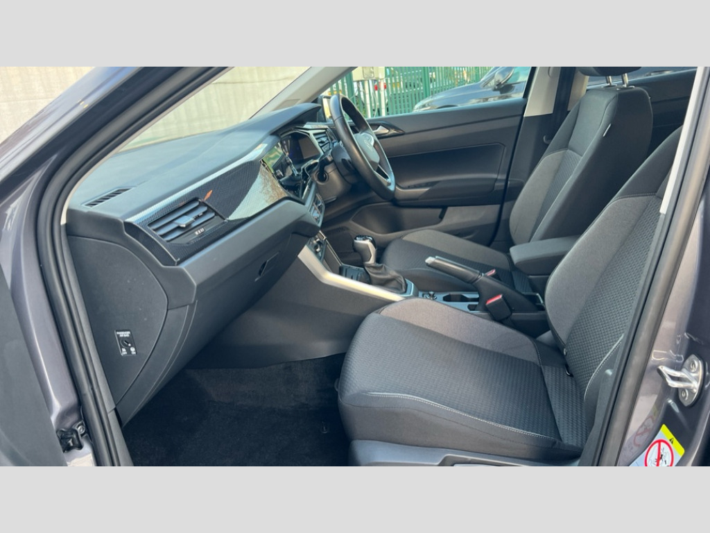 Volkswagen Polo 1.0 TSI Match 5dr DSG Advanced driver attention and drowsiness monitor, Bluetooth mobile phone interface, Dynamic road sign display, Emergency call service, Multifunction front facing camera for distance control, Park distance control, Power assisted speed sensitive steering, Predictive adaptive cruise control without follow-to-stop and speed limiter, Preparation for navigation system with media and internet package, Preparation for We connect and We connect plus, Rear view camera, Speedo and rev counter, electronic odometer, trip, service interval display and exterior temperature gauge, Standard rear axle, Travel Assist - Lane keeping system and traffic jam assist, Travel assist including emergency assist, Trip computer, Warning signal and warning light for front and rear seatbelts not fastened, Washer fluid level indicator, Wireless app connect, Front wheel drive, Rear shock absorpion, Start-stop system with battery regeneration (recuperation - energy recovery during braking), DAB Digital radio, Diversity antenna for FM reception, Front and rear 6 speakers, Automatic dimming interior rear view mirror, Automatic headlight control with LED separate daytime running lights with coming/leaving home function, Body colour bumpers with chrome inserts, Body colour door handles, Body colour door mirrors, Electric front windows, Engine badge deletion, Headlight range adjustment, Heat insulating and laminated safety glass windshield, LED Headlights, LED rear combination lamps, Power folding adjustable/heated exterior mirrors and front passenger exterior mirror lowering function, Rain sensor, Rear electric windows, Rear fog light, Rear side wing doors, Rear tinted glass from B-pillar backwards approx 65% tinted, Rear windscreen washer and wiper with interval delay, Third brake light, 12V power socket in centre console, 2 front and 2 rear reading lights with switch off delay and dimmer, 2 USB-C ports in the front, 2 USB-C charging sockets on the center console in the rear, 3 rear head restraints, 60/40 split folding rear seat and rear seat bench not split, Ceramique roof lining, Chrome plated radiator grille inserts, air vent surrounds and light switch surrounds, Door and side trim panel, Driver and front passenger seat height adjustment, Driver/passenger sunvisors with illuminated vanity mirrors, Front centre armrest, Front seat backrest storage pockets, Front standard seats, Handbrake lever handle in leather, Hartley/Thomas cloth upholstery, Headliner in recycled material, Isofix child seat preparation easy-fit (for two outer rear seats, and front passenger seat) compatible with I-size, Leather trimmed gear knob, Luggage compartment cover, Luggage compartment lighting, Removable luggage compartment floor, Single front passenger seat, Standard climatic zones, Standard pedal cluster, Three spoke leather wrapped multifunction steering wheel with shifting paddles, Light and vision pack - Polo, 3 point height adj front seatbelts + pretensioners, 3 point seat belt for centre rear seat, 3 point seatbelts, outer rear with ECE lable, ABS, Driver and front passenger airbag with front passenger airbag deactivation, Drivers and front passengers safety optimised head restraints, ESC (Electronic stability control) + EDL (Electronic Differntial lock) and ASR (Traction control), Extended and predictive pedestrian/ cyclist protection, Front assist with autonomous emergency braking (for Adaptive Cruise Control ACC up to 130 mph), Front curtain and side airbags with center airbag, Front disc brakes, Hill hold control, Manual child lock in rear doors, Rear drum brakes, Single tone horn, Tyre pressure loss indicator, Alarm with interior protection, Anti-theft alarm system with interior monitoring, backup horn, and towing protection, Anti-theft wheel bolts, Electronic engine immobiliser, Lava stone black gloss/matt decorative inserts in dash and front door panels, 16" Torsby alloy wheels, Low rolling resistance tyres