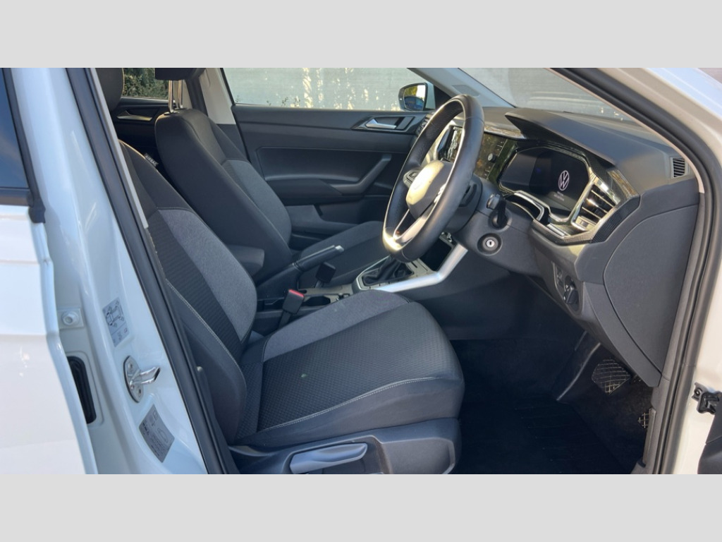 Volkswagen Polo 1.0 TSI Match 5dr DSG Advanced driver attention and drowsiness monitor, Bluetooth mobile phone interface, Dynamic road sign display, Emergency call service, Multifunction front facing camera for distance control, Park distance control, Power assisted speed sensitive steering, Predictive adaptive cruise control without follow-to-stop and speed limiter, Preparation for navigation system with media and internet package, Preparation for We connect and We connect plus, Rear view camera, Speedo and rev counter, electronic odometer, trip, service interval display and exterior temperature gauge, Standard rear axle, Travel Assist - Lane keeping system and traffic jam assist, Travel assist including emergency assist, Trip computer, Warning signal and warning light for front and rear seatbelts not fastened, Washer fluid level indicator, Wireless app connect, Front wheel drive, Rear shock absorpion, Start-stop system with battery regeneration (recuperation - energy recovery during braking), DAB Digital radio, Diversity antenna for FM reception, Front and rear 6 speakers, Automatic dimming interior rear view mirror, Automatic headlight control with LED separate daytime running lights with coming/leaving home function, Body colour bumpers with chrome inserts, Body colour door handles, Body colour door mirrors, Electric front windows, Engine badge deletion, Headlight range adjustment, Heat insulating and laminated safety glass windshield, LED Headlights, LED rear combination lamps, Power folding adjustable/heated exterior mirrors and front passenger exterior mirror lowering function, Rain sensor, Rear electric windows, Rear fog light, Rear side wing doors, Rear tinted glass from B-pillar backwards approx 65% tinted, Rear windscreen washer and wiper with interval delay, Third brake light, 12V power socket in centre console, 2 front and 2 rear reading lights with switch off delay and dimmer, 2 USB-C ports in the front, 2 USB-C charging sockets on the center console in the rear, 3 rear head restraints, 60/40 split folding rear seat and rear seat bench not split, Ceramique roof lining, Chrome plated radiator grille inserts, air vent surrounds and light switch surrounds, Door and side trim panel, Driver and front passenger seat height adjustment, Driver/passenger sunvisors with illuminated vanity mirrors, Front centre armrest, Front seat backrest storage pockets, Front standard seats, Handbrake lever handle in leather, Hartley/Thomas cloth upholstery, Headliner in recycled material, Isofix child seat preparation easy-fit (for two outer rear seats, and front passenger seat) compatible with I-size, Leather trimmed gear knob, Luggage compartment cover, Luggage compartment lighting, Removable luggage compartment floor, Single front passenger seat, Standard climatic zones, Standard pedal cluster, Three spoke leather wrapped multifunction steering wheel with shifting paddles, Light and vision pack - Polo, 3 point height adj front seatbelts + pretensioners, 3 point seat belt for centre rear seat, 3 point seatbelts, outer rear with ECE lable, ABS, Driver and front passenger airbag with front passenger airbag deactivation, Drivers and front passengers safety optimised head restraints, ESC (Electronic stability control) + EDL (Electronic Differntial lock) and ASR (Traction control), Extended and predictive pedestrian/ cyclist protection, Front assist with autonomous emergency braking (for Adaptive Cruise Control ACC up to 130 mph), Front curtain and side airbags with center airbag, Front disc brakes, Hill hold control, Manual child lock in rear doors, Rear drum brakes, Single tone horn, Tyre pressure loss indicator, Alarm with interior protection, Anti-theft alarm system with interior monitoring, backup horn, and towing protection, Anti-theft wheel bolts, Electronic engine immobiliser, Lava stone black gloss/matt decorative inserts in dash and front door panels, 16" Torsby alloy wheels, Low rolling resistance tyres