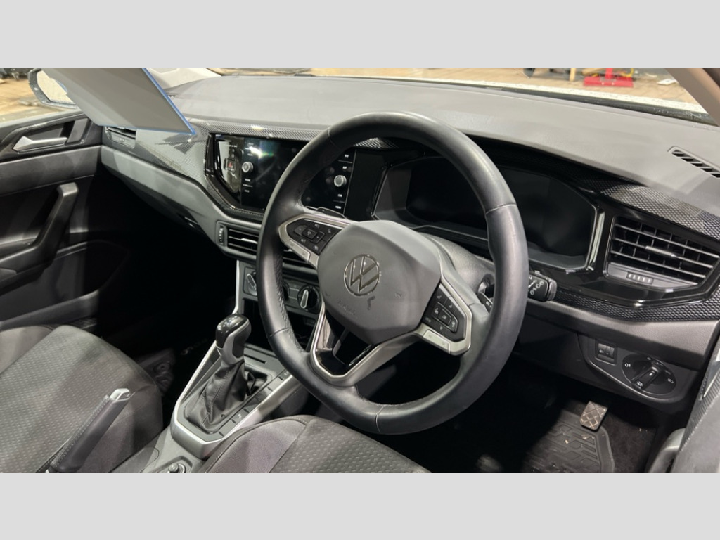 Volkswagen Polo 1.0 TSI Match 5dr DSG Advanced driver attention and drowsiness monitor, Bluetooth mobile phone interface, Dynamic road sign display, Emergency call service, Multifunction front facing camera for distance control, Park distance control, Power assisted speed sensitive steering, Predictive adaptive cruise control without follow-to-stop and speed limiter, Preparation for navigation system with media and internet package, Preparation for We connect and We connect plus, Rear view camera, Speedo and rev counter, electronic odometer, trip, service interval display and exterior temperature gauge, Standard rear axle, Travel Assist - Lane keeping system and traffic jam assist, Travel assist including emergency assist, Trip computer, Warning signal and warning light for front and rear seatbelts not fastened, Washer fluid level indicator, Wireless app connect, Front wheel drive, Rear shock absorpion, Start-stop system with battery regeneration (recuperation - energy recovery during braking), DAB Digital radio, Diversity antenna for FM reception, Front and rear 6 speakers, Automatic dimming interior rear view mirror, Automatic headlight control with LED separate daytime running lights with coming/leaving home function, Body colour bumpers with chrome inserts, Body colour door handles, Body colour door mirrors, Electric front windows, Engine badge deletion, Headlight range adjustment, Heat insulating and laminated safety glass windshield, LED Headlights, LED rear combination lamps, Power folding adjustable/heated exterior mirrors and front passenger exterior mirror lowering function, Rain sensor, Rear electric windows, Rear fog light, Rear side wing doors, Rear tinted glass from B-pillar backwards approx 65% tinted, Rear windscreen washer and wiper with interval delay, Third brake light, 12V power socket in centre console, 2 front and 2 rear reading lights with switch off delay and dimmer, 2 USB-C ports in the front, 2 USB-C charging sockets on the center console in the rear, 3 rear head restraints, 60/40 split folding rear seat and rear seat bench not split, Ceramique roof lining, Chrome plated radiator grille inserts, air vent surrounds and light switch surrounds, Door and side trim panel, Driver and front passenger seat height adjustment, Driver/passenger sunvisors with illuminated vanity mirrors, Front centre armrest, Front seat backrest storage pockets, Front standard seats, Handbrake lever handle in leather, Hartley/Thomas cloth upholstery, Headliner in recycled material, Isofix child seat preparation easy-fit (for two outer rear seats, and front passenger seat) compatible with I-size, Leather trimmed gear knob, Luggage compartment cover, Luggage compartment lighting, Removable luggage compartment floor, Single front passenger seat, Standard climatic zones, Standard pedal cluster, Three spoke leather wrapped multifunction steering wheel with shifting paddles, Light and vision pack - Polo, 3 point height adj front seatbelts + pretensioners, 3 point seat belt for centre rear seat, 3 point seatbelts, outer rear with ECE lable, ABS, Driver and front passenger airbag with front passenger airbag deactivation, Drivers and front passengers safety optimised head restraints, ESC (Electronic stability control) + EDL (Electronic Differntial lock) and ASR (Traction control), Extended and predictive pedestrian/ cyclist protection, Front assist with autonomous emergency braking (for Adaptive Cruise Control ACC up to 130 mph), Front curtain and side airbags with center airbag, Front disc brakes, Hill hold control, Manual child lock in rear doors, Rear drum brakes, Single tone horn, Tyre pressure loss indicator, Alarm with interior protection, Anti-theft alarm system with interior monitoring, backup horn, and towing protection, Anti-theft wheel bolts, Electronic engine immobiliser, Lava stone black gloss/matt decorative inserts in dash and front door panels, 16" Torsby alloy wheels, Low rolling resistance tyres