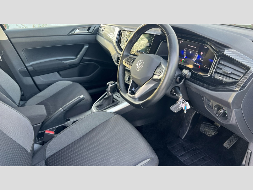 Volkswagen Polo 1.0 TSI Match 5dr DSG Advanced driver attention and drowsiness monitor, Bluetooth mobile phone interface, Dynamic road sign display, Emergency call service, Multifunction front facing camera for distance control, Park distance control, Power assisted speed sensitive steering, Predictive adaptive cruise control without follow-to-stop and speed limiter, Preparation for navigation system with media and internet package, Preparation for We connect and We connect plus, Rear view camera, Speedo and rev counter, electronic odometer, trip, service interval display and exterior temperature gauge, Standard rear axle, Travel Assist - Lane keeping system and traffic jam assist, Travel assist including emergency assist, Trip computer, Warning signal and warning light for front and rear seatbelts not fastened, Washer fluid level indicator, Wireless app connect, Front wheel drive, Rear shock absorpion, Start-stop system with battery regeneration (recuperation - energy recovery during braking), DAB Digital radio, Diversity antenna for FM reception, Front and rear 6 speakers, Automatic dimming interior rear view mirror, Automatic headlight control with LED separate daytime running lights with coming/leaving home function, Body colour bumpers with chrome inserts, Body colour door handles, Body colour door mirrors, Electric front windows, Engine badge deletion, Headlight range adjustment, Heat insulating and laminated safety glass windshield, LED Headlights, LED rear combination lamps, Power folding adjustable/heated exterior mirrors and front passenger exterior mirror lowering function, Rain sensor, Rear electric windows, Rear fog light, Rear side wing doors, Rear tinted glass from B-pillar backwards approx 65% tinted, Rear windscreen washer and wiper with interval delay, Third brake light, 12V power socket in centre console, 2 front and 2 rear reading lights with switch off delay and dimmer, 2 USB-C ports in the front, 2 USB-C charging sockets on the center console in the rear, 3 rear head restraints, 60/40 split folding rear seat and rear seat bench not split, Ceramique roof lining, Chrome plated radiator grille inserts, air vent surrounds and light switch surrounds, Door and side trim panel, Driver and front passenger seat height adjustment, Driver/passenger sunvisors with illuminated vanity mirrors, Front centre armrest, Front seat backrest storage pockets, Front standard seats, Handbrake lever handle in leather, Hartley/Thomas cloth upholstery, Headliner in recycled material, Isofix child seat preparation easy-fit (for two outer rear seats, and front passenger seat) compatible with I-size, Leather trimmed gear knob, Luggage compartment cover, Luggage compartment lighting, Removable luggage compartment floor, Single front passenger seat, Standard climatic zones, Standard pedal cluster, Three spoke leather wrapped multifunction steering wheel with shifting paddles, Light and vision pack - Polo, 3 point height adj front seatbelts + pretensioners, 3 point seat belt for centre rear seat, 3 point seatbelts, outer rear with ECE lable, ABS, Driver and front passenger airbag with front passenger airbag deactivation, Drivers and front passengers safety optimised head restraints, ESC (Electronic stability control) + EDL (Electronic Differntial lock) and ASR (Traction control), Extended and predictive pedestrian/ cyclist protection, Front assist with autonomous emergency braking (for Adaptive Cruise Control ACC up to 130 mph), Front curtain and side airbags with center airbag, Front disc brakes, Hill hold control, Manual child lock in rear doors, Rear drum brakes, Single tone horn, Tyre pressure loss indicator, Alarm with interior protection, Anti-theft alarm system with interior monitoring, backup horn, and towing protection, Anti-theft wheel bolts, Electronic engine immobiliser, Lava stone black gloss/matt decorative inserts in dash and front door panels, 16" Torsby alloy wheels, Low rolling resistance tyres