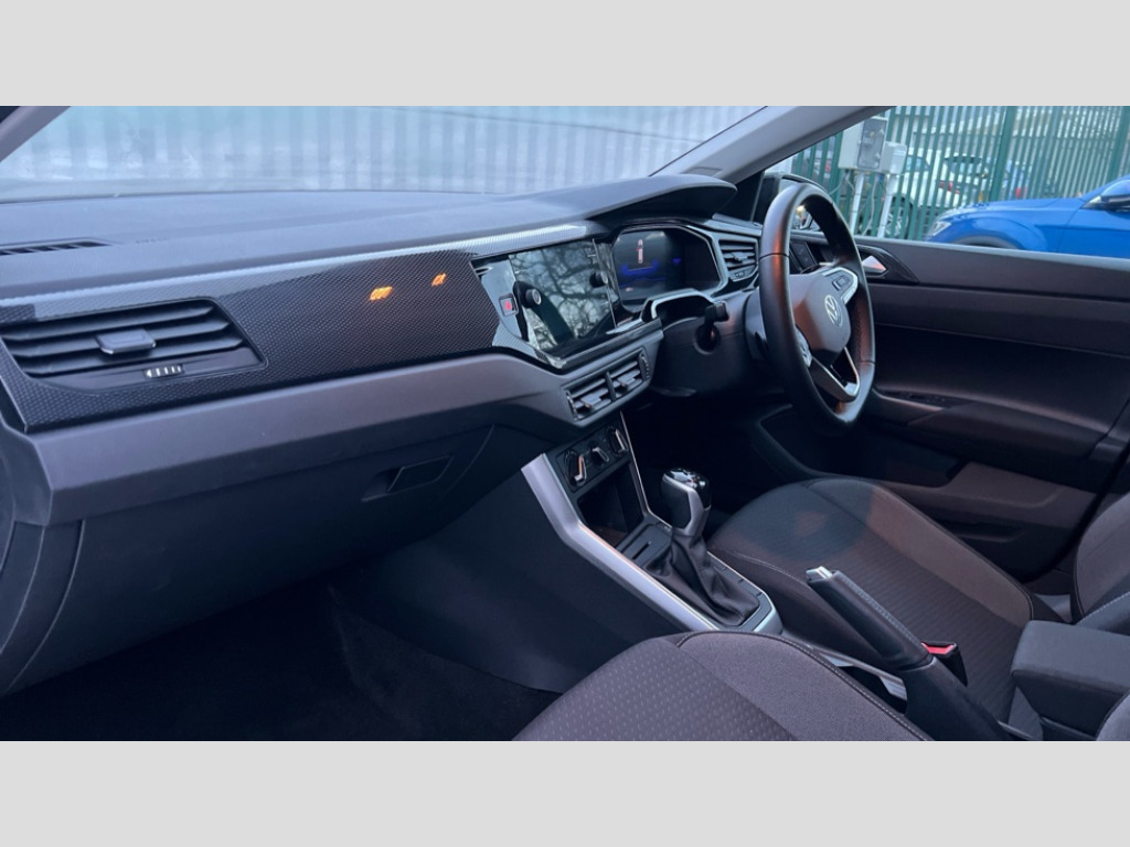 Volkswagen Polo 1.0 TSI Match 5dr DSG Advanced driver attention and drowsiness monitor, Bluetooth mobile phone interface, Dynamic road sign display, Emergency call service, Multifunction front facing camera for distance control, Park distance control, Power assisted speed sensitive steering, Predictive adaptive cruise control without follow-to-stop and speed limiter, Preparation for navigation system with media and internet package, Preparation for We connect and We connect plus, Rear view camera, Speedo and rev counter, electronic odometer, trip, service interval display and exterior temperature gauge, Standard rear axle, Travel Assist - Lane keeping system and traffic jam assist, Travel assist including emergency assist, Trip computer, Warning signal and warning light for front and rear seatbelts not fastened, Washer fluid level indicator, Wireless app connect, Front wheel drive, Rear shock absorpion, Start-stop system with battery regeneration (recuperation - energy recovery during braking), DAB Digital radio, Diversity antenna for FM reception, Front and rear 6 speakers, Automatic dimming interior rear view mirror, Automatic headlight control with LED separate daytime running lights with coming/leaving home function, Body colour bumpers with chrome inserts, Body colour door handles, Body colour door mirrors, Electric front windows, Engine badge deletion, Headlight range adjustment, Heat insulating and laminated safety glass windshield, LED Headlights, LED rear combination lamps, Power folding adjustable/heated exterior mirrors and front passenger exterior mirror lowering function, Rain sensor, Rear electric windows, Rear fog light, Rear side wing doors, Rear tinted glass from B-pillar backwards approx 65% tinted, Rear windscreen washer and wiper with interval delay, Third brake light, 12V power socket in centre console, 2 front and 2 rear reading lights with switch off delay and dimmer, 2 USB-C ports in the front, 2 USB-C charging sockets on the center console in the rear, 3 rear head restraints, 60/40 split folding rear seat and rear seat bench not split, Ceramique roof lining, Chrome plated radiator grille inserts, air vent surrounds and light switch surrounds, Door and side trim panel, Driver and front passenger seat height adjustment, Driver/passenger sunvisors with illuminated vanity mirrors, Front centre armrest, Front seat backrest storage pockets, Front standard seats, Handbrake lever handle in leather, Hartley/Thomas cloth upholstery, Headliner in recycled material, Isofix child seat preparation easy-fit (for two outer rear seats, and front passenger seat) compatible with I-size, Leather trimmed gear knob, Luggage compartment cover, Luggage compartment lighting, Removable luggage compartment floor, Single front passenger seat, Standard climatic zones, Standard pedal cluster, Three spoke leather wrapped multifunction steering wheel with shifting paddles, Light and vision pack - Polo, 3 point height adj front seatbelts + pretensioners, 3 point seat belt for centre rear seat, 3 point seatbelts, outer rear with ECE lable, ABS, Driver and front passenger airbag with front passenger airbag deactivation, Drivers and front passengers safety optimised head restraints, ESC (Electronic stability control) + EDL (Electronic Differntial lock) and ASR (Traction control), Extended and predictive pedestrian/ cyclist protection, Front assist with autonomous emergency braking (for Adaptive Cruise Control ACC up to 130 mph), Front curtain and side airbags with center airbag, Front disc brakes, Hill hold control, Manual child lock in rear doors, Rear drum brakes, Single tone horn, Tyre pressure loss indicator, Alarm with interior protection, Anti-theft alarm system with interior monitoring, backup horn, and towing protection, Anti-theft wheel bolts, Electronic engine immobiliser, Lava stone black gloss/matt decorative inserts in dash and front door panels, 16" Torsby alloy wheels, Low rolling resistance tyres