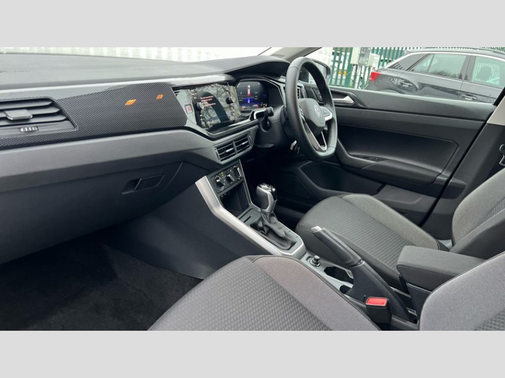 Volkswagen Polo 1.0 TSI Match 5dr DSG Advanced driver attention and drowsiness monitor, Bluetooth mobile phone interface, Dynamic road sign display, Emergency call service, Multifunction front facing camera for distance control, Park distance control, Power assisted speed sensitive steering, Predictive adaptive cruise control without follow-to-stop and speed limiter, Preparation for navigation system with media and internet package, Preparation for We connect and We connect plus, Rear view camera, Speedo and rev counter, electronic odometer, trip, service interval display and exterior temperature gauge, Standard rear axle, Travel Assist - Lane keeping system and traffic jam assist, Travel assist including emergency assist, Trip computer, Warning signal and warning light for front and rear seatbelts not fastened, Washer fluid level indicator, Wireless app connect, Front wheel drive, Rear shock absorpion, Start-stop system with battery regeneration (recuperation - energy recovery during braking), DAB Digital radio, Diversity antenna for FM reception, Front and rear 6 speakers, Automatic dimming interior rear view mirror, Automatic headlight control with LED separate daytime running lights with coming/leaving home function, Body colour bumpers with chrome inserts, Body colour door handles, Body colour door mirrors, Electric front windows, Engine badge deletion, Headlight range adjustment, Heat insulating and laminated safety glass windshield, LED Headlights, LED rear combination lamps, Power folding adjustable/heated exterior mirrors and front passenger exterior mirror lowering function, Rain sensor, Rear electric windows, Rear fog light, Rear side wing doors, Rear tinted glass from B-pillar backwards approx 65% tinted, Rear windscreen washer and wiper with interval delay, Third brake light, 12V power socket in centre console, 2 front and 2 rear reading lights with switch off delay and dimmer, 2 USB-C ports in the front, 2 USB-C charging sockets on the center console in the rear, 3 rear head restraints, 60/40 split folding rear seat and rear seat bench not split, Ceramique roof lining, Chrome plated radiator grille inserts, air vent surrounds and light switch surrounds, Door and side trim panel, Driver and front passenger seat height adjustment, Driver/passenger sunvisors with illuminated vanity mirrors, Front centre armrest, Front seat backrest storage pockets, Front standard seats, Handbrake lever handle in leather, Hartley/Thomas cloth upholstery, Headliner in recycled material, Isofix child seat preparation easy-fit (for two outer rear seats, and front passenger seat) compatible with I-size, Leather trimmed gear knob, Luggage compartment cover, Luggage compartment lighting, Removable luggage compartment floor, Single front passenger seat, Standard climatic zones, Standard pedal cluster, Three spoke leather wrapped multifunction steering wheel with shifting paddles, Light and vision pack - Polo, 3 point height adj front seatbelts + pretensioners, 3 point seat belt for centre rear seat, 3 point seatbelts, outer rear with ECE lable, ABS, Driver and front passenger airbag with front passenger airbag deactivation, Drivers and front passengers safety optimised head restraints, ESC (Electronic stability control) + EDL (Electronic Differntial lock) and ASR (Traction control), Extended and predictive pedestrian/ cyclist protection, Front assist with autonomous emergency braking (for Adaptive Cruise Control ACC up to 130 mph), Front curtain and side airbags with center airbag, Front disc brakes, Hill hold control, Manual child lock in rear doors, Rear drum brakes, Single tone horn, Tyre pressure loss indicator, Alarm with interior protection, Anti-theft alarm system with interior monitoring, backup horn, and towing protection, Anti-theft wheel bolts, Electronic engine immobiliser, Lava stone black gloss/matt decorative inserts in dash and front door panels, 16" Torsby alloy wheels, Low rolling resistance tyres