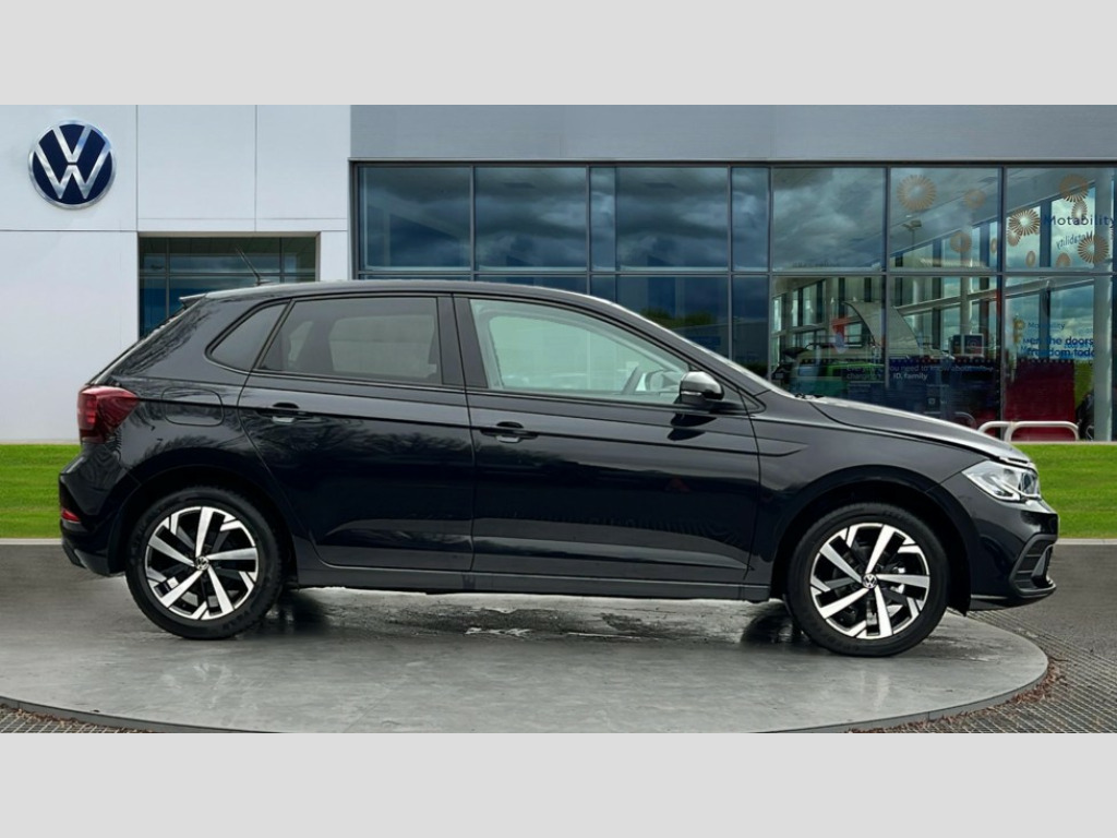 Volkswagen Polo 1.0 TSI Match 5dr DSG Advanced driver attention and drowsiness monitor, Bluetooth mobile phone interface, Dynamic road sign display, Emergency call service, Mobile phone preparation with inductive charging function, Multifunction front facing camera for distance control, Power assisted speed sensitive steering, Predictive adaptive cruise control without follow-to-stop and speed limiter, Preparation for navigation system with media and internet package, Preparation for We connect and We connect plus, Rear view camera, Speedo and rev counter, electronic odometer, trip, service interval display and exterior temperature gauge, Standard rear axle, Travel Assist - Lane keeping system and traffic jam assist, Travel assist including emergency assist, Trip computer, Warning signal and warning light for front and rear seatbelts not fastened, Washer fluid level indicator, Wireless app connect, Front wheel drive, Rear shock absorpion, Start-stop system with battery regeneration (recuperation - energy recovery during braking), DAB Digital radio, Diversity antenna for FM reception, Automatic dimming interior rear view mirror, Automatic headlight control with LED separate daytime running lights with coming/leaving home function, Body colour bumpers with chrome inserts, Body colour door handles, Body colour door mirrors, Electric front windows, Engine badge deletion, Headlight range adjustment, Heat insulating and laminated safety glass windshield, LED Headlights, LED rear combination lamps, Power folding adjustable/heated exterior mirrors and front passenger exterior mirror lowering function, Rain sensor, Rear electric windows, Rear fog light, Rear side wing doors, Rear tinted glass from B-pillar backwards approx 65% tinted, Rear windscreen washer and wiper with interval delay, Third brake light, 12V power socket in centre console, 2 front and 2 rear reading lights with switch off delay and dimmer, 2 USB-C ports in the front, 2 USB-C charging sockets on the center console in the rear, 3 rear head restraints, 60/40 split folding rear seat and rear seat bench not split, Ceramique roof lining, Chrome plated radiator grille inserts, air vent surrounds and light switch surrounds, Door and side trim panel, Driver and front passenger seat height adjustment, Driver/passenger sunvisors with illuminated vanity mirrors, Front centre armrest, Front seat backrest storage pockets, Front standard seats, Handbrake lever handle in leather, Hartley/Thomas cloth upholstery, Headliner in recycled material, Isofix child seat preparation easy-fit (for two outer rear seats, and front passenger seat) compatible with I-size, Leather trimmed gear knob, Luggage compartment cover, Luggage compartment lighting, Removable luggage compartment floor, Single front passenger seat, Standard climatic zones, Standard pedal cluster, Three spoke leather wrapped multifunction steering wheel with shifting paddles, Light and vision pack - Polo, 3 point height adj front seatbelts + pretensioners, 3 point seat belt for centre rear seat, 3 point seatbelts, outer rear with ECE lable, ABS, Driver and front passenger airbag with front passenger airbag deactivation, Drivers and front passengers safety optimised head restraints, ESC (Electronic stability control) + EDL (Electronic Differntial lock) and ASR (Traction control), Extended and predictive pedestrian/ cyclist protection, Front assist with autonomous emergency braking (for Adaptive Cruise Control ACC up to 130 mph), Front curtain and side airbags with center airbag, Front disc brakes, Hill hold control, Manual child lock in rear doors, Rear drum brakes, Single tone horn, Tyre pressure loss indicator, Alarm with interior protection, Anti-theft alarm system with interior monitoring, backup horn, and towing protection, Anti-theft wheel bolts, Electronic engine immobiliser, Lava stone black gloss/matt decorative inserts in dash and front door panels, 16" Torsby alloy wheels, Low rolling resistance tyres