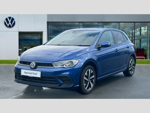Volkswagen Polo 1.0 TSI Match 5dr DSG Advanced driver attention and drowsiness monitor, Bluetooth mobile phone interface, Dynamic road sign display, Emergency call service, Mobile phone preparation with inductive charging function, Multifunction front facing camera for distance control, Park distance control, Power assisted speed sensitive steering, Predictive adaptive cruise control without follow-to-stop and speed limiter, Preparation for navigation system with media and internet package, Preparation for We connect and We connect plus, Rear view camera, Speedo and rev counter, electronic odometer, trip, service interval display and exterior temperature gauge, Standard rear axle, Travel Assist - Lane keeping system and traffic jam assist, Travel assist including emergency assist, Trip computer, Warning signal and warning light for front and rear seatbelts not fastened, Washer fluid level indicator, Wireless app connect, Front wheel drive, Rear shock absorpion, Start-stop system with battery regeneration (recuperation - energy recovery during braking), DAB Digital radio, Diversity antenna for FM reception, Front and rear 6 speakers, Automatic dimming interior rear view mirror, Automatic headlight control with LED separate daytime running lights with coming/leaving home function, Body colour bumpers with chrome inserts, Body colour door handles, Body colour door mirrors, Electric front windows, Engine badge deletion, Headlight range adjustment, Heat insulating and laminated safety glass windshield, Heat insulating darkened glass in side and rear windows, LED Headlights, LED rear combination lamps, Power folding adjustable/heated exterior mirrors and front passenger exterior mirror lowering function, Rain sensor, Rear electric windows, Rear fog light, Rear side wing doors, Rear tinted glass from B-pillar backwards approx 65% tinted, Rear windscreen washer and wiper with interval delay, Third brake light, 12V power socket in centre console, 2 front and 2 rear reading lights with switch off delay and dimmer, 2 USB-C ports in the front, 2 USB-C charging sockets on the center console in the rear, 3 rear head restraints, 60/40 split folding rear seat and rear seat bench not split, Ceramique roof lining, Chrome plated radiator grille inserts, air vent surrounds and light switch surrounds, Door and side trim panel, Driver and front passenger seat height adjustment, Driver/passenger sunvisors with illuminated vanity mirrors, Front centre armrest, Front seat backrest storage pockets, Front standard seats, Handbrake lever handle in leather, Hartley/Thomas cloth upholstery, Headliner in recycled material, Isofix child seat preparation easy-fit (for two outer rear seats, and front passenger seat) compatible with I-size, Leather trimmed gear knob, Luggage compartment cover, Luggage compartment lighting, Removable luggage compartment floor, Single front passenger seat, Standard climatic zones, Standard pedal cluster, Three spoke leather wrapped multifunction steering wheel with shifting paddles, Light and vision pack - Polo, 3 point height adj front seatbelts + pretensioners, 3 point seat belt for centre rear seat, 3 point seatbelts, outer rear with ECE lable, ABS, Driver and front passenger airbag with front passenger airbag deactivation, Drivers and front passengers safety optimised head restraints, ESC (Electronic stability control) + EDL (Electronic Differntial lock) and ASR (Traction control), Extended and predictive pedestrian/ cyclist protection, Front assist with autonomous emergency braking (for Adaptive Cruise Control ACC up to 130 mph), Front curtain and side airbags with center airbag, Front disc brakes, Hill hold control, Manual child lock in rear doors, Rear drum brakes, Single tone horn, Tyre pressure loss indicator, Alarm with interior protection, Anti-theft alarm system with interior monitoring, backup horn, and towing protection, Anti-theft wheel bolts, Electronic engine immobiliser, Lava stone black gloss/matt decorative inserts in dash and front door panels, 16" Torsby alloy wheels, Low rolling resistance tyres