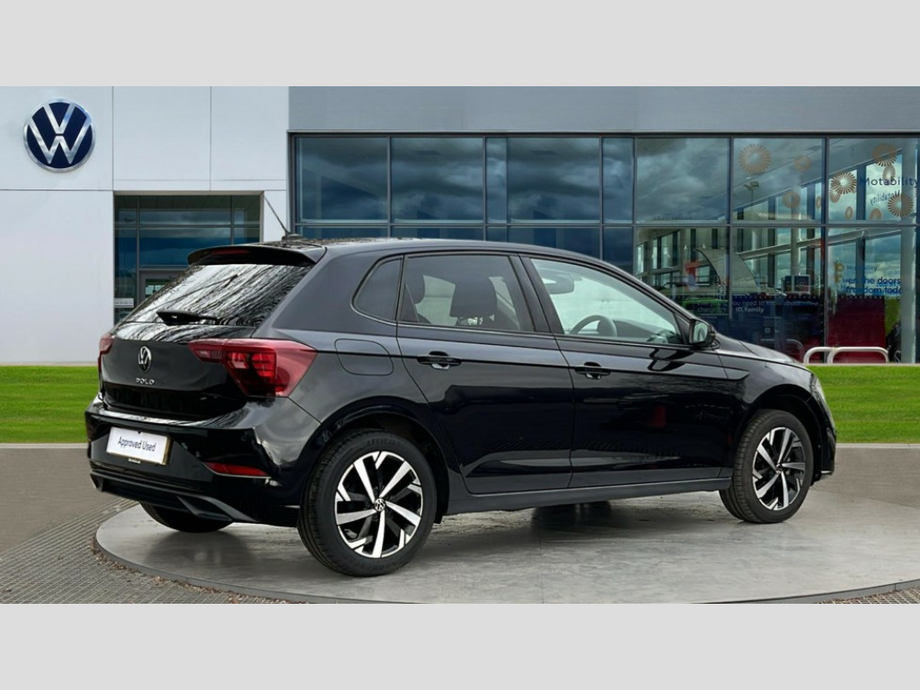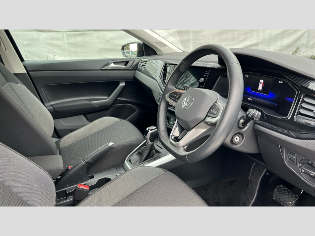 Volkswagen Polo 1.0 TSI Match 5dr DSG Advanced driver attention and drowsiness monitor, Bluetooth mobile phone interface, Dynamic road sign display, Emergency call service, Multifunction front facing camera for distance control, Park distance control, Power assisted speed sensitive steering, Predictive adaptive cruise control without follow-to-stop and speed limiter, Preparation for navigation system with media and internet package, Preparation for We connect and We connect plus, Rear view camera, Speedo and rev counter, electronic odometer, trip, service interval display and exterior temperature gauge, Standard rear axle, Travel Assist - Lane keeping system and traffic jam assist, Travel assist including emergency assist, Trip computer, Warning signal and warning light for front and rear seatbelts not fastened, Washer fluid level indicator, Wireless app connect, Front wheel drive, Rear shock absorpion, Start-stop system with battery regeneration (recuperation - energy recovery during braking), DAB Digital radio, Diversity antenna for FM reception, Front and rear 6 speakers, Automatic dimming interior rear view mirror, Automatic headlight control with LED separate daytime running lights with coming/leaving home function, Body colour bumpers with chrome inserts, Body colour door handles, Body colour door mirrors, Electric front windows, Engine badge deletion, Headlight range adjustment, Heat insulating and laminated safety glass windshield, LED Headlights, LED rear combination lamps, Power folding adjustable/heated exterior mirrors and front passenger exterior mirror lowering function, Rain sensor, Rear electric windows, Rear fog light, Rear side wing doors, Rear tinted glass from B-pillar backwards approx 65% tinted, Rear windscreen washer and wiper with interval delay, Third brake light, 12V power socket in centre console, 2 front and 2 rear reading lights with switch off delay and dimmer, 2 USB-C ports in the front, 2 USB-C charging sockets on the center console in the rear, 3 rear head restraints, 60/40 split folding rear seat and rear seat bench not split, Ceramique roof lining, Chrome plated radiator grille inserts, air vent surrounds and light switch surrounds, Door and side trim panel, Driver and front passenger seat height adjustment, Driver/passenger sunvisors with illuminated vanity mirrors, Front centre armrest, Front seat backrest storage pockets, Front standard seats, Handbrake lever handle in leather, Hartley/Thomas cloth upholstery, Headliner in recycled material, Isofix child seat preparation easy-fit (for two outer rear seats, and front passenger seat) compatible with I-size, Leather trimmed gear knob, Luggage compartment cover, Luggage compartment lighting, Removable luggage compartment floor, Single front passenger seat, Standard climatic zones, Standard pedal cluster, Three spoke leather wrapped multifunction steering wheel with shifting paddles, Light and vision pack - Polo, 3 point height adj front seatbelts + pretensioners, 3 point seat belt for centre rear seat, 3 point seatbelts, outer rear with ECE lable, ABS, Driver and front passenger airbag with front passenger airbag deactivation, Drivers and front passengers safety optimised head restraints, ESC (Electronic stability control) + EDL (Electronic Differntial lock) and ASR (Traction control), Extended and predictive pedestrian/ cyclist protection, Front assist with autonomous emergency braking (for Adaptive Cruise Control ACC up to 130 mph), Front curtain and side airbags with center airbag, Front disc brakes, Hill hold control, Manual child lock in rear doors, Rear drum brakes, Single tone horn, Tyre pressure loss indicator, Alarm with interior protection, Anti-theft alarm system with interior monitoring, backup horn, and towing protection, Anti-theft wheel bolts, Electronic engine immobiliser, Lava stone black gloss/matt decorative inserts in dash and front door panels, 16" Torsby alloy wheels, Low rolling resistance tyres