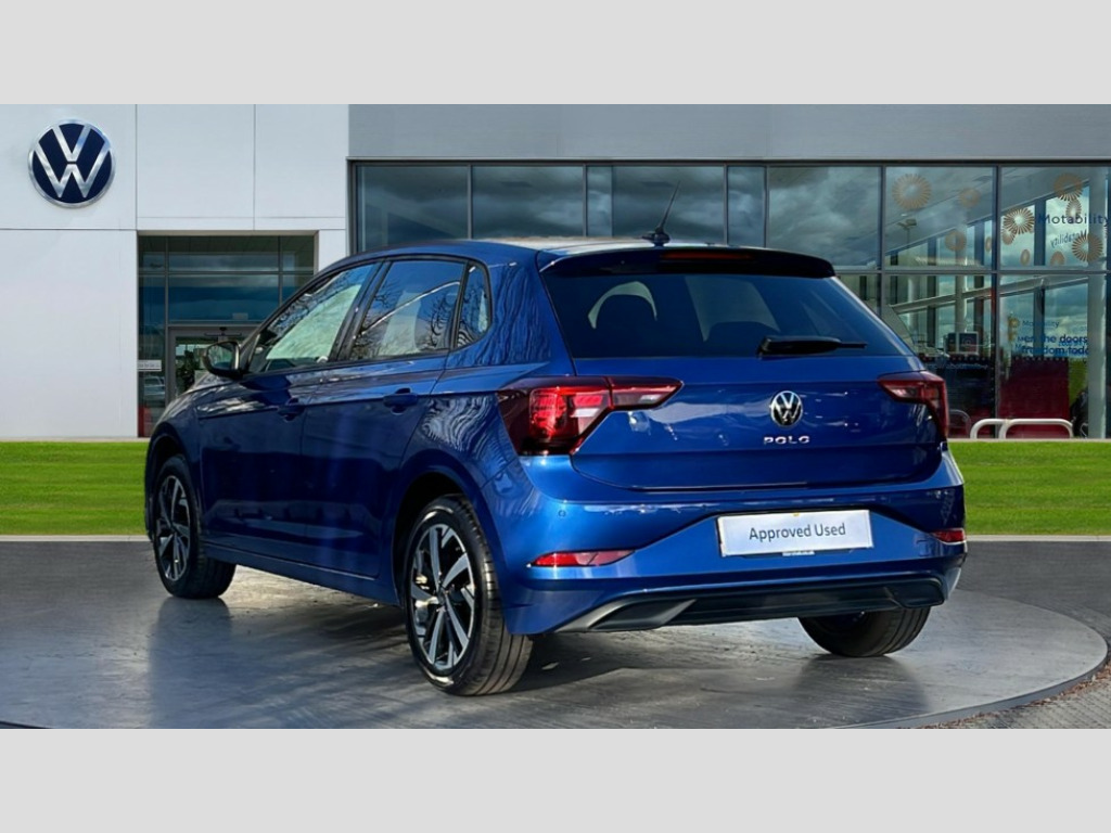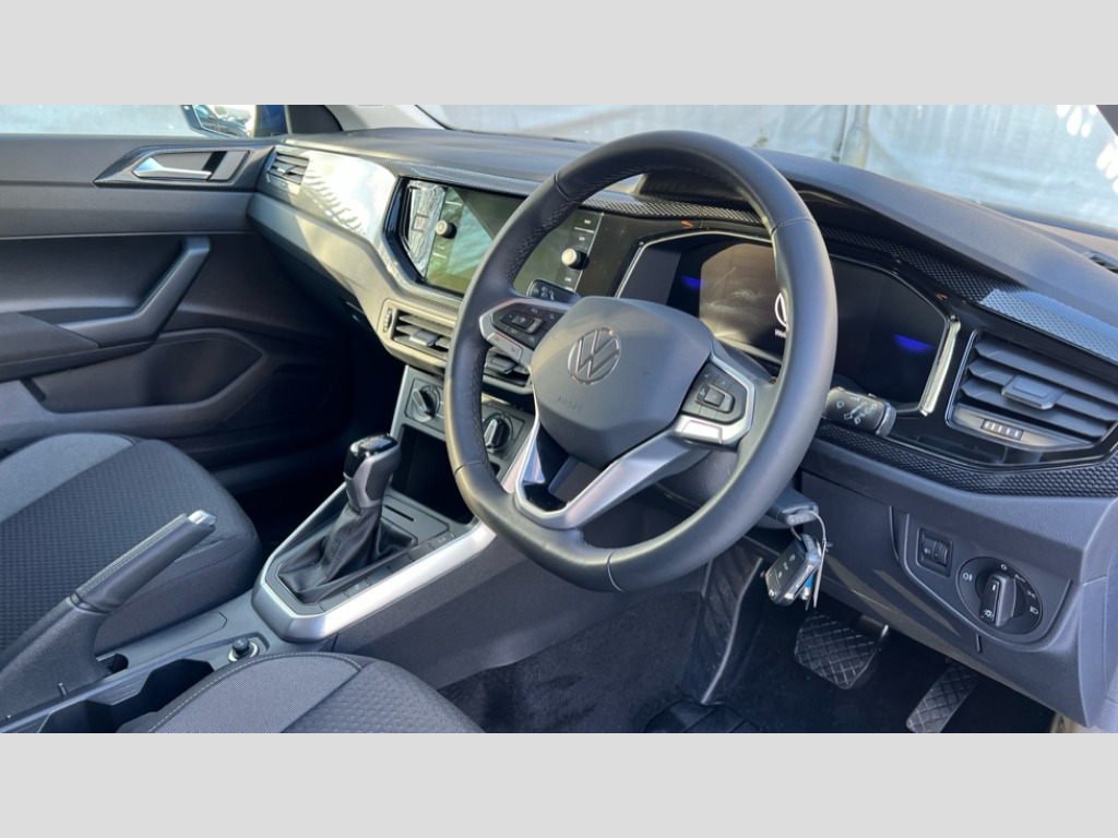 Volkswagen Polo 1.0 TSI Match 5dr DSG Advanced driver attention and drowsiness monitor, Bluetooth mobile phone interface, Dynamic road sign display, Emergency call service, Mobile phone preparation with inductive charging function, Multifunction front facing camera for distance control, Power assisted speed sensitive steering, Predictive adaptive cruise control without follow-to-stop and speed limiter, Preparation for navigation system with media and internet package, Preparation for We connect and We connect plus, Rear view camera, Speedo and rev counter, electronic odometer, trip, service interval display and exterior temperature gauge, Standard rear axle, Travel Assist - Lane keeping system and traffic jam assist, Travel assist including emergency assist, Trip computer, Warning signal and warning light for front and rear seatbelts not fastened, Washer fluid level indicator, Wireless app connect, Front wheel drive, Rear shock absorpion, Start-stop system with battery regeneration (recuperation - energy recovery during braking), DAB Digital radio, Diversity antenna for FM reception, Automatic dimming interior rear view mirror, Automatic headlight control with LED separate daytime running lights with coming/leaving home function, Body colour bumpers with chrome inserts, Body colour door handles, Body colour door mirrors, Electric front windows, Engine badge deletion, Headlight range adjustment, Heat insulating and laminated safety glass windshield, LED Headlights, LED rear combination lamps, Power folding adjustable/heated exterior mirrors and front passenger exterior mirror lowering function, Rain sensor, Rear electric windows, Rear fog light, Rear side wing doors, Rear tinted glass from B-pillar backwards approx 65% tinted, Rear windscreen washer and wiper with interval delay, Third brake light, 12V power socket in centre console, 2 front and 2 rear reading lights with switch off delay and dimmer, 2 USB-C ports in the front, 2 USB-C charging sockets on the center console in the rear, 3 rear head restraints, 60/40 split folding rear seat and rear seat bench not split, Ceramique roof lining, Chrome plated radiator grille inserts, air vent surrounds and light switch surrounds, Door and side trim panel, Driver and front passenger seat height adjustment, Driver/passenger sunvisors with illuminated vanity mirrors, Front centre armrest, Front seat backrest storage pockets, Front standard seats, Handbrake lever handle in leather, Hartley/Thomas cloth upholstery, Headliner in recycled material, Isofix child seat preparation easy-fit (for two outer rear seats, and front passenger seat) compatible with I-size, Leather trimmed gear knob, Luggage compartment cover, Luggage compartment lighting, Removable luggage compartment floor, Single front passenger seat, Standard climatic zones, Standard pedal cluster, Three spoke leather wrapped multifunction steering wheel with shifting paddles, Light and vision pack - Polo, 3 point height adj front seatbelts + pretensioners, 3 point seat belt for centre rear seat, 3 point seatbelts, outer rear with ECE lable, ABS, Driver and front passenger airbag with front passenger airbag deactivation, Drivers and front passengers safety optimised head restraints, ESC (Electronic stability control) + EDL (Electronic Differntial lock) and ASR (Traction control), Extended and predictive pedestrian/ cyclist protection, Front assist with autonomous emergency braking (for Adaptive Cruise Control ACC up to 130 mph), Front curtain and side airbags with center airbag, Front disc brakes, Hill hold control, Manual child lock in rear doors, Rear drum brakes, Single tone horn, Tyre pressure loss indicator, Alarm with interior protection, Anti-theft alarm system with interior monitoring, backup horn, and towing protection, Anti-theft wheel bolts, Electronic engine immobiliser, Lava stone black gloss/matt decorative inserts in dash and front door panels, 16" Torsby alloy wheels, Low rolling resistance tyres