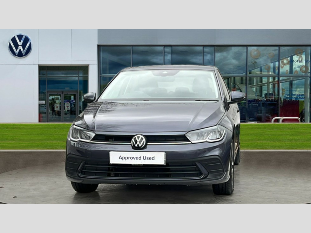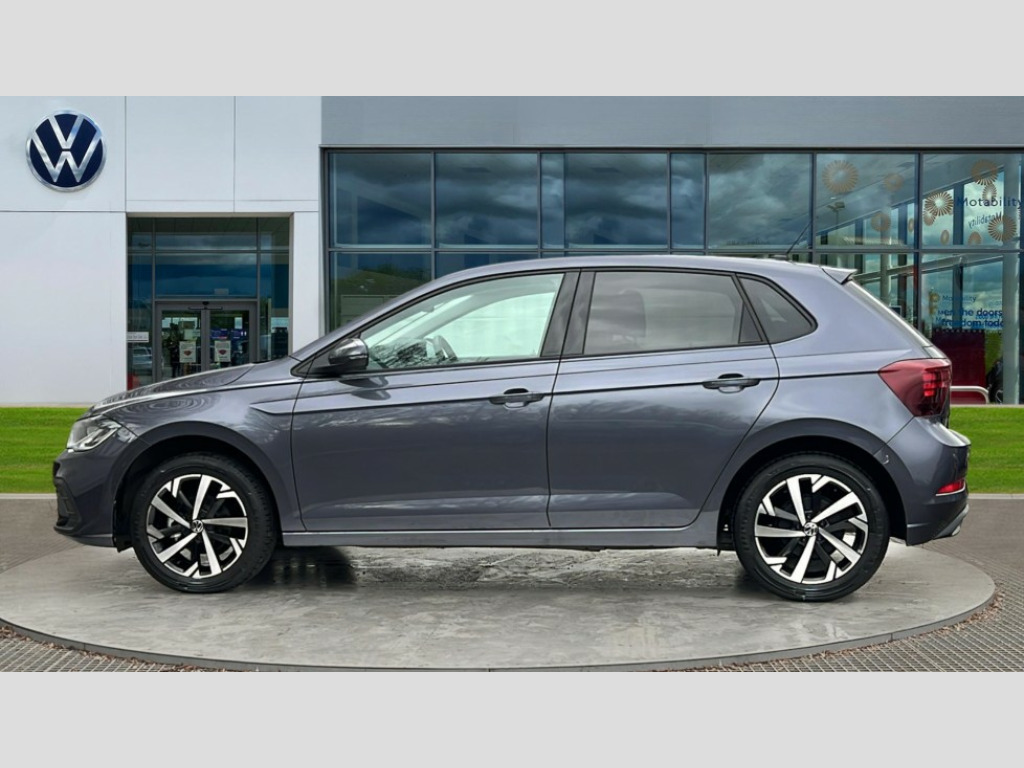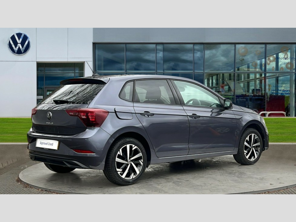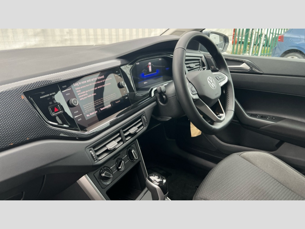 Volkswagen Polo 1.0 TSI Match 5dr DSG Advanced driver attention and drowsiness monitor, Bluetooth mobile phone interface, Dynamic road sign display, Emergency call service, Mobile phone preparation with inductive charging function, Multifunction front facing camera for distance control, Power assisted speed sensitive steering, Predictive adaptive cruise control without follow-to-stop and speed limiter, Preparation for navigation system with media and internet package, Preparation for We connect and We connect plus, Rear view camera, Speedo and rev counter, electronic odometer, trip, service interval display and exterior temperature gauge, Standard rear axle, Travel Assist - Lane keeping system and traffic jam assist, Travel assist including emergency assist, Trip computer, Warning signal and warning light for front and rear seatbelts not fastened, Washer fluid level indicator, Wireless app connect, Front wheel drive, Rear shock absorpion, Start-stop system with battery regeneration (recuperation - energy recovery during braking), DAB Digital radio, Diversity antenna for FM reception, Automatic dimming interior rear view mirror, Automatic headlight control with LED separate daytime running lights with coming/leaving home function, Body colour bumpers with chrome inserts, Body colour door handles, Body colour door mirrors, Electric front windows, Engine badge deletion, Headlight range adjustment, Heat insulating and laminated safety glass windshield, LED Headlights, LED rear combination lamps, Power folding adjustable/heated exterior mirrors and front passenger exterior mirror lowering function, Rain sensor, Rear electric windows, Rear fog light, Rear side wing doors, Rear tinted glass from B-pillar backwards approx 65% tinted, Rear windscreen washer and wiper with interval delay, Third brake light, 12V power socket in centre console, 2 front and 2 rear reading lights with switch off delay and dimmer, 2 USB-C ports in the front, 2 USB-C charging sockets on the center console in the rear, 3 rear head restraints, 60/40 split folding rear seat and rear seat bench not split, Ceramique roof lining, Chrome plated radiator grille inserts, air vent surrounds and light switch surrounds, Door and side trim panel, Driver and front passenger seat height adjustment, Driver/passenger sunvisors with illuminated vanity mirrors, Front centre armrest, Front seat backrest storage pockets, Front standard seats, Handbrake lever handle in leather, Hartley/Thomas cloth upholstery, Headliner in recycled material, Isofix child seat preparation easy-fit (for two outer rear seats, and front passenger seat) compatible with I-size, Leather trimmed gear knob, Luggage compartment cover, Luggage compartment lighting, Removable luggage compartment floor, Single front passenger seat, Standard climatic zones, Standard pedal cluster, Three spoke leather wrapped multifunction steering wheel with shifting paddles, Light and vision pack - Polo, 3 point height adj front seatbelts + pretensioners, 3 point seat belt for centre rear seat, 3 point seatbelts, outer rear with ECE lable, ABS, Driver and front passenger airbag with front passenger airbag deactivation, Drivers and front passengers safety optimised head restraints, ESC (Electronic stability control) + EDL (Electronic Differntial lock) and ASR (Traction control), Extended and predictive pedestrian/ cyclist protection, Front assist with autonomous emergency braking (for Adaptive Cruise Control ACC up to 130 mph), Front curtain and side airbags with center airbag, Front disc brakes, Hill hold control, Manual child lock in rear doors, Rear drum brakes, Single tone horn, Tyre pressure loss indicator, Alarm with interior protection, Anti-theft alarm system with interior monitoring, backup horn, and towing protection, Anti-theft wheel bolts, Electronic engine immobiliser, Lava stone black gloss/matt decorative inserts in dash and front door panels, 16" Torsby alloy wheels, Low rolling resistance tyres