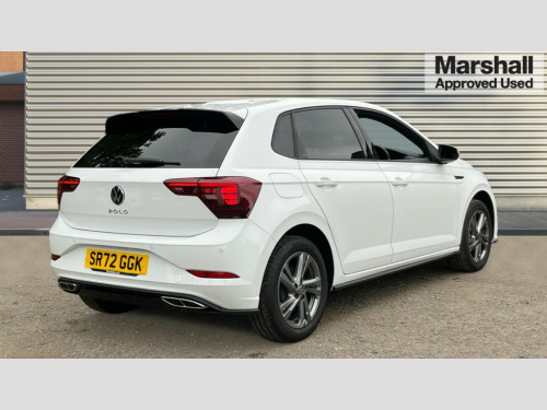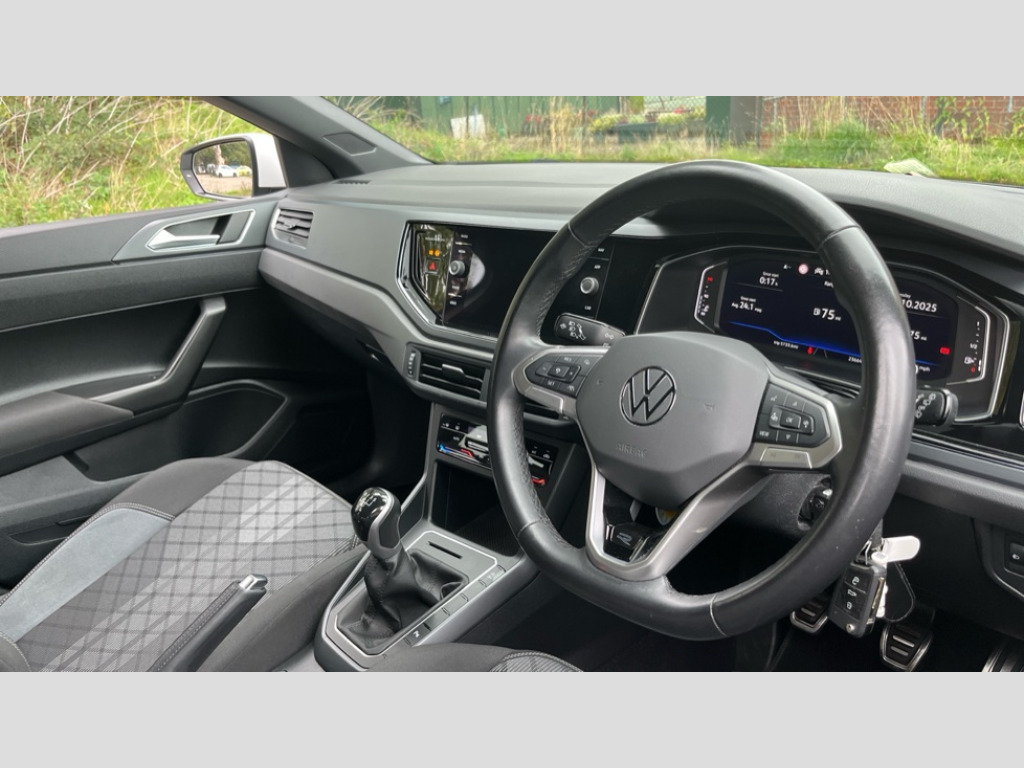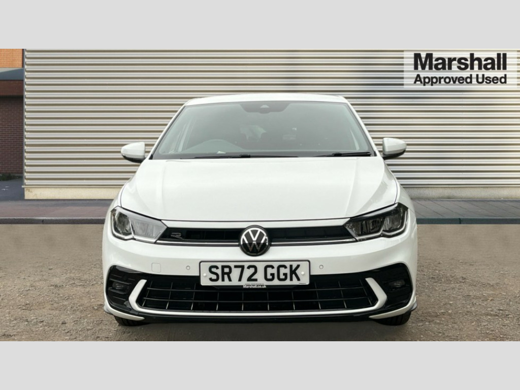 Volkswagen Polo 1.0 TSI R-Line 5dr Advanced driver attention and drowsiness monitor, Bluetooth mobile phone interface, Digital Cockpit Pro with 10.25" Display, Dynamic road sign display, Emergency call service, Mobile phone preparation with inductive charging function, Multifunction camera, Power assisted speed sensitive steering, Predictive adaptive cruise control without follow-to-stop and speed limiter, Preparation for We connect and We connect plus, Speedo and rev counter, electronic odometer, trip, service interval display and fuel gauge, Standard rear axle, Travel Assist - Lane keeping system and traffic jam assist, Travel assist including emergency assist, Trip computer, Warning signal and warning light for front and rear seatbelts not fastened, Washer fluid level indicator, Wireless app connect, Front wheel drive, Rear shock absorpion, Start-stop system with battery regeneration (recuperation - energy recovery during braking), DAB Digital radio, Diversity antenna for FM reception, Body colour bumpers, Body colour door handles, Electric front windows, Front scuff plates with R-Line logo, Heat insulating glass windscreen, Power folding adjustable/heated exterior mirrors and front passenger exterior mirror lowering function, Rear electric windows, Rear fog light, Rear side wing doors, Rear windscreen washer and wiper with interval delay, Third brake light, 12V power socket in centre console, 2 USB-C ports in the front, 2 USB-C charging sockets on the center console in the rear, 3 rear head restraints, 60/40 split folding rear seat and rear seat bench not split, Air care climatronic air conditoning system with active combination filter and 2-zone temperature control, Black roof lining, Carpet mats, front and rear, Chrome plated radiator grille inserts, air vent surrounds and light switch surrounds, Door and side trim panel, Driver and front passenger seat height adjustment, Driver/passenger sunvisors with illuminated vanity mirrors, Front centre armrest, Front footwell illumination, Front seat backrest storage pockets, Front sports comfort seats, Handbrake lever handle in leather, Headliner in recycled material, Isofix child seat preparation easy-fit (for two outer rear seats, and front passenger seat) compatible with I-size, Karoso artvelours cloth upholstery, Leather trimmed gear knob, LED interior light with switch off delay and dimmer, 2 reading lights front and rear, Luggage compartment cover, Luggage compartment floor, Luggage compartment lighting, Lumbar adjustment for front seats, Multifunction steering wheel, Single front passenger seat, Stainless steel pedals, Standard pedal cluster, Light and sight pack - Polo R-Line/Black Edition, 3 point height adj front seatbelts + pretensioners, 3x3 point rear seatbelts, ABS, Driver and front passenger airbag with front passenger airbag deactivation, Drivers and front passengers safety optimised head restraints, ESC (Electronic stability control) + EDL (Electronic Differntial lock) and ASR (Traction control), Extended and predictive pedestrian/ cyclist protection, Front curtain and side airbags with center airbag, Hill hold control, Manual child lock in rear doors, Single tone horn, Tyre pressure loss indicator, Alarm with interior protection, Anti-theft alarm system with interior monitoring, backup horn, and towing protection, Anti-theft wheel bolts, Electronic engine immobiliser, Chrome applications on rotary light, mirror adjustment, window regulator switches, outlet with frame in black, Dark grey anodised matt decorative inserts in dash and front door panels, 16" Coventry alloy wheels, Low rolling resistance tyres