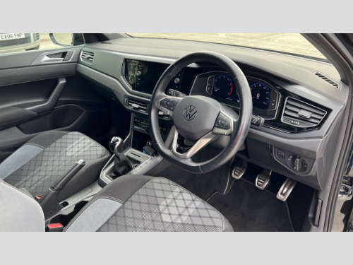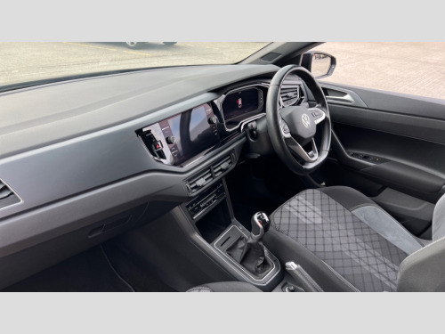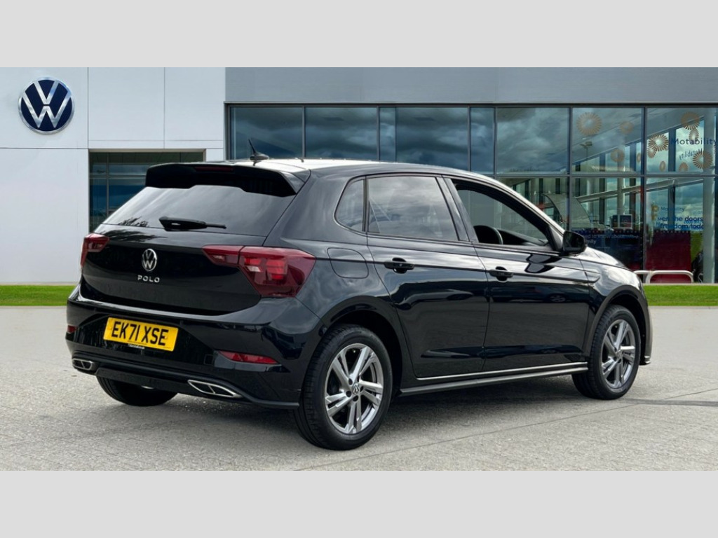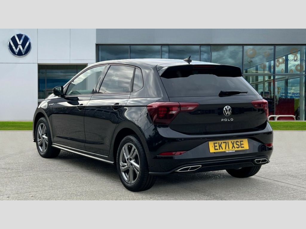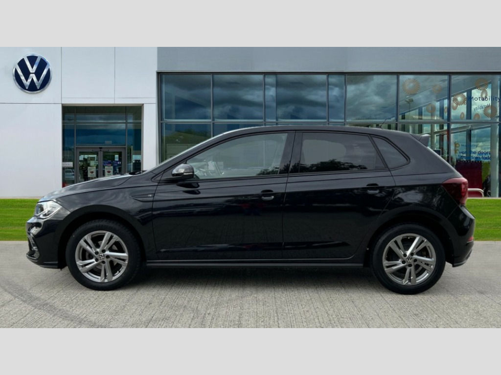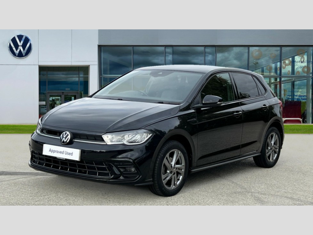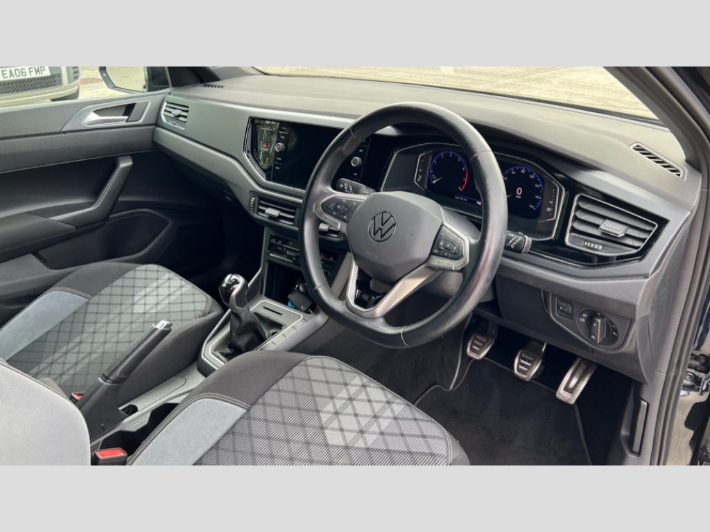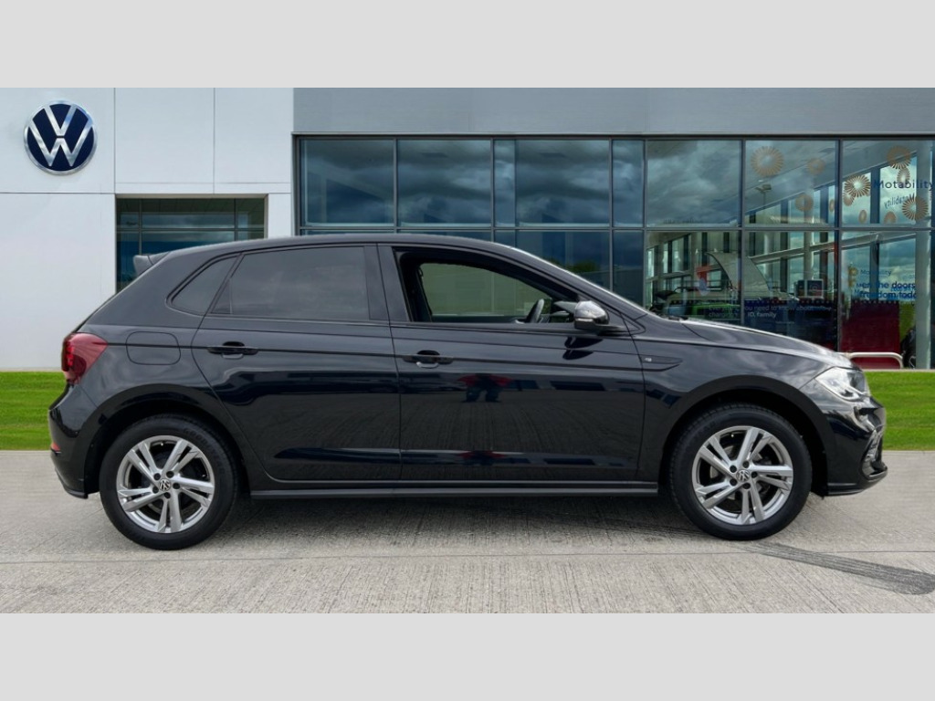 Volkswagen Polo 1.0 TSI R-Line 5dr Adaptive cruise control without follow-to-stop and speed limiter, Bluetooth mobile phone interface, Digital Cockpit Pro with 10.25" Display, Driver alert system, Dynamic road sign display, Emergency call service, Power assisted speed sensitive steering, Preparation for We connect and We connect plus, Speedo and rev counter, electronic odometer, trip, service interval display and fuel gauge, Standard rear axle, Travel Assist - Lane keeping system and traffic jam assist, Travel assist including emergency assist, Trip computer, Warning signal and warning light for front and rear seatbelts not fastened, Washer fluid level indicator, Wireless app connect, Front wheel drive, Rear shock absorpion, Start-stop system with battery regeneration (recuperation - energy recovery during braking), DAB Digital radio, Diversity antenna for FM reception, Body colour bumpers, Body colour door handles, Body colour door mirrors, Electric front windows, Front fog lights with static cornering function, Front scuff plates with R-Line logo, Heat insulating darkened glass in side and rear windows, Heat insulating glass windscreen, Power folding adjustable/heated exterior mirrors and front passenger exterior mirror lowering function, Rear electric windows, Rear fog light, Rear tinted glass from B-pillar backwards approx 65% tinted, Rear windscreen washer and wiper with interval delay, Third brake light, 12V power socket in centre console, 2 USB-C ports in the front, 2 USB-C charging sockets on the center console in the rear, 3 rear head restraints, 60/40 split folding rear seat and rear seat bench not split, Air care climatronic air conditoning system with active combination filter and 2-zone temperature control, Black roof lining, Ceramique headliner, Chrome plated radiator grille inserts, air vent surrounds and light switch surrounds, Door and side trim panel, Driver and front passenger seat height adjustment, Driver/passenger sunvisors with illuminated vanity mirrors, Front + rear carpet mats, Front centre armrest, Front footwell illumination, Front seat backrest storage pockets, Front sports comfort seats, Handbrake lever handle in leather, Isofix child seat preparation easy-fit (for two outer rear seats, and front passenger seat) compatible with I-size, Karoso artvelours cloth upholstery, Leather trimmed gear knob, LED interior light with switch off delay and dimmer, 2 reading lights front and rear, Luggage compartment cover, Luggage compartment floor, Luggage compartment lighting, Lumbar adjustment for front seats, Multifunction steering wheel, Stainless steel pedals, Standard pedal cluster, Light and sight pack - Polo R-Line/Black Edition, 3 point height adj front seatbelts + pretensioners, 3x3 point rear seatbelts, ABS, Driver and front passenger airbag with front passenger airbag deactivation, Drivers and front passengers safety optimised head restraints, ESC (Electronic stability control) + EDL (Electronic Differntial lock) and ASR (Traction control), Extended and predictive pedestrian/ cyclist protection, Front curtain and side airbags with center airbag, Hill hold control, Single tone horn, Tyre pressure loss indicator, Alarm with interior protection, Anti-theft alarm system with interior monitoring, backup horn, and towing protection, Anti-theft wheel bolts, Electronic engine immobiliser, Chrome applications on rotary light, mirror adjustment, window regulator switches, outlet with frame in black, Dark grey anodised matt decorative inserts in dash and front door panels, Low rolling resistance tyres