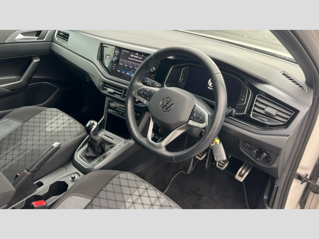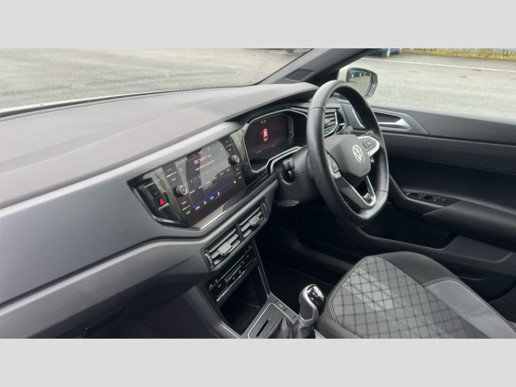 Volkswagen Polo 1.0 TSI R-Line 5dr Adaptive cruise control without follow-to-stop and speed limiter, Bluetooth mobile phone interface, Digital Cockpit Pro with 10.25" Display, Driver alert system, Dynamic road sign display, Emergency call service, Power assisted speed sensitive steering, Preparation for We connect and We connect plus, Speedo and rev counter, electronic odometer, trip, service interval display and fuel gauge, Standard rear axle, Travel Assist - Lane keeping system and traffic jam assist, Travel assist including emergency assist, Trip computer, Warning signal and warning light for front and rear seatbelts not fastened, Washer fluid level indicator, Wireless app connect, Front wheel drive, Rear shock absorpion, Start-stop system with battery regeneration (recuperation - energy recovery during braking), DAB Digital radio, Diversity antenna for FM reception, Front and rear 6 speakers, Body colour bumpers, Body colour door handles, Body colour door mirrors, Electric front windows, Front scuff plates with R-Line logo, Heat insulating darkened glass in side and rear windows, Heat insulating glass windscreen, Power folding adjustable/heated exterior mirrors and front passenger exterior mirror lowering function, Rear electric windows, Rear fog light, Rear side wing doors, Rear tinted glass from B-pillar backwards approx 65% tinted, Rear windscreen washer and wiper with interval delay, Third brake light, 12V power socket in centre console, 2 USB-C ports in the front, 2 USB-C charging sockets on the center console in the rear, 3 rear head restraints, 60/40 split folding rear seat and rear seat bench not split, Air care climatronic air conditoning system with active combination filter and 2-zone temperature control, Black roof lining, Ceramique headliner, Chrome plated radiator grille inserts, air vent surrounds and light switch surrounds, Door and side trim panel, Driver and front passenger seat height adjustment, Driver/passenger sunvisors with illuminated vanity mirrors, Front + rear carpet mats, Front centre armrest, Front footwell illumination, Front seat backrest storage pockets, Front sports comfort seats, Handbrake lever handle in leather, Isofix child seat preparation easy-fit (for two outer rear seats, and front passenger seat) compatible with I-size, Karoso artvelours cloth upholstery, Leather trimmed gear knob, LED interior light with switch off delay and dimmer, 2 reading lights front and rear, Luggage compartment cover, Luggage compartment floor, Luggage compartment lighting, Lumbar adjustment for front seats, Multifunction steering wheel, Single front passenger seat, Stainless steel pedals, Standard pedal cluster, Light and sight pack - Polo R-Line/Black Edition, 3 point height adj front seatbelts + pretensioners, 3x3 point rear seatbelts, ABS, Driver and front passenger airbag with front passenger airbag deactivation, Drivers and front passengers safety optimised head restraints, ESC (Electronic stability control) + EDL (Electronic Differntial lock) and ASR (Traction control), Extended and predictive pedestrian/ cyclist protection, Front curtain and side airbags with center airbag, Hill hold control, Manual child lock in rear doors, Single tone horn, Tyre pressure loss indicator, Alarm with interior protection, Anti-theft alarm system with interior monitoring, backup horn, and towing protection, Anti-theft wheel bolts, Electronic engine immobiliser, Chrome applications on rotary light, mirror adjustment, window regulator switches, outlet with frame in black, Dark grey anodised matt decorative inserts in dash and front door panels, Low rolling resistance tyres