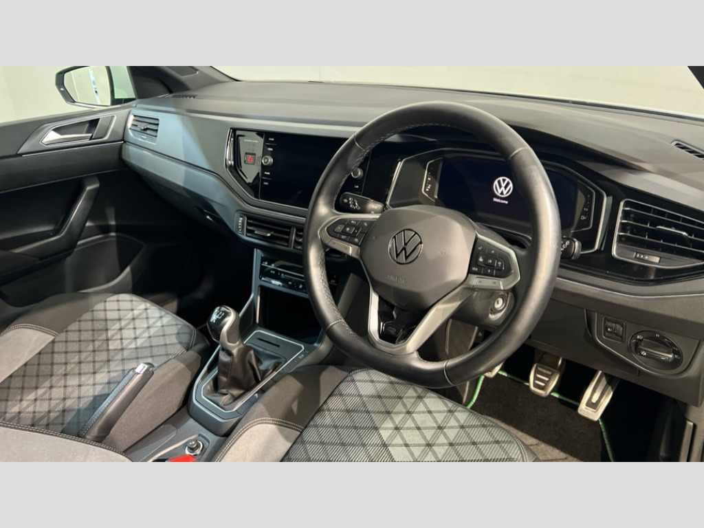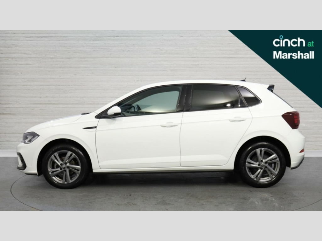 Volkswagen Polo 1.0 TSI R-Line 5dr Adaptive cruise control without follow-to-stop and speed limiter, Bluetooth mobile phone interface, Digital Cockpit Pro with 10.25" Display, Driver alert system, Dynamic road sign display, Emergency call service, Power assisted speed sensitive steering, Preparation for We connect and We connect plus, Speedo and rev counter, electronic odometer, trip, service interval display and fuel gauge, Standard rear axle, Travel Assist - Lane keeping system and traffic jam assist, Travel assist including emergency assist, Trip computer, Warning signal and warning light for front and rear seatbelts not fastened, Washer fluid level indicator, Wireless app connect, Front wheel drive, Rear shock absorpion, Start-stop system with battery regeneration (recuperation - energy recovery during braking), DAB Digital radio, Diversity antenna for FM reception, Front and rear 6 speakers, Body colour bumpers, Body colour door handles, Body colour door mirrors, Electric front windows, Front scuff plates with R-Line logo, Heat insulating darkened glass in side and rear windows, Heat insulating glass windscreen, Power folding adjustable/heated exterior mirrors and front passenger exterior mirror lowering function, Rear electric windows, Rear fog light, Rear side wing doors, Rear tinted glass from B-pillar backwards approx 65% tinted, Rear windscreen washer and wiper with interval delay, Third brake light, 12V power socket in centre console, 2 USB-C ports in the front, 2 USB-C charging sockets on the center console in the rear, 3 rear head restraints, 60/40 split folding rear seat and rear seat bench not split, Air care climatronic air conditoning system with active combination filter and 2-zone temperature control, Black roof lining, Chrome plated radiator grille inserts, air vent surrounds and light switch surrounds, Door and side trim panel, Driver and front passenger seat height adjustment, Driver/passenger sunvisors with illuminated vanity mirrors, Front + rear carpet mats in recycled material, Front centre armrest, Front footwell illumination, Front seat backrest storage pockets, Front sports comfort seats, Handbrake lever handle in leather, Headliner in recycled material, Isofix child seat preparation easy-fit (for two outer rear seats, and front passenger seat) compatible with I-size, Karoso artvelours cloth upholstery, Leather trimmed gear knob, LED interior light with switch off delay and dimmer, 2 reading lights front and rear, Luggage compartment cover, Luggage compartment floor, Luggage compartment lighting, Lumbar adjustment for front seats, Multifunction steering wheel, Single front passenger seat, Stainless steel pedals, Standard pedal cluster, Light and sight pack - Polo R-Line/Black Edition, 3 point height adj front seatbelts + pretensioners, 3x3 point rear seatbelts, ABS, Driver and front passenger airbag with front passenger airbag deactivation, Drivers and front passengers safety optimised head restraints, ESC (Electronic stability control) + EDL (Electronic Differntial lock) and ASR (Traction control), Extended and predictive pedestrian/ cyclist protection, Front curtain and side airbags with center airbag, Hill hold control, Manual child lock in rear doors, Single tone horn, Tyre pressure loss indicator, Alarm with interior protection, Anti-theft alarm system with interior monitoring, backup horn, and towing protection, Anti-theft wheel bolts, Electronic engine immobiliser, Chrome applications on rotary light, mirror adjustment, window regulator switches, outlet with frame in black, Dark grey anodised matt decorative inserts in dash and front door panels, Low rolling resistance tyres
