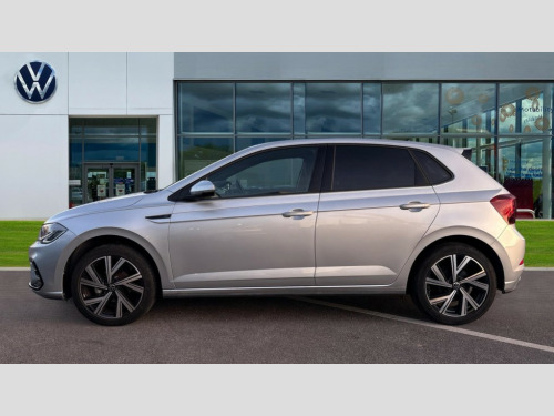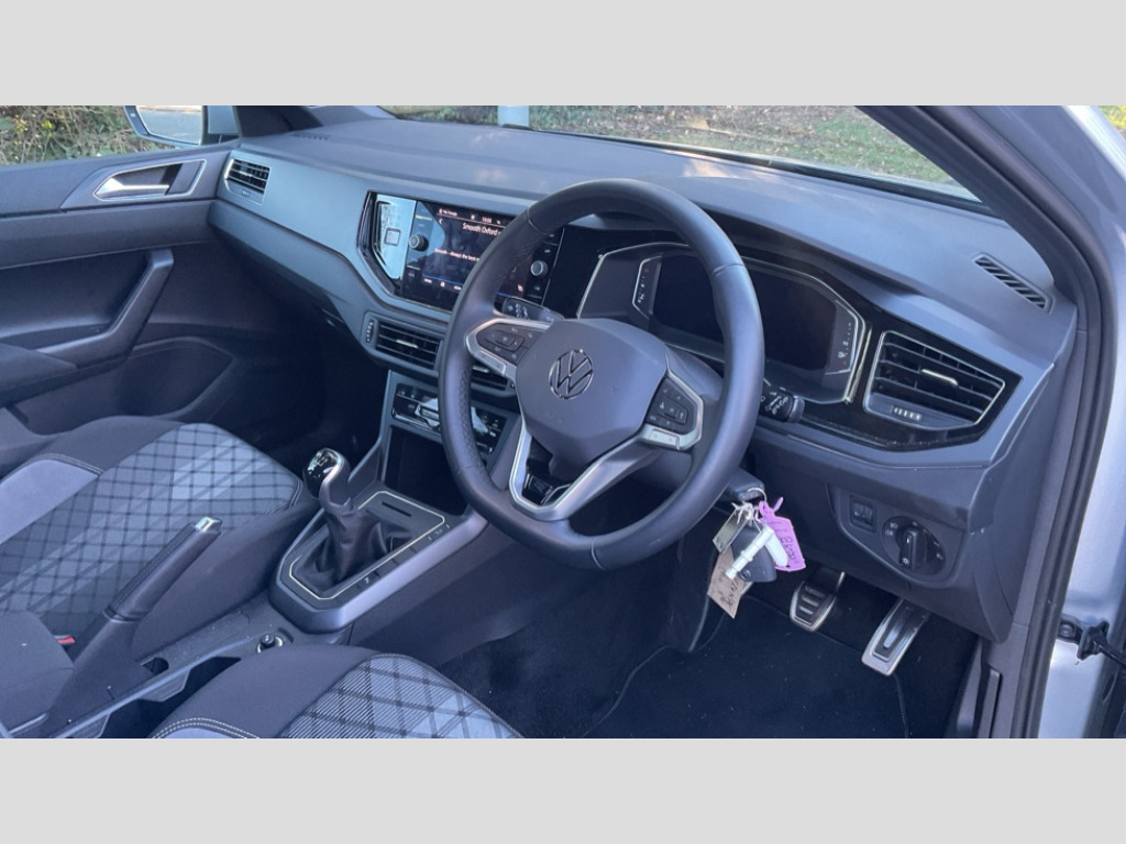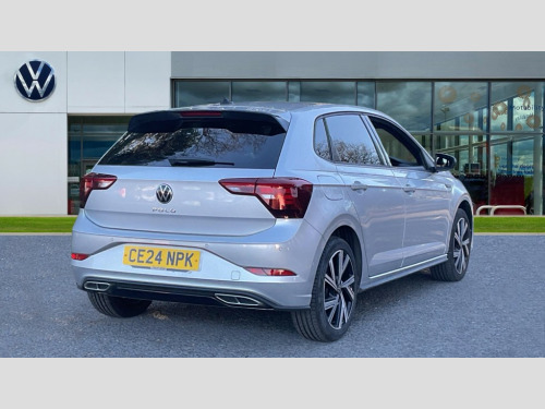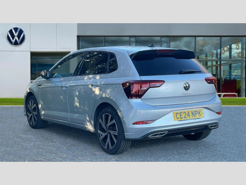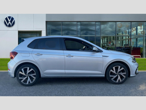 Volkswagen Polo 1.0 TSI R-Line 5dr Adaptive cruise control without follow-to-stop and speed limiter, Advanced driver attention and drowsiness monitor, Bluetooth mobile phone interface, Digital Cockpit Pro with 10.25" Display, Dynamic road sign display, Emergency call service, Power assisted speed sensitive steering, Preparation for We connect and We connect plus, Speedo and rev counter, electronic odometer, trip, service interval display and fuel gauge, Standard rear axle, Travel Assist - Lane keeping system and traffic jam assist, Travel assist including emergency assist, Trip computer, Warning signal and warning light for front and rear seatbelts not fastened, Washer fluid level indicator, Wireless app connect, Front wheel drive, Rear shock absorpion, Start-stop system with battery regeneration (recuperation - energy recovery during braking), DAB Digital radio, Diversity antenna for FM reception, Front and rear 6 speakers, Body colour bumpers, Body colour door handles, Electric front windows, Front scuff plates with R-Line logo, Heat insulating darkened glass in side and rear windows, Heat insulating glass windscreen, Power folding adjustable/heated exterior mirrors and front passenger exterior mirror lowering function, Rear electric windows, Rear fog light, Rear side wing doors, Rear windscreen washer and wiper with interval delay, Third brake light, 12V power socket in centre console, 2 USB-C ports in the front, 2 USB-C charging sockets on the center console in the rear, 3 rear head restraints, 60/40 split folding rear seat and rear seat bench not split, Air care climatronic air conditoning system with active combination filter and 2-zone temperature control, Black roof lining, Chrome plated radiator grille inserts, air vent surrounds and light switch surrounds, Door and side trim panel, Driver and front passenger seat height adjustment, Driver/passenger sunvisors with illuminated vanity mirrors, Front + rear carpet mats in recycled material, Front centre armrest, Front footwell illumination, Front seat backrest storage pockets, Front sports comfort seats, Handbrake lever handle in leather, Headliner in recycled material, Isofix child seat preparation easy-fit (for two outer rear seats, and front passenger seat) compatible with I-size, Karoso artvelours cloth upholstery, Leather trimmed gear knob, LED interior light with switch off delay and dimmer, 2 reading lights front and rear, Luggage compartment cover, Luggage compartment floor, Luggage compartment lighting, Lumbar adjustment for front seats, Multifunction steering wheel, Single front passenger seat, Stainless steel pedals, Standard pedal cluster, Light and sight pack - Polo R-Line/Black Edition, 3 point height adj front seatbelts + pretensioners, 3x3 point rear seatbelts, ABS, Driver and front passenger airbag with front passenger airbag deactivation, Drivers and front passengers safety optimised head restraints, ESC (Electronic stability control) + EDL (Electronic Differntial lock) and ASR (Traction control), Extended and predictive pedestrian/ cyclist protection, Front curtain and side airbags with center airbag, Hill hold control, Manual child lock in rear doors, Single tone horn, Tyre pressure loss indicator, Alarm with interior protection, Anti-theft alarm system with interior monitoring, backup horn, and towing protection, Anti-theft wheel bolts, Electronic engine immobiliser, Chrome applications on rotary light, mirror adjustment, window regulator switches, outlet with frame in black, Dark grey anodised matt decorative inserts in dash and front door panels, Low rolling resistance tyres