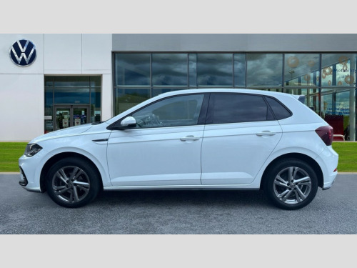 Volkswagen Polo 1.0 TSI R-Line 5dr Adaptive cruise control without follow-to-stop and speed limiter, Bluetooth mobile phone interface, Digital Cockpit Pro with 10.25" Display, Driver alert system, Dynamic road sign display, Emergency call service, Power assisted speed sensitive steering, Preparation for We connect and We connect plus, Speedo and rev counter, electronic odometer, trip, service interval display and fuel gauge, Standard rear axle, Travel Assist - Lane keeping system and traffic jam assist, Travel assist including emergency assist, Trip computer, Warning signal and warning light for front and rear seatbelts not fastened, Washer fluid level indicator, Wireless app connect, Front wheel drive, Rear shock absorpion, Start-stop system with battery regeneration (recuperation - energy recovery during braking), DAB Digital radio, Diversity antenna for FM reception, Front and rear 6 speakers, Body colour bumpers, Body colour door handles, Body colour door mirrors, Electric front windows, Front scuff plates with R-Line logo, Heat insulating darkened glass in side and rear windows, Heat insulating glass windscreen, Power folding adjustable/heated exterior mirrors and front passenger exterior mirror lowering function, Rear electric windows, Rear fog light, Rear side wing doors, Rear tinted glass from B-pillar backwards approx 65% tinted, Rear windscreen washer and wiper with interval delay, Third brake light, 12V power socket in centre console, 2 USB-C ports in the front, 2 USB-C charging sockets on the center console in the rear, 3 rear head restraints, 60/40 split folding rear seat and rear seat bench not split, Air care climatronic air conditoning system with active combination filter and 2-zone temperature control, Black roof lining, Ceramique headliner, Chrome plated radiator grille inserts, air vent surrounds and light switch surrounds, Door and side trim panel, Driver and front passenger seat height adjustment, Driver/passenger sunvisors with illuminated vanity mirrors, Front + rear carpet mats, Front centre armrest, Front footwell illumination, Front seat backrest storage pockets, Front sports comfort seats, Handbrake lever handle in leather, Isofix child seat preparation easy-fit (for two outer rear seats, and front passenger seat) compatible with I-size, Karoso artvelours cloth upholstery, Leather trimmed gear knob, LED interior light with switch off delay and dimmer, 2 reading lights front and rear, Luggage compartment cover, Luggage compartment floor, Luggage compartment lighting, Lumbar adjustment for front seats, Multifunction steering wheel, Single front passenger seat, Stainless steel pedals, Standard pedal cluster, Light and sight pack - Polo R-Line/Black Edition, 3 point height adj front seatbelts + pretensioners, 3x3 point rear seatbelts, ABS, Driver and front passenger airbag with front passenger airbag deactivation, Drivers and front passengers safety optimised head restraints, ESC (Electronic stability control) + EDL (Electronic Differntial lock) and ASR (Traction control), Extended and predictive pedestrian/ cyclist protection, Front curtain and side airbags with center airbag, Hill hold control, Manual child lock in rear doors, Single tone horn, Tyre pressure loss indicator, Alarm with interior protection, Anti-theft alarm system with interior monitoring, backup horn, and towing protection, Anti-theft wheel bolts, Electronic engine immobiliser, Chrome applications on rotary light, mirror adjustment, window regulator switches, outlet with frame in black, Dark grey anodised matt decorative inserts in dash and front door panels, Low rolling resistance tyres