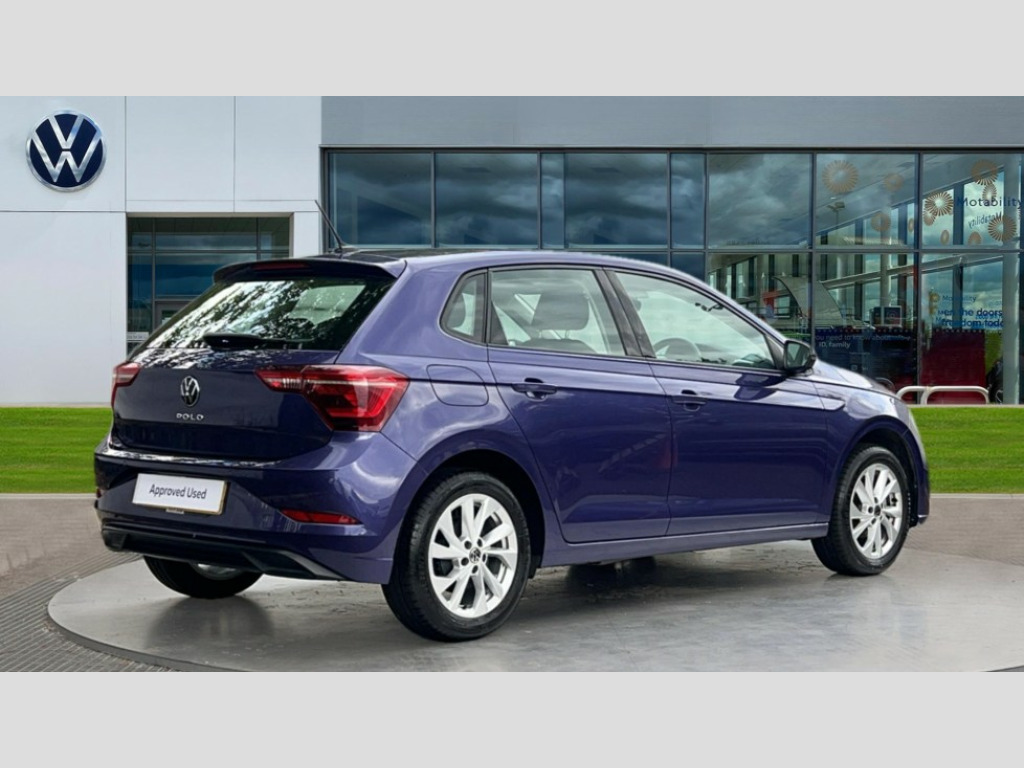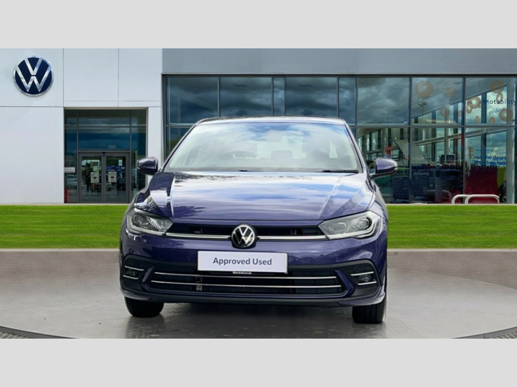 Volkswagen Polo 1.0 TSI Style 5dr Advanced driver attention and drowsiness monitor, Bluetooth mobile phone interface, Digital Cockpit Pro with 10.25" Display, Dynamic road sign display, Emergency call service, Multifunction camera, Power assisted speed sensitive steering, Predictive adaptive cruise control without follow-to-stop and speed limiter, Preparation for We connect and We connect plus, Speedo and rev counter, electronic odometer, trip, service interval display and fuel gauge, Standard rear axle, Travel Assist - Lane keeping system and traffic jam assist, Travel assist including emergency assist, Trip computer, Warning signal and warning light for front and rear seatbelts not fastened, Washer fluid level indicator, Wireless app connect, Front wheel drive, Rear shock absorpion, Start-stop system with battery regeneration (recuperation - energy recovery during braking), DAB Digital radio, Diversity antenna for FM reception, Front and rear 6 speakers, Automatic dimming interior rear view mirror, Automatic headlights, Body colour door handles, Body coloured bumpers and radiator grille with chrome trims, Electric front windows, Heat insulating darkened glass in side and rear windows, Heat insulating glass windscreen, LED separate daytime running lights with coming/leaving home function, Power folding adjustable/heated exterior mirrors and front passenger exterior mirror lowering function, Rain sensor, Rear electric windows, Rear fog light, Rear side wing doors, Rear windscreen washer and wiper with interval delay, Third brake light, 12V power socket in centre console, 2 USB-C ports in the front, 2 USB-C charging sockets on the center console in the rear, 3 rear head restraints, 60/40 split folding rear seat and rear seat bench not split, Air care climatronic air conditoning system with active combination filter and 2-zone temperature control, Ambient lighting, Carpet mats, front and rear, Chrome plated radiator grille inserts, air vent surrounds and light switch surrounds, Door and side trim panel, Driver and front passenger seat height adjustment, Driver/passenger sunvisors with illuminated vanity mirrors, Front centre armrest, Front footwell illumination, Front seat backrest storage pockets, Front sports comfort seats, Handbrake lever handle in leather, Headliner in recycled material, Isofix child seat preparation easy-fit (for two outer rear seats, and front passenger seat) compatible with I-size, Leather trimmed gear knob, LED interior light with switch off delay and dimmer, 2 reading lights front and rear, Luggage compartment cover, Luggage compartment floor, Luggage compartment lighting, Lumbar adjustment for front seats, Multifunction steering wheel, Single front passenger seat, Standard pedal cluster, IQ LED matrix headlights pack - Polo, Light and vision pack - Polo, 3 point height adj front seatbelts + pretensioners, 3x3 point rear seatbelts, ABS, Driver and front passenger airbag with front passenger airbag deactivation, Drivers and front passengers safety optimised head restraints, ESC (Electronic stability control) + EDL (Electronic Differntial lock) and ASR (Traction control), Extended and predictive pedestrian/ cyclist protection, Front curtain and side airbags with center airbag, Front disc brakes, Hill hold control, Manual child lock in rear doors, Rear drum brakes, Single tone horn, Tyre pressure loss indicator, Alarm with interior protection, Anti-theft alarm system with interior monitoring, backup horn, and towing protection, Anti-theft wheel bolts, Electronic engine immobiliser, Chrome applications on rotary light, mirror adjustment, window regulator switches, outlet with frame in black, Low rolling resistance tyres