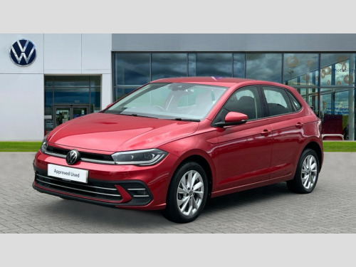 Volkswagen Polo 1.0 TSI Style 5dr Adaptive cruise control without follow-to-stop and speed limiter, Bluetooth mobile phone interface, Digital Cockpit Pro with 10.25" Display, Driver alert system, Dynamic road sign display, Emergency call service, Power assisted speed sensitive steering, Preparation for We connect and We connect plus, Speedo and rev counter, electronic odometer, trip, service interval display and fuel gauge, Standard rear axle, Travel Assist - Lane keeping system and traffic jam assist, Travel assist including emergency assist, Trip computer, Warning signal and warning light for front and rear seatbelts not fastened, Washer fluid level indicator, Wireless app connect, Front wheel drive, Rear shock absorpion, Start-stop system with battery regeneration (recuperation - energy recovery during braking), DAB Digital radio, Diversity antenna for FM reception, Front and rear 6 speakers, Automatic dimming interior rear view mirror, Automatic headlights, Body colour door handles, Body coloured bumpers and radiator grille with chrome trims, Electric front windows, Front fog lights with static cornering function, Heat insulating darkened glass in side and rear windows, Heat insulating glass windscreen, LED separate daytime running lights with coming/leaving home function, Power folding adjustable/heated exterior mirrors and front passenger exterior mirror lowering function, Rain sensor, Rear electric windows, Rear fog light, Rear side wing doors, Rear windscreen washer and wiper with interval delay, Third brake light, 12V power socket in centre console, 2 USB-C ports in the front, 2 USB-C charging sockets on the center console in the rear, 3 rear head restraints, 60/40 split folding rear seat and rear seat bench not split, Air care climatronic air conditoning system with active combination filter and 2-zone temperature control, Ambient lighting, Ceramique headliner, Chrome plated radiator grille inserts, air vent surrounds and light switch surrounds, Door and side trim panel, Driver and front passenger seat height adjustment, Driver/passenger sunvisors with illuminated vanity mirrors, Front + rear carpet mats, Front centre armrest, Front footwell illumination, Front seat backrest storage pockets, Front sports comfort seats, Handbrake lever handle in leather, Isofix child seat preparation easy-fit (for two outer rear seats, and front passenger seat) compatible with I-size, Leather trimmed gear knob, LED interior light with switch off delay and dimmer, 2 reading lights front and rear, Luggage compartment cover, Luggage compartment floor, Luggage compartment lighting, Lumbar adjustment for front seats, Multifunction steering wheel, Single front passenger seat, Standard pedal cluster, IQ LED matrix headlights pack - Polo, Light and vision pack - Polo, 3 point height adj front seatbelts + pretensioners, 3x3 point rear seatbelts, ABS, Driver and front passenger airbag with front passenger airbag deactivation, Drivers and front passengers safety optimised head restraints, ESC (Electronic stability control) + EDL (Electronic Differntial lock) and ASR (Traction control), Extended and predictive pedestrian/ cyclist protection, Front curtain and side airbags with center airbag, Front disc brakes, Hill hold control, Manual child lock in rear doors, Rear drum brakes, Single tone horn, Tyre pressure loss indicator, Alarm with interior protection, Anti-theft alarm system with interior monitoring, backup horn, and towing protection, Anti-theft wheel bolts, Electronic engine immobiliser, Chrome applications on rotary light, mirror adjustment, window regulator switches, outlet with frame in black, Deep iron gloss decorative inserts in dash and front door panels, Low rolling resistance tyres