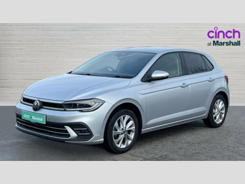 Volkswagen Polo 1.0 TSI Style 5dr Adaptive cruise control without follow-to-stop and speed limiter, Bluetooth mobile phone interface, Digital Cockpit Pro with 10.25" Display, Driver alert system, Dynamic road sign display, Emergency call service, Power assisted speed sensitive steering, Preparation for We connect and We connect plus, Speedo and rev counter, electronic odometer, trip, service interval display and fuel gauge, Standard rear axle, Travel Assist - Lane keeping system and traffic jam assist, Travel assist including emergency assist, Trip computer, Warning signal and warning light for front and rear seatbelts not fastened, Washer fluid level indicator, Wireless app connect, Front wheel drive, Rear shock absorpion, Start-stop system with battery regeneration (recuperation - energy recovery during braking), DAB Digital radio, Diversity antenna for FM reception, Front and rear 6 speakers, Automatic dimming interior rear view mirror, Automatic headlights, Body colour door handles, Body coloured bumpers and radiator grille with chrome trims, Electric front windows, Heat insulating darkened glass in side and rear windows, Heat insulating glass windscreen, LED separate daytime running lights with coming/leaving home function, Power folding adjustable/heated exterior mirrors and front passenger exterior mirror lowering function, Rain sensor, Rear electric windows, Rear fog light, Rear side wing doors, Rear windscreen washer and wiper with interval delay, Third brake light, 12V power socket in centre console, 2 USB-C ports in the front, 2 USB-C charging sockets on the center console in the rear, 3 rear head restraints, 60/40 split folding rear seat and rear seat bench not split, Air care climatronic air conditoning system with active combination filter and 2-zone temperature control, Ambient lighting, Chrome plated radiator grille inserts, air vent surrounds and light switch surrounds, Door and side trim panel, Driver and front passenger seat height adjustment, Driver/passenger sunvisors with illuminated vanity mirrors, Front + rear carpet mats in recycled material, Front centre armrest, Front footwell illumination, Front seat backrest storage pockets, Front sports comfort seats, Handbrake lever handle in leather, Headliner in recycled material, Isofix child seat preparation easy-fit (for two outer rear seats, and front passenger seat) compatible with I-size, Leather trimmed gear knob, LED interior light with switch off delay and dimmer, 2 reading lights front and rear, Luggage compartment cover, Luggage compartment floor, Luggage compartment lighting, Lumbar adjustment for front seats, Multifunction steering wheel, Single front passenger seat, Standard pedal cluster, IQ LED matrix headlights pack - Polo, Light and vision pack - Polo, 3 point height adj front seatbelts + pretensioners, 3x3 point rear seatbelts, ABS, Driver and front passenger airbag with front passenger airbag deactivation, Drivers and front passengers safety optimised head restraints, ESC (Electronic stability control) + EDL (Electronic Differntial lock) and ASR (Traction control), Extended and predictive pedestrian/ cyclist protection, Front curtain and side airbags with center airbag, Front disc brakes, Hill hold control, Manual child lock in rear doors, Rear drum brakes, Single tone horn, Tyre pressure loss indicator, Alarm with interior protection, Anti-theft alarm system with interior monitoring, backup horn, and towing protection, Anti-theft wheel bolts, Electronic engine immobiliser, Chrome applications on rotary light, mirror adjustment, window regulator switches, outlet with frame in black, Low rolling resistance tyres