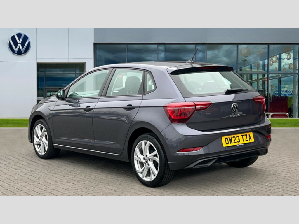 Volkswagen Polo 1.0 TSI Style 5dr Adaptive cruise control without follow-to-stop and speed limiter, Bluetooth mobile phone interface, Digital Cockpit Pro with 10.25" Display, Driver alert system, Dynamic road sign display, Emergency call service, Power assisted speed sensitive steering, Preparation for We connect and We connect plus, Speedo and rev counter, electronic odometer, trip, service interval display and fuel gauge, Standard rear axle, Travel Assist - Lane keeping system and traffic jam assist, Travel assist including emergency assist, Trip computer, Warning signal and warning light for front and rear seatbelts not fastened, Washer fluid level indicator, Wireless app connect, Front wheel drive, Rear shock absorpion, Start-stop system with battery regeneration (recuperation - energy recovery during braking), DAB Digital radio, Diversity antenna for FM reception, Front and rear 6 speakers, Automatic dimming interior rear view mirror, Automatic headlights, Body colour door handles, Body coloured bumpers and radiator grille with chrome trims, Electric front windows, Heat insulating darkened glass in side and rear windows, Heat insulating glass windscreen, LED separate daytime running lights with coming/leaving home function, Power folding adjustable/heated exterior mirrors and front passenger exterior mirror lowering function, Rain sensor, Rear electric windows, Rear fog light, Rear side wing doors, Rear windscreen washer and wiper with interval delay, Third brake light, 12V power socket in centre console, 2 USB-C ports in the front, 2 USB-C charging sockets on the center console in the rear, 3 rear head restraints, 60/40 split folding rear seat and rear seat bench not split, Air care climatronic air conditoning system with active combination filter and 2-zone temperature control, Ambient lighting, Chrome plated radiator grille inserts, air vent surrounds and light switch surrounds, Door and side trim panel, Driver and front passenger seat height adjustment, Driver/passenger sunvisors with illuminated vanity mirrors, Front + rear carpet mats in recycled material, Front centre armrest, Front footwell illumination, Front seat backrest storage pockets, Front sports comfort seats, Handbrake lever handle in leather, Headliner in recycled material, Isofix child seat preparation easy-fit (for two outer rear seats, and front passenger seat) compatible with I-size, Leather trimmed gear knob, LED interior light with switch off delay and dimmer, 2 reading lights front and rear, Luggage compartment cover, Luggage compartment floor, Luggage compartment lighting, Lumbar adjustment for front seats, Multifunction steering wheel, Single front passenger seat, Standard pedal cluster, IQ LED matrix headlights pack - Polo, Light and vision pack - Polo, 3 point height adj front seatbelts + pretensioners, 3x3 point rear seatbelts, ABS, Driver and front passenger airbag with front passenger airbag deactivation, Drivers and front passengers safety optimised head restraints, ESC (Electronic stability control) + EDL (Electronic Differntial lock) and ASR (Traction control), Extended and predictive pedestrian/ cyclist protection, Front curtain and side airbags with center airbag, Front disc brakes, Hill hold control, Manual child lock in rear doors, Rear drum brakes, Single tone horn, Tyre pressure loss indicator, Alarm with interior protection, Anti-theft alarm system with interior monitoring, backup horn, and towing protection, Anti-theft wheel bolts, Electronic engine immobiliser, Chrome applications on rotary light, mirror adjustment, window regulator switches, outlet with frame in black, Low rolling resistance tyres