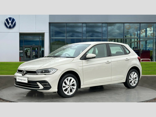 Volkswagen Polo 1.0 TSI Style 5dr Adaptive cruise control without follow-to-stop and speed limiter, Bluetooth mobile phone interface, Digital Cockpit Pro with 10.25" Display, Driver alert system, Dynamic road sign display, Emergency call service, Power assisted speed sensitive steering, Preparation for We connect and We connect plus, Speedo and rev counter, electronic odometer, trip, service interval display and fuel gauge, Standard rear axle, Travel Assist - Lane keeping system and traffic jam assist, Travel assist including emergency assist, Trip computer, Warning signal and warning light for front and rear seatbelts not fastened, Washer fluid level indicator, Wireless app connect, Front wheel drive, Rear shock absorpion, Start-stop system with battery regeneration (recuperation - energy recovery during braking), DAB Digital radio, Diversity antenna for FM reception, Front and rear 6 speakers, Automatic dimming interior rear view mirror, Automatic headlights, Body colour door handles, Body coloured bumpers and radiator grille with chrome trims, Electric front windows, Heat insulating darkened glass in side and rear windows, Heat insulating glass windscreen, LED separate daytime running lights with coming/leaving home function, Power folding adjustable/heated exterior mirrors and front passenger exterior mirror lowering function, Rain sensor, Rear electric windows, Rear fog light, Rear side wing doors, Rear windscreen washer and wiper with interval delay, Third brake light, 12V power socket in centre console, 2 USB-C ports in the front, 2 USB-C charging sockets on the center console in the rear, 3 rear head restraints, 60/40 split folding rear seat and rear seat bench not split, Air care climatronic air conditoning system with active combination filter and 2-zone temperature control, Ambient lighting, Ceramique headliner, Chrome plated radiator grille inserts, air vent surrounds and light switch surrounds, Door and side trim panel, Driver and front passenger seat height adjustment, Driver/passenger sunvisors with illuminated vanity mirrors, Front + rear carpet mats, Front centre armrest, Front footwell illumination, Front seat backrest storage pockets, Front sports comfort seats, Handbrake lever handle in leather, Isofix child seat preparation easy-fit (for two outer rear seats, and front passenger seat) compatible with I-size, Leather trimmed gear knob, LED interior light with switch off delay and dimmer, 2 reading lights front and rear, Luggage compartment cover, Luggage compartment floor, Luggage compartment lighting, Lumbar adjustment for front seats, Multifunction steering wheel, Single front passenger seat, Standard pedal cluster, IQ LED matrix headlights pack - Polo, Light and vision pack - Polo, 3 point height adj front seatbelts + pretensioners, 3x3 point rear seatbelts, ABS, Driver and front passenger airbag with front passenger airbag deactivation, Drivers and front passengers safety optimised head restraints, ESC (Electronic stability control) + EDL (Electronic Differntial lock) and ASR (Traction control), Extended and predictive pedestrian/ cyclist protection, Front curtain and side airbags with center airbag, Front disc brakes, Hill hold control, Manual child lock in rear doors, Rear drum brakes, Single tone horn, Tyre pressure loss indicator, Alarm with interior protection, Anti-theft alarm system with interior monitoring, backup horn, and towing protection, Anti-theft wheel bolts, Electronic engine immobiliser, Chrome applications on rotary light, mirror adjustment, window regulator switches, outlet with frame in black, Deep iron gloss decorative inserts in dash and front door panels, Low rolling resistance tyres
