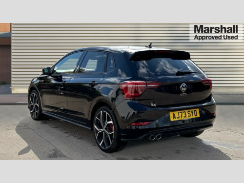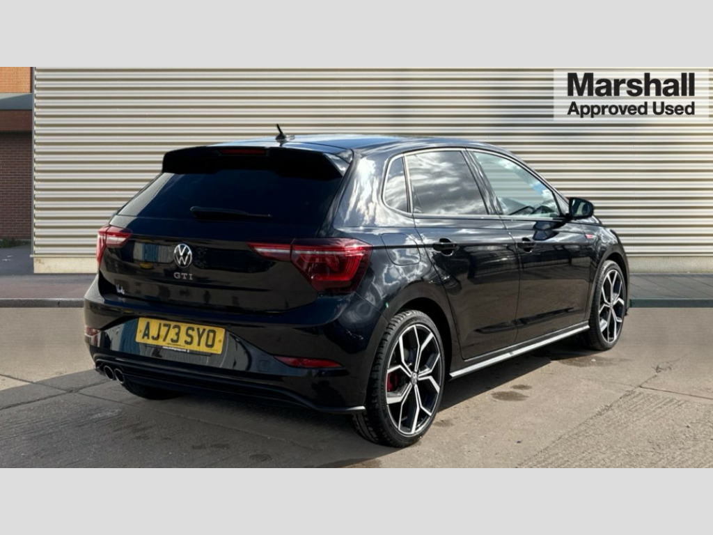 Volkswagen Polo 2.0 TSI GTI 5dr DSG Adaptive cruise control with follow-to-stop and speed limiter, Advanced driver attention and drowsiness monitor, Bluetooth mobile phone interface, Digital Cockpit Pro with 10.25" Display, Dynamic road sign display, Eco mode, Emergency call service, Power assisted speed sensitive steering, Preparation for We connect and We connect plus, Speedo and rev counter, electronic odometer, trip, service interval display and fuel gauge, Travel Assist - Lane keeping system and traffic jam assist, Travel assist including emergency assist, Trip computer, Warning signal and warning light for front and rear seatbelts not fastened, Washer fluid level indicator, Wireless app connect, Adaptive chassis control, Front wheel drive, Heavy duty rear axle, Rear shock absorpion sports version, Sports select suspension lowered by 15mm, Start-stop system with battery regeneration (recuperation - energy recovery during braking), DAB Digital radio, Diversity antenna for FM reception, Front and rear 6 speakers, Body colour bumpers, Body colour door handles, Electric front windows, Front scuff plates in aluminium with GTI logo, Heat insulating darkened glass in side and rear windows, Heat insulating glass windscreen, Power folding adjustable/heated exterior mirrors and front passenger exterior mirror lowering function, Rain sensor, Rear electric windows, Rear fog light, Rear side wing doors, Rear windscreen washer and wiper with interval delay, Sport bumpers with air intakes with honeycomb structure, Third brake light, Twin chrome exhaust tailpipes, 12V power socket in centre console, 2 USB-C ports in the front, 2 USB-C charging sockets on the center console in the rear, 3 rear head restraints, 60/40 split folding rear seat and rear seat bench not split, Air care climatronic air conditoning system with active combination filter and 2-zone temperature control, Black roof lining, Chrome plated radiator grille inserts, air vent surrounds and light switch surrounds, Door and side trim panel, Driver and front passenger seat height adjustment, Driver/passenger sunvisors with illuminated vanity mirrors, Front + rear carpet mats in recycled material, Front centre armrest, Front footwell illumination, Front seat backrest storage pockets, GTI sports gearshift knob in aluminium leather, Handbrake lever handle in leather, Headliner in recycled material, Isofix child seat preparation easy-fit (for two outer rear seats, and front passenger seat) compatible with I-size, LED interior light with switch off delay and dimmer, 2 reading lights front and rear, Luggage compartment cover, Luggage compartment floor, Luggage compartment lighting, Single front passenger seat, Stainless steel pedals, Standard pedal cluster, Three spoke leather wrapped multifunction sports steering wheel with shifting paddles, IQ LED matrix headlights pack - Polo, Light and sight pack - Polo GTI, 3 point height adj front seatbelts + pretensioners, 3x3 point rear seatbelts, ABS, Driver and front passenger airbag with front passenger airbag deactivation, Drivers and front passengers safety optimised head restraints, ESC (Electronic stability control) + EDL (Electronic Differntial lock) and ASR (Traction control), Extended and predictive pedestrian/ cyclist protection, Front and rear disc brakes with red brake calipers, Front curtain and side airbags with center airbag, Hill hold control, Manual child lock in rear doors, Two tone horn, Tyre pressure loss indicator, Alarm with interior protection, Anti-theft alarm system with interior monitoring, backup horn, and towing protection, Anti-theft wheel bolts, Electronic engine immobiliser, Chrome applications on rotary light, mirror adjustment, window regulator switches, outlet with frame in black, Low rolling resistance tyres