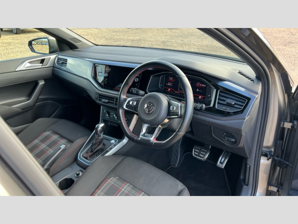 Volkswagen Polo 2.0 TSI GTI+ 5dr DSG ACC - Adaptive cruise control with front assist, forward collision warning, distance monitoring, city emergency brake and speed limiter, Active Info Display, 10.3" high resolution TFT dash display screen with customised information, App-Connect, Bluetooth Telephone preparation, Driver alert system, Multifunction colour display, PAS - speed related, Service interval indicator, Start/stop system, Trip computer, Warning buzzer and light for front seatbelts unfastened, Battery regeneration during braking, Lowered sports suspension, XDS electronic differential lock, 6 speakers, Composition media system with radio, glovebox mounted CD, colour touch screen, SD card, aux-in, USB, multimedia interface, DAB Digital radio, Driver Personalisation profile selection, Automatic dimming interior rear view mirror with rain sensor, Black grille with chrome surround, Body colour bumpers, Body colour door handles, Body coloured side sills, Chrome insert to lower bumper, Chrome trimmed front air intake surrounds, Dusk sensor + automatic driving lights, Electric folding door mirrors, Electric front windows, Electric operated/heated door mirrors, Extended sill strips flared in black, Front fog lights including static cornering, Front wash/wipe with interval delay, Fully galvanised body, Gloss black rear spoiler (roof), Heated rear window with auto timer, High level 3rd brake light, Honeycomb radiator grille with red stripe, LED darkened rear light clusters, LED daytime running lights, LED headlamps with automatic range adjustment, LED rear number plate lights, Manual coming/automatic leaving home lighting function, Rear electric windows, Rear tinted glass from B-pillar backwards approx 65% tinted, Rear windscreen washer and wiper with interval delay, Stainless steel door sill protections with GTI logo, Twin chrome exhaust tailpipes, Unique GTI badging, 12V power socket in centre console, 2 bag hooks in luggage compartment, 2 cupholders, 3 rear head restraints, 60/40 split folding rear seat, AlumInium look pedals and driver's footrest, Ambient lighting, Black roof lining and sun visors, Chrome-plated electric window button surround, Driver/front passenger seat height adjustment + underseat drawers, Driver/passenger sunvisors with illuminated vanity mirrors, Dust/pollen filter, Front + rear carpet mats, Front centre armrest with storage compartment, Front seat backrest storage nets, Front seats with lumbar support, Front/rear reading lights, Gear change selection via paddle shift on steering wheel, Glovebox, Handbrake grip button in chrome effect, Height/reach adjustable steering column, Instrument lighting, white adjustable panel illumination, Interior light with delay, Isofix Preparation 2 Rear child seats, Jack and tool kit, LED footwell lights, Luggage compartment cover, removable, Luggage compartment lighting, Matt chrome gear lever gaiter surround, Storage compartment in front doors, Storage compartment in rear doors, Storage compartment under front seats, Three spoke leather trimmed multifunction steering wheel with red contrast stitching, Titanium black headlining, Variable boot floor, Variable Luggage compartment, GTI styling pack - Polo, Light and sight pack - Polo, 3 point height adj front seatbelts + pretensioners, 3x3 point rear seatbelts, ABS, Automatic post collision braking, Driver/front passenger airbag, Driver/Passenger whiplash optimised head restraints, ESP with EDL + ASR, Front and rear passengers curtain airbag system including front side airbags, Front passenger airbag deactivation, Front/rear disc brakes, Hill hold control, Hydraulic Brake Assist (HBA), Red brake calipers, Two tone horn, Tyre pressure monitoring system, Alarm with remote central locking and interior protection, Electronic engine immobiliser, Remote keyless entry using key fob including Start/Stop button on centre console, Air vents in Matt chrome, Chrome plated electric mirror adjustment light switch surround, Gloss black instrument surrounds, Space saver spare wheel