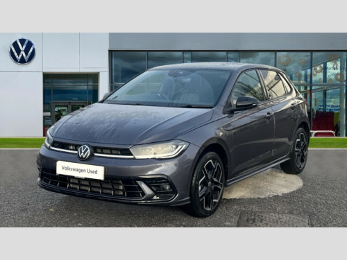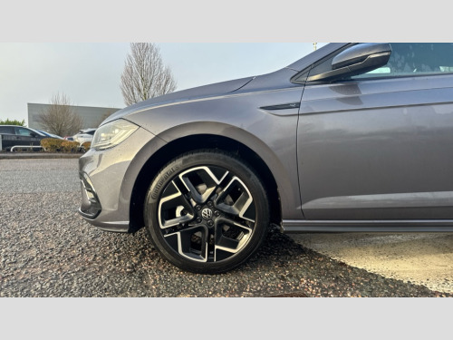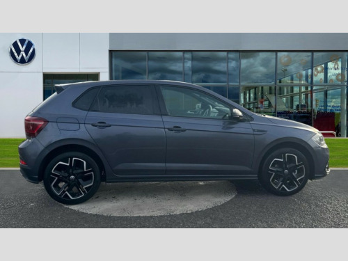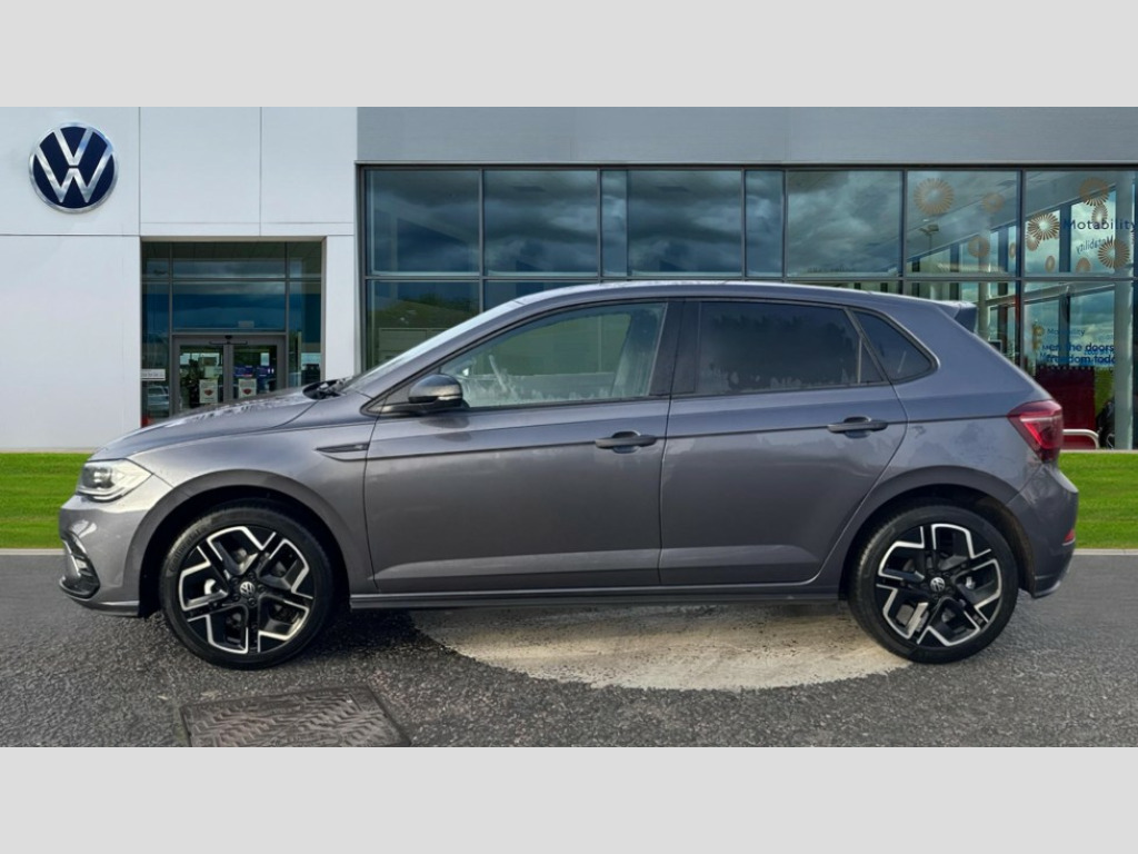 Volkswagen Polo 1.0 TSI 115 Black Edition 5dr DSG Adaptive cruise control with follow-to-stop and speed limiter, Advanced driver attention and drowsiness monitor, Bluetooth mobile phone interface, Digital Cockpit Pro with 10.25" Display, Dynamic road sign display, Emergency call service, Mobile phone preparation with inductive charging function, Multifunction camera, Power assisted speed sensitive steering, Preparation for We connect and We connect plus, Speedo and rev counter, electronic odometer, trip, service interval display and fuel gauge, Standard rear axle, Travel Assist - Lane keeping system and traffic jam assist, Travel assist including emergency assist, Trip computer, Warning signal and warning light for front and rear seatbelts not fastened, Washer fluid level indicator, Wireless app connect, Front wheel drive, Rear shock absorpion, Start-stop system with battery regeneration (recuperation - energy recovery during braking), DAB Digital radio, Diversity antenna for FM reception, Body colour bumpers, Body colour door handles, Electric front windows, Front scuff plates with Black edition logo, Heat insulating glass windscreen, Power folding adjustable/heated exterior mirrors and front passenger exterior mirror lowering function, Rear electric windows, Rear fog light, Rear side wing doors, Rear windscreen washer and wiper with interval delay, Third brake light, 12V power socket in centre console, 2 USB-C ports in the front, 2 USB-C charging sockets on the center console in the rear, 3 rear head restraints, 60/40 split folding rear seat and rear seat bench not split, Air care climatronic air conditoning system with active combination filter and 2-zone temperature control, Black roof lining, Carpet mats, front and rear, Chrome plated radiator grille inserts, air vent surrounds and light switch surrounds, Door and side trim panel, Driver and front passenger seat height adjustment, Driver/passenger sunvisors with illuminated vanity mirrors, Front centre armrest, Front footwell illumination, Front seat backrest storage pockets, Front sports comfort seats, Handbrake lever handle in leather, Headliner in recycled material, Heated front seats, Isofix child seat preparation easy-fit (for two outer rear seats, and front passenger seat) compatible with I-size, Karoso artvelours cloth upholstery, Leather trimmed gear knob, LED interior light with switch off delay and dimmer, 2 reading lights front and rear, Luggage compartment cover, Luggage compartment floor, Luggage compartment lighting, Lumbar adjustment for front seats, Single front passenger seat, Stainless steel pedals, Standard pedal cluster, Three spoke leather wrapped multifunction steering wheel with shifting paddles, Black roof pack - Polo, IQ LED matrix headlights pack - Polo, Light and sight pack - Polo R-Line/Black Edition, 3 point height adj front seatbelts + pretensioners, 3x3 point rear seatbelts, ABS, Driver and front passenger airbag with front passenger airbag deactivation, Drivers and front passengers safety optimised head restraints, ESC (Electronic stability control) + EDL (Electronic Differntial lock) and ASR (Traction control), Extended and predictive pedestrian/ cyclist protection, Front curtain and side airbags with center airbag, Front/rear disc brakes, Hill hold control, Manual child lock in rear doors, Single tone horn, Tyre pressure loss indicator, Alarm with interior protection, Anti-theft alarm system with interior monitoring, backup horn, and towing protection, Anti-theft wheel bolts, Electronic engine immobiliser, Black dashboard, Chrome applications on rotary light, mirror adjustment, window regulator switches, outlet with frame in black, Dark grey anodised matt decorative inserts in dash and front door panels, 17" York black diamond turned alloy wheels, Low rolling resistance tyres