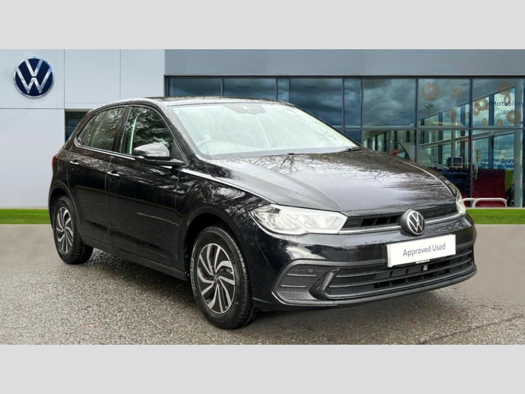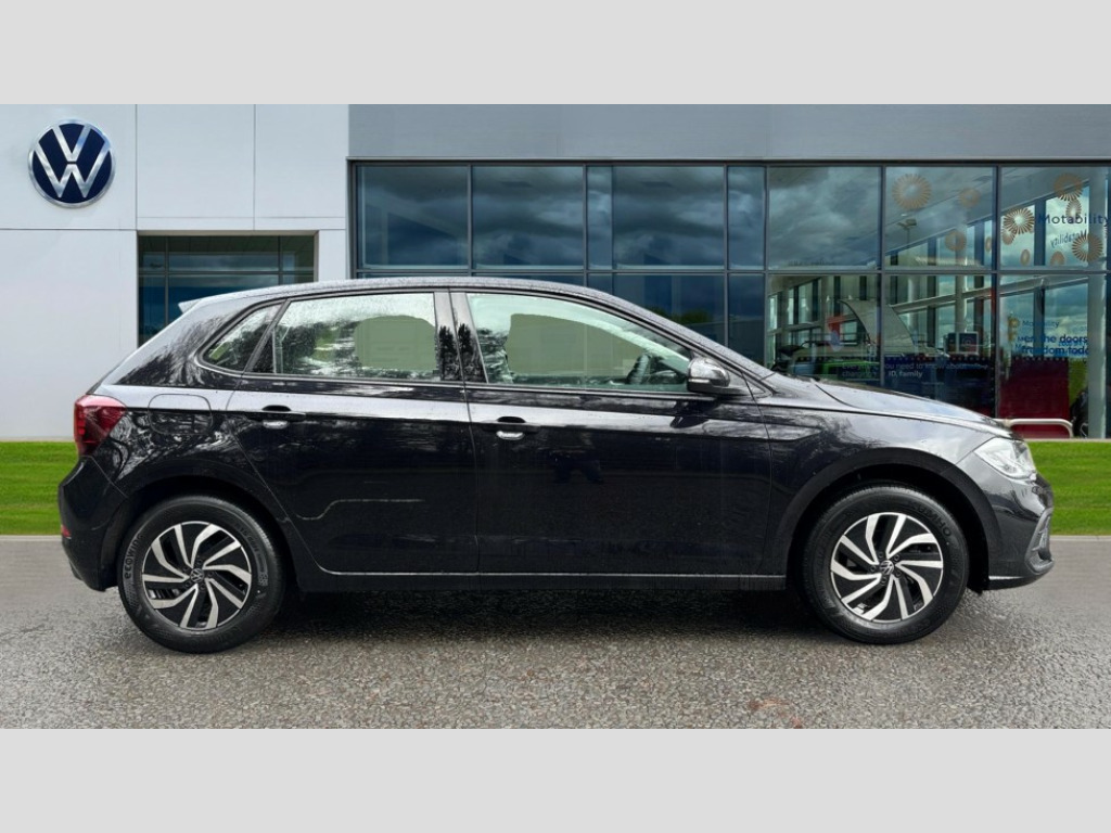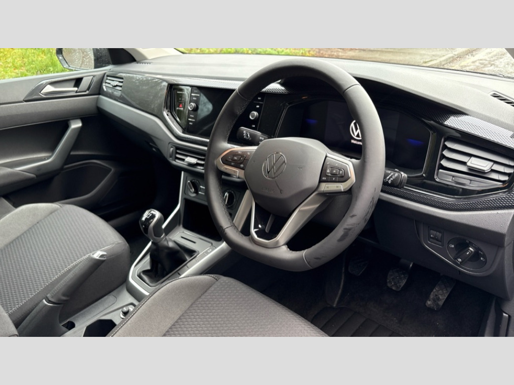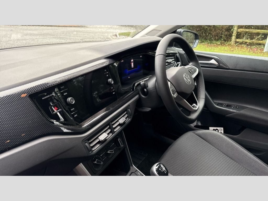 Volkswagen Polo 1.0 Life 5dr Advanced driver attention and drowsiness monitor, Bluetooth mobile phone interface, Dynamic road sign display, Emergency call service, Mobile phone preparation with inductive charging function, Multifunction camera, Power assisted speed sensitive steering, Predictive adaptive cruise control without follow-to-stop and speed limiter, Preparation for navigation system with media and internet package, Preparation for We connect and We connect plus, Speedo and rev counter, electronic odometer, trip, service interval display and exterior temperature gauge, Standard rear axle, Travel Assist - Lane keeping system and traffic jam assist, Travel assist including emergency assist, Trip computer, Warning signal and warning light for front and rear seatbelts not fastened, Washer fluid level indicator, Wireless app connect, Front wheel drive, Rear shock absorpion, Start-stop system with battery regeneration (recuperation - energy recovery during braking), DAB Digital radio, Diversity antenna for FM reception, Automatic dimming interior rear view mirror, Automatic headlight control with LED separate daytime running lights with coming/leaving home function, Body colour bumpers with chrome inserts, Body colour door handles, Body colour door mirrors, Electric front windows, Engine badge deletion, Headlight range adjustment, Heat insulating and laminated safety glass windshield, LED Headlights, LED rear combination lamps, Power folding adjustable/heated exterior mirrors and front passenger exterior mirror lowering function, Rain sensor, Rear electric windows, Rear fog light, Rear side wing doors, Rear windscreen washer and wiper with interval delay, Third brake light, 12V power socket in centre console, 2 front and 2 rear reading lights with switch off delay and dimmer, 2 USB-C ports in the front, 2 USB-C charging sockets on the center console in the rear, 3 rear head restraints, 60/40 split folding rear seat and rear seat bench not split, Carpet mats, front and rear, Ceramique roof lining, Chrome plated radiator grille inserts, air vent surrounds and light switch surrounds, Door and side trim panel, Driver and front passenger seat height adjustment, Driver/passenger sunvisors with illuminated vanity mirrors, Front centre armrest, Front seat backrest storage pockets, Front standard seats, Handbrake lever handle in leather, Hartley/Thomas cloth upholstery, Headliner in recycled material, Isofix child seat preparation easy-fit (for two outer rear seats, and front passenger seat) compatible with I-size, Leather trimmed gear knob, Luggage compartment cover, Luggage compartment lighting, Removable luggage compartment floor, Single front passenger seat, Standard climatic zones, Standard pedal cluster, Three spoke leather wrapped multifunction steering wheel, 3 point height adj front seatbelts + pretensioners, 3x3 point rear seatbelts, ABS, Driver and front passenger airbag with front passenger airbag deactivation, Drivers and front passengers safety optimised head restraints, ESC (Electronic stability control) + EDL (Electronic Differntial lock) and ASR (Traction control), Extended and predictive pedestrian/ cyclist protection, Front assist with autonomous emergency braking (for Adaptive Cruise Control ACC up to 130 mph), Front curtain and side airbags with center airbag, Front disc brakes, Hill hold control, Manual child lock in rear doors, Rear drum brakes, Single tone horn, Tyre pressure loss indicator, Alarm with interior protection, Anti-theft alarm system with interior monitoring, backup horn, and towing protection, Anti-theft wheel bolts, Electronic engine immobiliser, Lava stone black gloss/matt decorative inserts in dash and front door panels, Low rolling resistance tyres