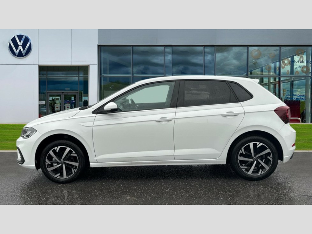 Volkswagen Polo 1.0 TSI Match 5dr DSG Advanced driver attention and drowsiness monitor, Bluetooth mobile phone interface, Dynamic road sign display, Emergency call service, Mobile phone preparation with inductive charging function, Multifunction front facing camera for distance control, Power assisted speed sensitive steering, Predictive adaptive cruise control without follow-to-stop and speed limiter, Preparation for navigation system with media and internet package, Preparation for We connect and We connect plus, Rear view camera, Speedo and rev counter, electronic odometer, trip, service interval display and exterior temperature gauge, Standard rear axle, Travel Assist - Lane keeping system and traffic jam assist, Travel assist including emergency assist, Trip computer, Warning signal and warning light for front and rear seatbelts not fastened, Washer fluid level indicator, Wireless app connect, Front wheel drive, Rear shock absorpion, Start-stop system with battery regeneration (recuperation - energy recovery during braking), DAB Digital radio, Diversity antenna for FM reception, Automatic dimming interior rear view mirror, Automatic headlight control with LED separate daytime running lights with coming/leaving home function, Body colour bumpers with chrome inserts, Body colour door handles, Body colour door mirrors, Electric front windows, Engine badge deletion, Headlight range adjustment, Heat insulating and laminated safety glass windshield, LED Headlights, LED rear combination lamps, Power folding adjustable/heated exterior mirrors and front passenger exterior mirror lowering function, Rain sensor, Rear electric windows, Rear fog light, Rear side wing doors, Rear tinted glass from B-pillar backwards approx 65% tinted, Rear windscreen washer and wiper with interval delay, Third brake light, 12V power socket in centre console, 2 front and 2 rear reading lights with switch off delay and dimmer, 2 USB-C ports in the front, 2 USB-C charging sockets on the center console in the rear, 3 rear head restraints, 60/40 split folding rear seat and rear seat bench not split, Carpet mats, front and rear, Ceramique roof lining, Chrome plated radiator grille inserts, air vent surrounds and light switch surrounds, Door and side trim panel, Driver and front passenger seat height adjustment, Driver/passenger sunvisors with illuminated vanity mirrors, Front centre armrest, Front seat backrest storage pockets, Front standard seats, Handbrake lever handle in leather, Hartley/Thomas cloth upholstery, Headliner in recycled material, Isofix child seat preparation easy-fit (for two outer rear seats, and front passenger seat) compatible with I-size, Leather trimmed gear knob, Luggage compartment cover, Luggage compartment lighting, Removable luggage compartment floor, Single front passenger seat, Standard climatic zones, Standard pedal cluster, Three spoke leather wrapped multifunction steering wheel with shifting paddles, Light and vision pack - Polo, 3 point height adj front seatbelts + pretensioners, 3 point seat belt for centre rear seat, 3 point seatbelts, outer rear with ECE lable, ABS, Driver and front passenger airbag with front passenger airbag deactivation, Drivers and front passengers safety optimised head restraints, ESC (Electronic stability control) + EDL (Electronic Differntial lock) and ASR (Traction control), Extended and predictive pedestrian/ cyclist protection, Front assist with autonomous emergency braking (for Adaptive Cruise Control ACC up to 130 mph), Front curtain and side airbags with center airbag, Front disc brakes, Hill hold control, Manual child lock in rear doors, Rear drum brakes, Single tone horn, Tyre pressure loss indicator, Alarm with interior protection, Anti-theft alarm system with interior monitoring, backup horn, and towing protection, Anti-theft wheel bolts, Electronic engine immobiliser, Lava stone black gloss/matt decorative inserts in dash and front door panels, 16" Torsby alloy wheels, Low rolling resistance tyres