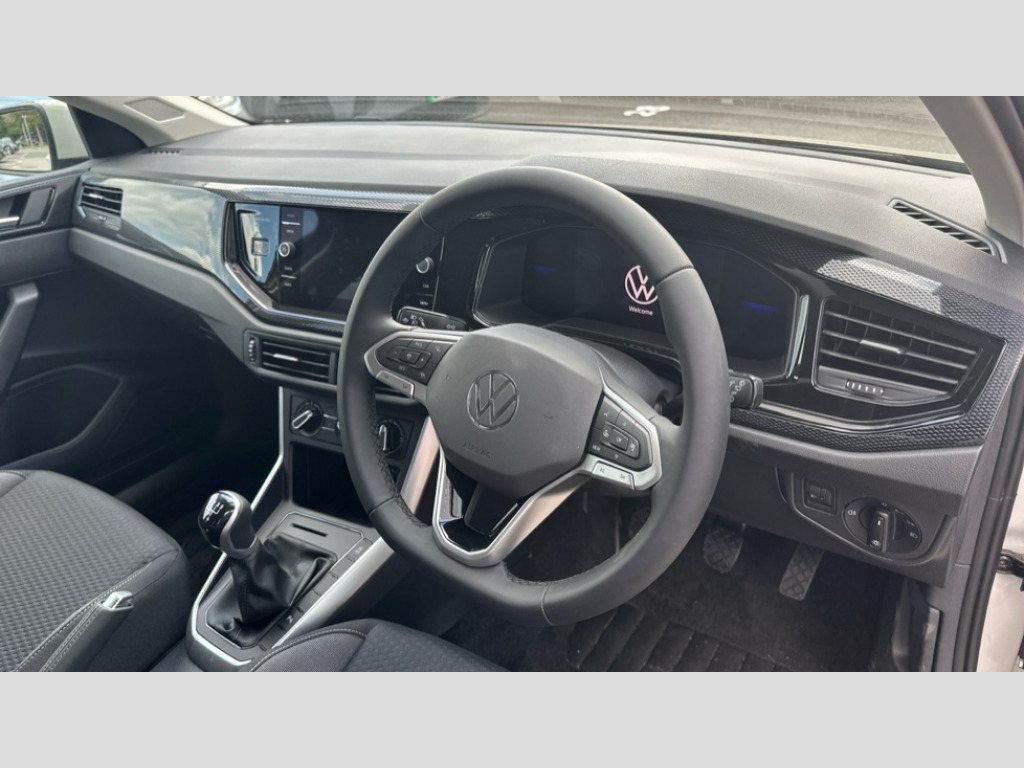 Volkswagen Polo 1.0 TSI Match 5dr Adaptive cruise control without follow-to-stop and speed limiter, Advanced driver attention and drowsiness monitor, Bluetooth mobile phone interface, Dynamic road sign display, Emergency call service, Mobile phone preparation with inductive charging function, Multifunction front facing camera for distance control, Power assisted speed sensitive steering, Preparation for navigation system with media and internet package, Preparation for We connect and We connect plus, Rear view camera, Speedo and rev counter, electronic odometer, trip, service interval display and exterior temperature gauge, Standard rear axle, Travel Assist - Lane keeping system and traffic jam assist, Travel assist including emergency assist, Trip computer, Warning signal and warning light for front and rear seatbelts not fastened, Washer fluid level indicator, Wireless app connect, Front wheel drive, Rear shock absorpion, Start-stop system with battery regeneration (recuperation - energy recovery during braking), DAB Digital radio, Diversity antenna for FM reception, Automatic dimming interior rear view mirror, Automatic headlight control with LED separate daytime running lights with coming/leaving home function, Body colour bumpers with chrome inserts, Body colour door handles, Body colour door mirrors, Electric front windows, Engine badge deletion, Headlight range adjustment, Heat insulating and laminated safety glass windshield, LED Headlights, LED rear combination lamps, Power folding adjustable/heated exterior mirrors and front passenger exterior mirror lowering function, Rain sensor, Rear electric windows, Rear fog light, Rear side wing doors, Rear tinted glass from B-pillar backwards approx 65% tinted, Rear windscreen washer and wiper with interval delay, Third brake light, 12V power socket in centre console, 2 front and 2 rear reading lights with switch off delay and dimmer, 2 USB-C ports in the front, 2 USB-C charging sockets on the center console in the rear, 3 rear head restraints, 60/40 split folding rear seat and rear seat bench not split, Ceramique roof lining, Chrome plated radiator grille inserts, air vent surrounds and light switch surrounds, Door and side trim panel, Driver and front passenger seat height adjustment, Driver/passenger sunvisors with illuminated vanity mirrors, Front centre armrest, Front seat backrest storage pockets, Front standard seats, Handbrake lever handle in leather, Hartley/Thomas cloth upholstery, Headliner in recycled material, Isofix child seat preparation easy-fit (for two outer rear seats, and front passenger seat) compatible with I-size, Leather trimmed gear knob, Luggage compartment cover, Luggage compartment lighting, Removable luggage compartment floor, Single front passenger seat, Standard climatic zones, Standard pedal cluster, Three spoke leather wrapped multifunction steering wheel, Light and vision pack - Polo, 3 point height adj front seatbelts + pretensioners, 3 point seat belt for centre rear seat, 3 point seatbelts, outer rear with ECE lable, ABS, Driver and front passenger airbag with front passenger airbag deactivation, Drivers and front passengers safety optimised head restraints, ESC (Electronic stability control) + EDL (Electronic Differntial lock) and ASR (Traction control), Extended and predictive pedestrian/ cyclist protection, Front assist with autonomous emergency braking (for Adaptive Cruise Control ACC up to 130 mph), Front curtain and side airbags with center airbag, Front disc brakes, Hill hold control, Manual child lock in rear doors, Rear drum brakes, Single tone horn, Tyre pressure loss indicator, Alarm with interior protection, Anti-theft alarm system with interior monitoring, backup horn, and towing protection, Anti-theft wheel bolts, Electronic engine immobiliser, Lava stone black gloss/matt decorative inserts in dash and front door panels, 16" Torsby alloy wheels, Low rolling resistance tyres
