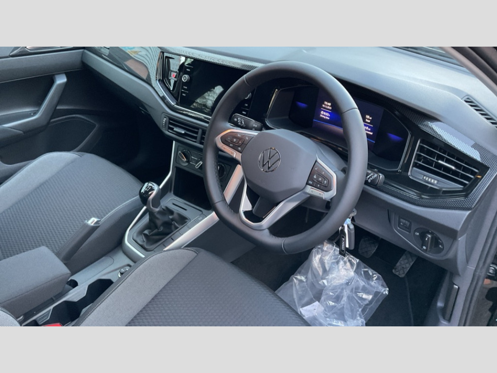 Volkswagen Polo 1.0 TSI Match 5dr Adaptive cruise control without follow-to-stop and speed limiter, Advanced driver attention and drowsiness monitor, Bluetooth mobile phone interface, Dynamic road sign display, Emergency call service, Mobile phone preparation with inductive charging function, Multifunction front facing camera for distance control, Power assisted speed sensitive steering, Preparation for navigation system with media and internet package, Preparation for We connect and We connect plus, Rear view camera, Speedo and rev counter, electronic odometer, trip, service interval display and exterior temperature gauge, Standard rear axle, Travel Assist - Lane keeping system and traffic jam assist, Travel assist including emergency assist, Trip computer, Warning signal and warning light for front and rear seatbelts not fastened, Washer fluid level indicator, Wireless app connect, Front wheel drive, Rear shock absorpion, Start-stop system with battery regeneration (recuperation - energy recovery during braking), DAB Digital radio, Diversity antenna for FM reception, Automatic dimming interior rear view mirror, Automatic headlight control with LED separate daytime running lights with coming/leaving home function, Body colour bumpers with chrome inserts, Body colour door handles, Body colour door mirrors, Electric front windows, Engine badge deletion, Headlight range adjustment, Heat insulating and laminated safety glass windshield, LED Headlights, LED rear combination lamps, Power folding adjustable/heated exterior mirrors and front passenger exterior mirror lowering function, Rain sensor, Rear electric windows, Rear fog light, Rear side wing doors, Rear tinted glass from B-pillar backwards approx 65% tinted, Rear windscreen washer and wiper with interval delay, Third brake light, 12V power socket in centre console, 2 front and 2 rear reading lights with switch off delay and dimmer, 2 USB-C ports in the front, 2 USB-C charging sockets on the center console in the rear, 3 rear head restraints, 60/40 split folding rear seat and rear seat bench not split, Ceramique roof lining, Chrome plated radiator grille inserts, air vent surrounds and light switch surrounds, Door and side trim panel, Driver and front passenger seat height adjustment, Driver/passenger sunvisors with illuminated vanity mirrors, Front centre armrest, Front seat backrest storage pockets, Front standard seats, Handbrake lever handle in leather, Hartley/Thomas cloth upholstery, Headliner in recycled material, Isofix child seat preparation easy-fit (for two outer rear seats, and front passenger seat) compatible with I-size, Leather trimmed gear knob, Luggage compartment cover, Luggage compartment lighting, Removable luggage compartment floor, Single front passenger seat, Standard climatic zones, Standard pedal cluster, Three spoke leather wrapped multifunction steering wheel, Light and vision pack - Polo, 3 point height adj front seatbelts + pretensioners, 3 point seat belt for centre rear seat, 3 point seatbelts, outer rear with ECE lable, ABS, Driver and front passenger airbag with front passenger airbag deactivation, Drivers and front passengers safety optimised head restraints, ESC (Electronic stability control) + EDL (Electronic Differntial lock) and ASR (Traction control), Extended and predictive pedestrian/ cyclist protection, Front assist with autonomous emergency braking (for Adaptive Cruise Control ACC up to 130 mph), Front curtain and side airbags with center airbag, Front disc brakes, Hill hold control, Manual child lock in rear doors, Rear drum brakes, Single tone horn, Tyre pressure loss indicator, Alarm with interior protection, Anti-theft alarm system with interior monitoring, backup horn, and towing protection, Anti-theft wheel bolts, Electronic engine immobiliser, Lava stone black gloss/matt decorative inserts in dash and front door panels, 16" Torsby alloy wheels, Low rolling resistance tyres