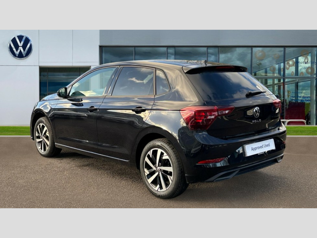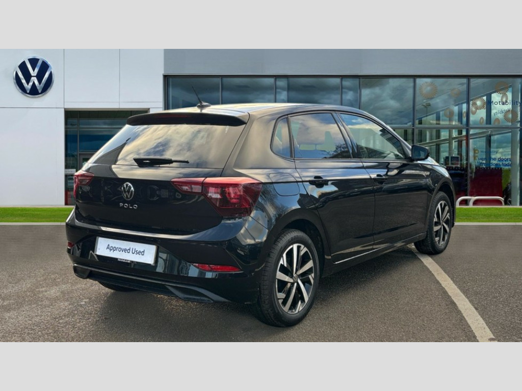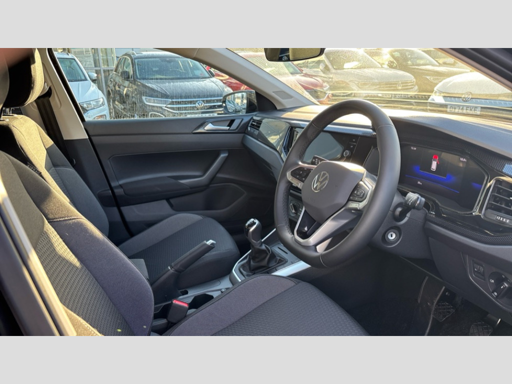 Volkswagen Polo 1.0 TSI Match 5dr Adaptive cruise control without follow-to-stop and speed limiter, Advanced driver attention and drowsiness monitor, Bluetooth mobile phone interface, Dynamic road sign display, Emergency call service, Mobile phone preparation with inductive charging function, Multifunction front facing camera for distance control, Power assisted speed sensitive steering, Preparation for navigation system with media and internet package, Preparation for We connect and We connect plus, Rear view camera, Speedo and rev counter, electronic odometer, trip, service interval display and exterior temperature gauge, Standard rear axle, Travel Assist - Lane keeping system and traffic jam assist, Travel assist including emergency assist, Trip computer, Warning signal and warning light for front and rear seatbelts not fastened, Washer fluid level indicator, Wireless app connect, Front wheel drive, Rear shock absorpion, Start-stop system with battery regeneration (recuperation - energy recovery during braking), DAB Digital radio, Diversity antenna for FM reception, Automatic dimming interior rear view mirror, Automatic headlight control with LED separate daytime running lights with coming/leaving home function, Body colour bumpers with chrome inserts, Body colour door handles, Body colour door mirrors, Electric front windows, Engine badge deletion, Headlight range adjustment, Heat insulating and laminated safety glass windshield, LED Headlights, LED rear combination lamps, Power folding adjustable/heated exterior mirrors and front passenger exterior mirror lowering function, Rain sensor, Rear electric windows, Rear fog light, Rear side wing doors, Rear tinted glass from B-pillar backwards approx 65% tinted, Rear windscreen washer and wiper with interval delay, Third brake light, 12V power socket in centre console, 2 front and 2 rear reading lights with switch off delay and dimmer, 2 USB-C ports in the front, 2 USB-C charging sockets on the center console in the rear, 3 rear head restraints, 60/40 split folding rear seat and rear seat bench not split, Ceramique roof lining, Chrome plated radiator grille inserts, air vent surrounds and light switch surrounds, Door and side trim panel, Driver and front passenger seat height adjustment, Driver/passenger sunvisors with illuminated vanity mirrors, Front centre armrest, Front seat backrest storage pockets, Front standard seats, Handbrake lever handle in leather, Hartley/Thomas cloth upholstery, Headliner in recycled material, Isofix child seat preparation easy-fit (for two outer rear seats, and front passenger seat) compatible with I-size, Leather trimmed gear knob, Luggage compartment cover, Luggage compartment lighting, Removable luggage compartment floor, Single front passenger seat, Standard climatic zones, Standard pedal cluster, Three spoke leather wrapped multifunction steering wheel, Light and vision pack - Polo, 3 point height adj front seatbelts + pretensioners, 3 point seat belt for centre rear seat, 3 point seatbelts, outer rear with ECE lable, ABS, Driver and front passenger airbag with front passenger airbag deactivation, Drivers and front passengers safety optimised head restraints, ESC (Electronic stability control) + EDL (Electronic Differntial lock) and ASR (Traction control), Extended and predictive pedestrian/ cyclist protection, Front assist with autonomous emergency braking (for Adaptive Cruise Control ACC up to 130 mph), Front curtain and side airbags with center airbag, Front disc brakes, Hill hold control, Manual child lock in rear doors, Rear drum brakes, Single tone horn, Tyre pressure loss indicator, Alarm with interior protection, Anti-theft alarm system with interior monitoring, backup horn, and towing protection, Anti-theft wheel bolts, Electronic engine immobiliser, Lava stone black gloss/matt decorative inserts in dash and front door panels, 16" Torsby alloy wheels, Low rolling resistance tyres