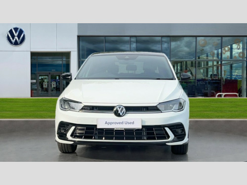 Volkswagen Polo 1.0 TSI 115 R-Line 5dr DSG Adaptive cruise control with follow-to-stop and speed limiter, Advanced driver attention and drowsiness monitor, Bluetooth mobile phone interface, Digital Cockpit Pro with 10.25" Display, Dynamic road sign display, Emergency call service, Mobile phone preparation with inductive charging function, Multifunction camera, Power assisted speed sensitive steering, Preparation for We connect and We connect plus, Speedo and rev counter, electronic odometer, trip, service interval display and fuel gauge, Standard rear axle, Travel Assist - Lane keeping system and traffic jam assist, Travel assist including emergency assist, Trip computer, Warning signal and warning light for front and rear seatbelts not fastened, Washer fluid level indicator, Wireless app connect, Front wheel drive, Rear shock absorpion, Start-stop system with battery regeneration (recuperation - energy recovery during braking), DAB Digital radio, Diversity antenna for FM reception, Body colour bumpers, Body colour door handles, Electric front windows, Front scuff plates with R-Line logo, Heat insulating glass windscreen, Power folding adjustable/heated exterior mirrors and front passenger exterior mirror lowering function, Rear electric windows, Rear fog light, Rear side wing doors, Rear windscreen washer and wiper with interval delay, Third brake light, 12V power socket in centre console, 2 USB-C ports in the front, 2 USB-C charging sockets on the center console in the rear, 3 rear head restraints, 60/40 split folding rear seat and rear seat bench not split, Air care climatronic air conditoning system with active combination filter and 2-zone temperature control, Black roof lining, Carpet mats, front and rear, Chrome plated radiator grille inserts, air vent surrounds and light switch surrounds, Door and side trim panel, Driver and front passenger seat height adjustment, Driver/passenger sunvisors with illuminated vanity mirrors, Front centre armrest, Front footwell illumination, Front seat backrest storage pockets, Front sports comfort seats, Handbrake lever handle in leather, Headliner in recycled material, Isofix child seat preparation easy-fit (for two outer rear seats, and front passenger seat) compatible with I-size, Karoso artvelours cloth upholstery, Leather trimmed gear knob, LED interior light with switch off delay and dimmer, 2 reading lights front and rear, Luggage compartment cover, Luggage compartment floor, Luggage compartment lighting, Lumbar adjustment for front seats, Single front passenger seat, Stainless steel pedals, Standard pedal cluster, Three spoke leather wrapped multifunction steering wheel with shifting paddles, Light and sight pack - Polo R-Line/Black Edition, 3 point height adj front seatbelts + pretensioners, 3x3 point rear seatbelts, ABS, Driver and front passenger airbag with front passenger airbag deactivation, Drivers and front passengers safety optimised head restraints, ESC (Electronic stability control) + EDL (Electronic Differntial lock) and ASR (Traction control), Extended and predictive pedestrian/ cyclist protection, Front curtain and side airbags with center airbag, Front/rear disc brakes, Hill hold control, Manual child lock in rear doors, Single tone horn, Tyre pressure loss indicator, Alarm with interior protection, Anti-theft alarm system with interior monitoring, backup horn, and towing protection, Anti-theft wheel bolts, Electronic engine immobiliser, Chrome applications on rotary light, mirror adjustment, window regulator switches, outlet with frame in black, Dark grey anodised matt decorative inserts in dash and front door panels, 16" Coventry alloy wheels, Low rolling resistance tyres