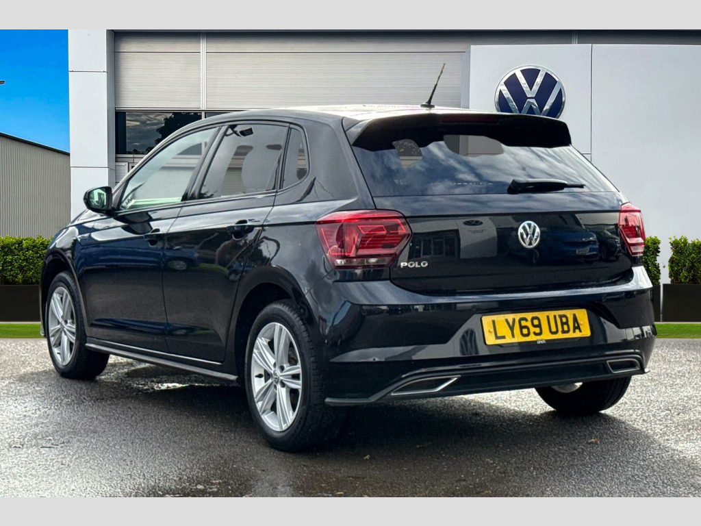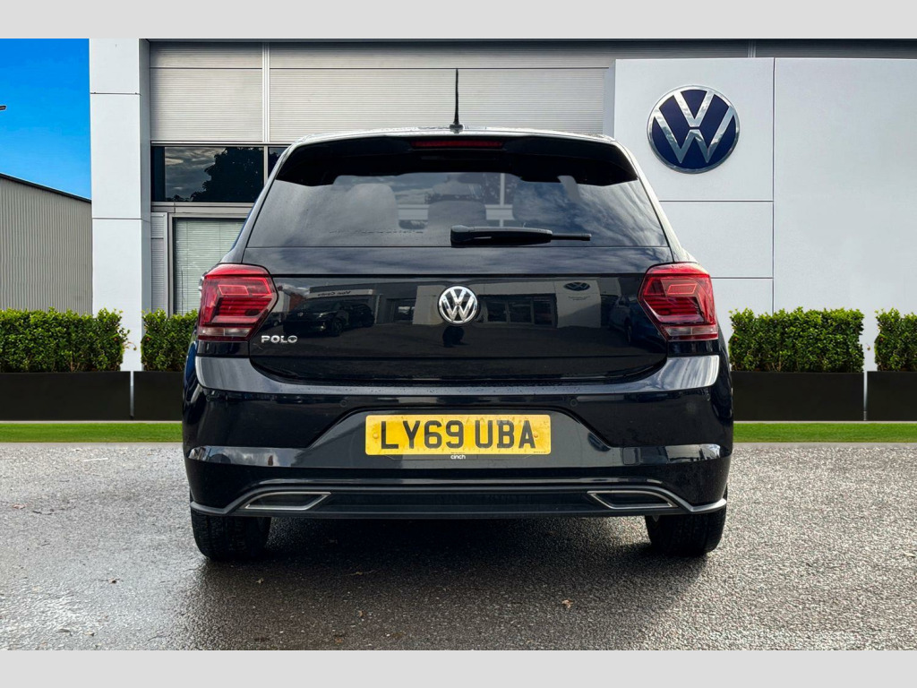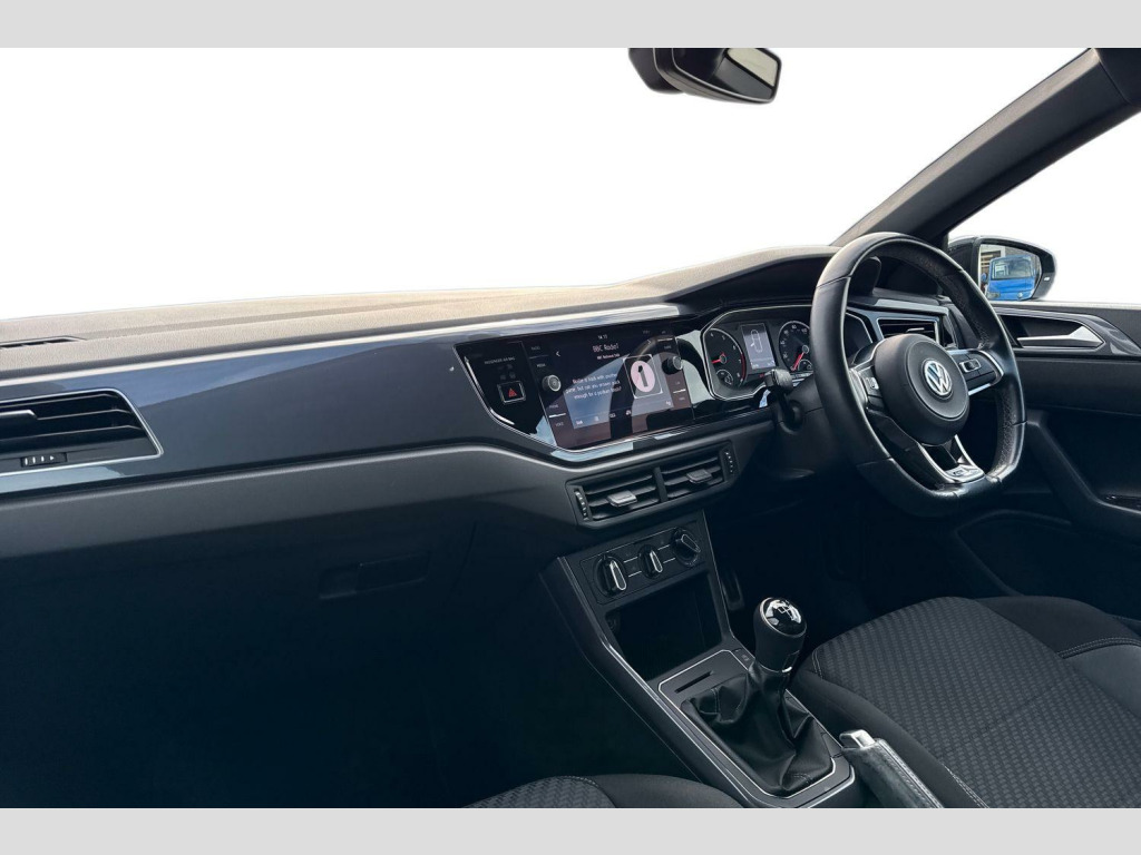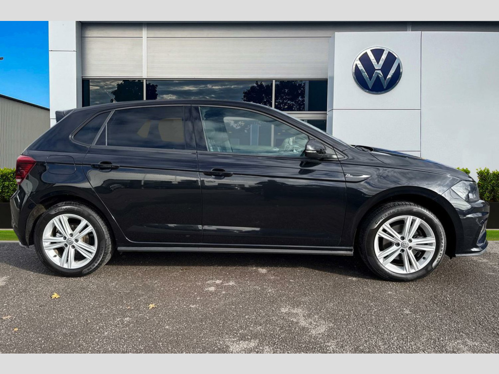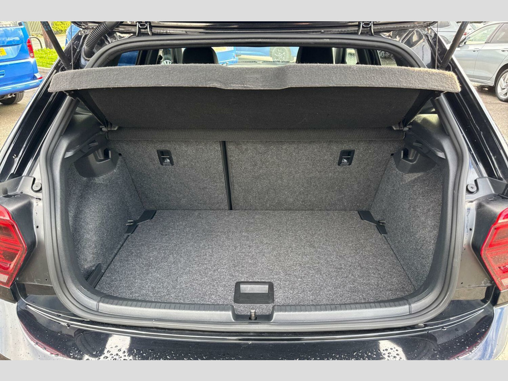 Pearl - Deep black, Carbon flag cloth - Titan black/Flint grey, Electric front windows, Front windscreen washers and wipers with 4 speed intermittent delay, Heat insulating tinted glass, Heated rear window with auto timer, Rear electric windows, Rear windscreen washer and wiper with interval delay, reverse activated, Galvanished body, Black grille with chrome surround, Body colour door handles, Body coloured side sills, Chrome trimmed strip on lower bumper, Left and right chrome effect trapezoid fascia exhaust tailpipe surrounds, Rear diffuser, Unique R Line badging, Front fog lights including static cornering, High level 3rd brake light, LED darkened rear light clusters, LED daytime running lights, LED rear number plate lights, ABS, Automatic post collision braking, ESP with EDL + ASR, Front/rear disc brakes, Hill hold control, Hydraulic Brake Assist (HBA), Driver alert system, Power assisted speed sensitive steering, Electrically foldable, adjustable and heated door mirrors with reverse activated kerb view adjustment on passenger's side, 3 point height adj front seatbelts + pretensioners, 3x3 point rear seatbelts, Driver/front passenger airbag, Drivers and front passengers safety optimised head restraints, Front and rear passenger curtain airbags, Front passenger airbag deactivation, Front seat side impact airbags, Single tone horn, Tyre pressure monitoring system, Front + rear carpet mats, Dust/pollen filter, 2 bag hooks in luggage compartment, 2 front cupholders and 12 V socket with cover, Carbon flag cloth upholstery, Centre console storage with open storage compartment, Chrome-plated electric mirror adjustment switch surround, Chrome-plated electric window button surround, Front centre armrest with storage compartment, Gear lever gaiter in black trim surround, Glovebox, Handbrake grip button in chrome effect, Height/reach adjustable steering column, Jack and tool kit, Leather gear knob and handbrake grip, Luggage compartment cover, removable, Luggage compartment with variable load floor, Stainless steel pedals, Storage compartment in front doors, Storage compartment in rear doors, Storage compartment under front seats, Three spoke leather trimmed multifunction steering wheel with aluminium inserts and R Line Logo, Titanium black roof lining and sun visors, Unique R Line door sill protectors, Ambient lighting in front foorwell, front/rear door and dashboard light strips, Instrument lighting, adjustable panel illumination, Interior light with delay, LED interior lighting - 2 reading lights front and rear with interior delay and dimming function, Luggage compartment lighting, Driver and front passenger sunvisors with illuminated vanity mirrors, App-Connect, Volkswagen connect, Start/stop system, Digital clock, Lights on warning, Multifunction computer plus, Speedo and rev counter, electronic odometer, trip, service interval display and fuel gauge, Warning buzzer and light for front seatbelts unfastened, Battery regeneration during braking, Chrome plated air vent surround, Chrome plated instrument surrounds, Shadow steel decorative inserts, 3 rear head restraints, 60/40 split folding rear seat, Driver and front passenger seat height adjustment, Folding rear seat backrest, Front head restraints, Front seat backrest storage pockets, Front sport seats with lumbar adjustment and R line logo on seat backrest, Isofix Preparation 2 Rear child seats, Light and sight pack - Polo, R Line styling pack - Polo, Alarm with interior protection and deactivation via infotainment system, Electronic engine immobiliser, Remote central locking with 2 remote folding keys, Steel space saver spare wheel