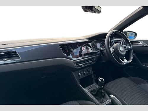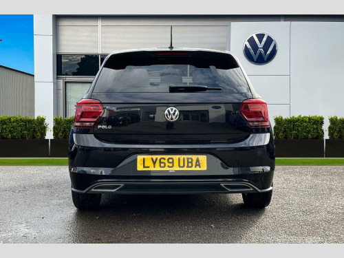 Now available to purchase at Wrexham Volkswagen is this Volkswagen Polo R-Line. Powering this Polo is a 1.0 TSI 115PS engine with manual transmission. The exterior, which is finished in a Deep Black Pearl paintwork, has a range of features on offer. To the front of the vehicle you'll find the automatic headlights that keep the roads well lit, and to the side the rear tinted windows for passenger privacy and the 16in Sebring alloy wheels. For added convenience this Polo also features front and rear parking sensors that assist with maneuvering. This Polo also boasts a larger than usual boot space for its vehicle class, making it practical for everyday use