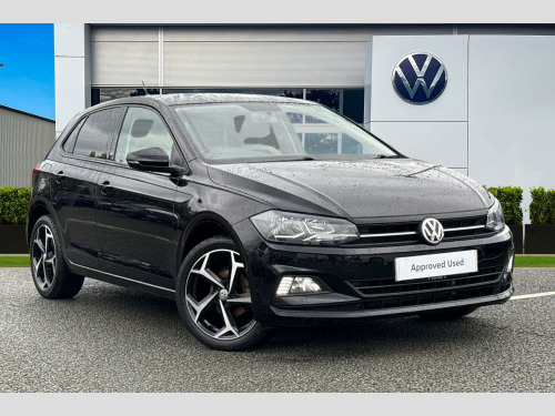 Special solid - Pure white, Tracks 2 cloth - Titan black/Ceramique, Electric front windows, Front windscreen washers and wipers with 4 speed intermittent delay, Heated rear window with auto timer, Rear electric windows, Rear windscreen washer and wiper with interval delay, reverse activated, Galvanished body, Black grille with chrome surround, Black radiator grille with chrome louvres, Body colour bumpers, Body colour door handles, Body coloured side sills, Chrome trimmed front air intake surrounds, Chrome trimmed strip on lower bumper, High level 3rd brake light, LED daytime running lights, LED rear number plate lights, ABS, Automatic post collision braking, ESP with EDL + ASR, Front/rear disc brakes, HBA (Hydraulic Brake Assist), Hill hold control, Driver alert system, Power assisted speed sensitive steering, Body colour door mirrors with integrated indicators, Electrically adjustable and heated door mirrors with reverse activated kerb view adjustment on passenger's side, 3 point height adj front seatbelts + pretensioners, 3x3 point rear seatbelts, Driver/front passenger airbag, Drivers and front passengers safety optimised head restraints, Front and rear passenger curtain airbags, Front passenger airbag deactivation, Front seat side impact airbags, Single tone horn, Tyre pressure monitoring system, Volkswagen connect, Wireless app connect, Diversity antenna for FM reception, Front and rear 6 speakers, Start/stop system, Digital clock, Emergency call service, Lights on warning, Multifunction computer plus, Speedo and rev counter, electronic odometer, trip, service interval display and fuel gauge, Warning buzzer and light for front seatbelts unfastened, Battery regeneration during braking, Chrome plated air vent surround, Chrome plated instrument surrounds, Deep iron decorative inserts, 3 rear head restraints, 60/40 split folding rear seat, Folding rear seat backrest, Front head restraints, Front seat backrest storage pockets, Isofix Preparation 2 Rear child seats, Climate control - 2 zone electronic air conditioning with automatic air recirculation and allergy filter, Dust/pollen filter, 2 bag hooks in luggage compartment, 2 front cupholders and 12 V socket with cover, Centre console storage with open storage compartment, Chrome-plated electric mirror adjustment switch surround, Chrome-plated electric window button surround, Front centre armrest with 2 x USB-C ports in front and 2 x USB-C ports in the rear, Gear lever gaiter in black trim surround, Glovebox, Handbrake grip button in chrome effect, Height/reach adjustable steering column, Leather gear knob and handbrake grip, Luggage compartment cover, removable, Luggage compartment with variable load floor, Storage compartment in front doors, Storage compartment in rear doors, Storage compartment under front seats, Ambient lighting in front foorwell, front/rear door and dashboard light strips, Instrument lighting, adjustable panel illumination, Interior light with delay, LED interior lighting - 2 reading lights front and rear with interior delay and dimming function, Luggage compartment lighting, Driver and front passenger sunvisors with illuminated vanity mirrors, Discover media navigation system with 8" display including streaming and internet pack - Polo, Light and sight pack - Polo, Alarm with interior protection and deactivation via infotainment system, Electronic engine immobiliser, Remote central locking with 2 remote folding keys