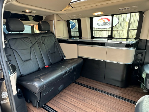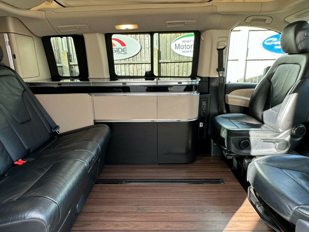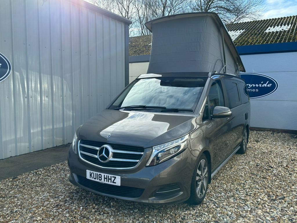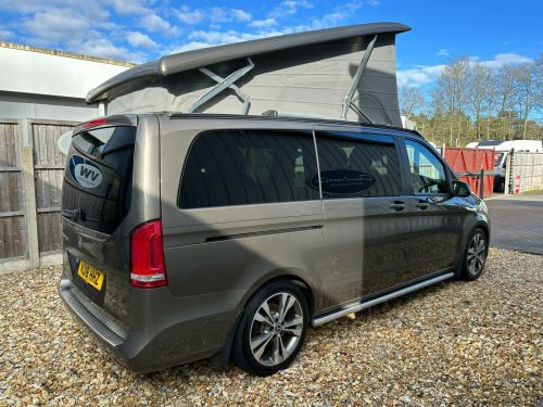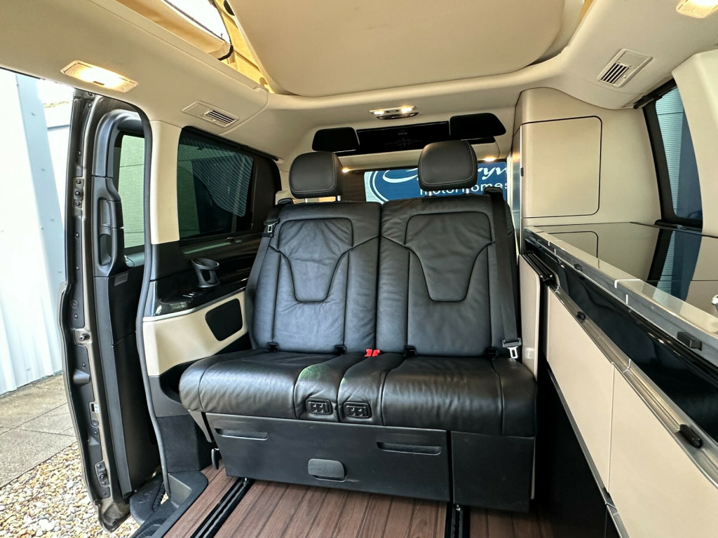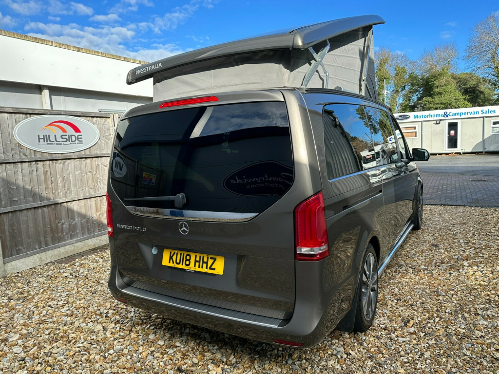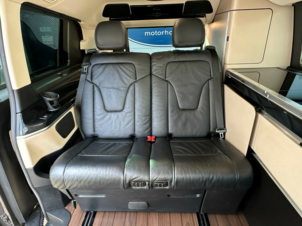 This Marco Polo is factory built by Westfalia for Mercedes. A flexible 4 berth with and electric pop up roof with a double bed, an electric sliding rear seat which converts into a double bed, and a side kitchenette which makes this the ultimate camper well equipped to take you anywhere.'' We have attempted to make the above description as accurate as possible but please bear in mind that honest mistakes can happen so this description cannot form any part of any future contract. Some items fitted to models on display may be excluded from said contract' tomatic, cruise control, elevating roof, euro 6, fridge, leather trim, plgv (under 3.5t), sub 6.0 m van , towbar, 4 berth, activity shower, electric elevated roof, electric sliding door, gas hob, led lighting, leisure battery, mains hookup, mercedes, rear park sensors, sink, electric tailgate, electric sliding door.