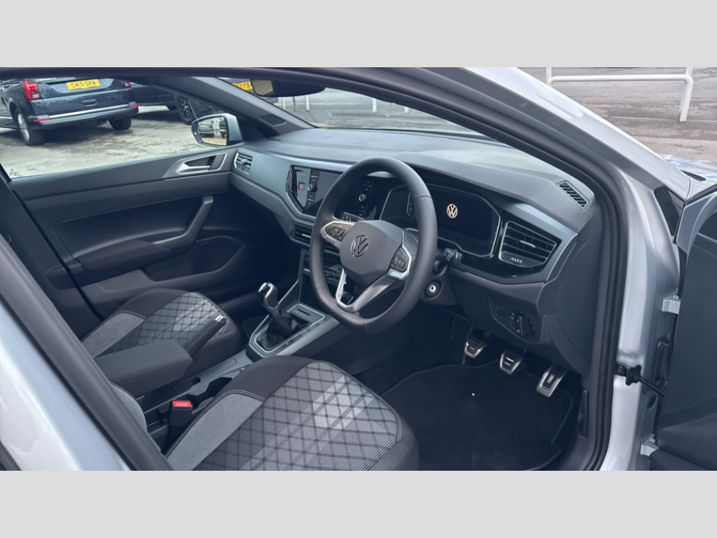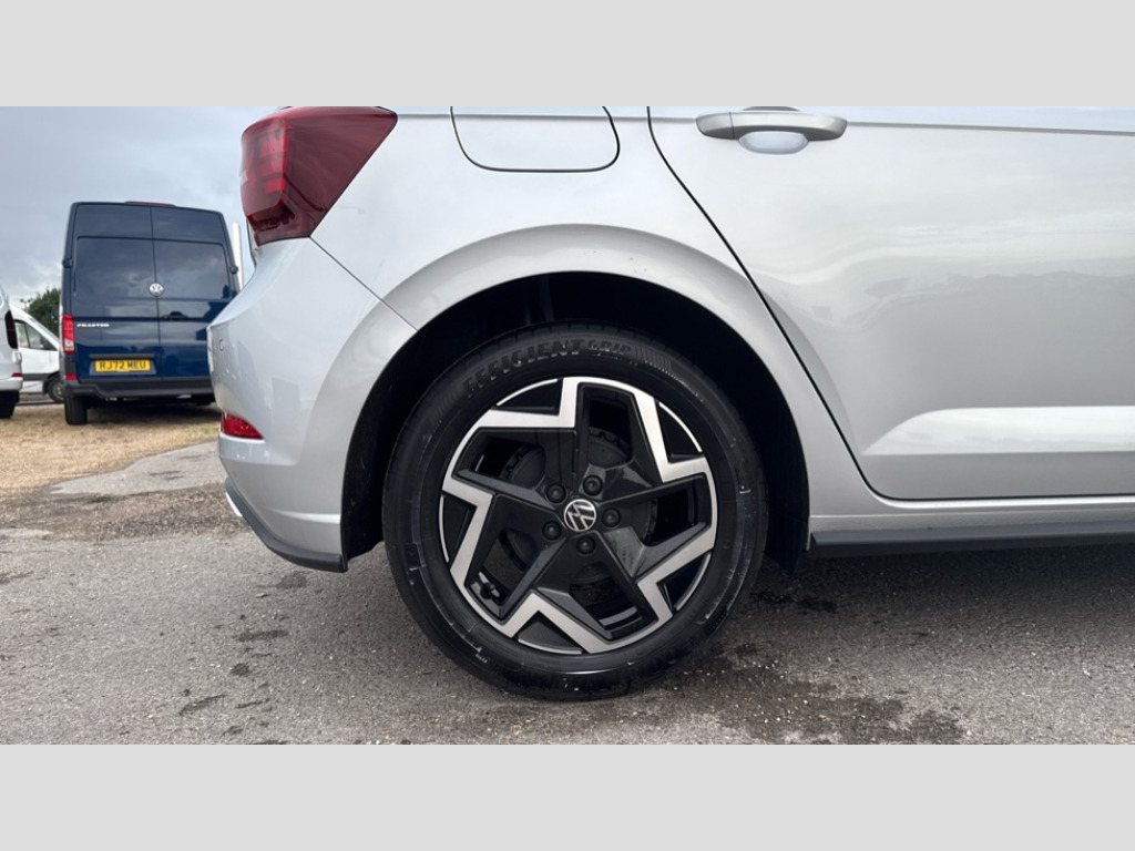 Volkswagen Polo 1.0 TSI R-Line 5dr Advanced driver attention and drowsiness monitor, Bluetooth mobile phone interface, Digital Cockpit Pro with 10.25" Display, Dynamic road sign display, Emergency call service, Multifunction camera, Power assisted speed sensitive steering, Predictive adaptive cruise control without follow-to-stop and speed limiter, Preparation for We connect and We connect plus, Speedo and rev counter, electronic odometer, trip, service interval display and fuel gauge, Standard rear axle, Travel Assist - Lane keeping system and traffic jam assist, Travel assist including emergency assist, Trip computer, Warning signal and warning light for front and rear seatbelts not fastened, Washer fluid level indicator, Wireless app connect, Front wheel drive, Rear shock absorpion, Start-stop system with battery regeneration (recuperation - energy recovery during braking), DAB Digital radio, Diversity antenna for FM reception, Body colour bumpers, Body colour door handles, Electric front windows, Front scuff plates with R-Line logo, Heat insulating glass windscreen, Power folding adjustable/heated exterior mirrors and front passenger exterior mirror lowering function, Rear electric windows, Rear fog light, Rear side wing doors, Rear windscreen washer and wiper with interval delay, Third brake light, 12V power socket in centre console, 2 USB-C ports in the front, 2 USB-C charging sockets on the center console in the rear, 3 rear head restraints, 60/40 split folding rear seat and rear seat bench not split, Air care climatronic air conditoning system with active combination filter and 2-zone temperature control, Black roof lining, Carpet mats, front and rear, Chrome plated radiator grille inserts, air vent surrounds and light switch surrounds, Door and side trim panel, Driver and front passenger seat height adjustment, Driver/passenger sunvisors with illuminated vanity mirrors, Front centre armrest, Front footwell illumination, Front seat backrest storage pockets, Front sports comfort seats, Handbrake lever handle in leather, Headliner in recycled material, Isofix child seat preparation easy-fit (for two outer rear seats, and front passenger seat) compatible with I-size, Karoso artvelours cloth upholstery, Leather trimmed gear knob, LED interior light with switch off delay and dimmer, 2 reading lights front and rear, Luggage compartment cover, Luggage compartment floor, Luggage compartment lighting, Lumbar adjustment for front seats, Multifunction steering wheel, Single front passenger seat, Stainless steel pedals, Standard pedal cluster, Light and sight pack - Polo R-Line/Black Edition, 3 point height adj front seatbelts + pretensioners, 3x3 point rear seatbelts, ABS, Driver and front passenger airbag with front passenger airbag deactivation, Drivers and front passengers safety optimised head restraints, ESC (Electronic stability control) + EDL (Electronic Differntial lock) and ASR (Traction control), Extended and predictive pedestrian/ cyclist protection, Front curtain and side airbags with center airbag, Hill hold control, Manual child lock in rear doors, Single tone horn, Tyre pressure loss indicator, Alarm with interior protection, Anti-theft alarm system with interior monitoring, backup horn, and towing protection, Anti-theft wheel bolts, Electronic engine immobiliser, Chrome applications on rotary light, mirror adjustment, window regulator switches, outlet with frame in black, Dark grey anodised matt decorative inserts in dash and front door panels, 16" Coventry alloy wheels, Low rolling resistance tyres
