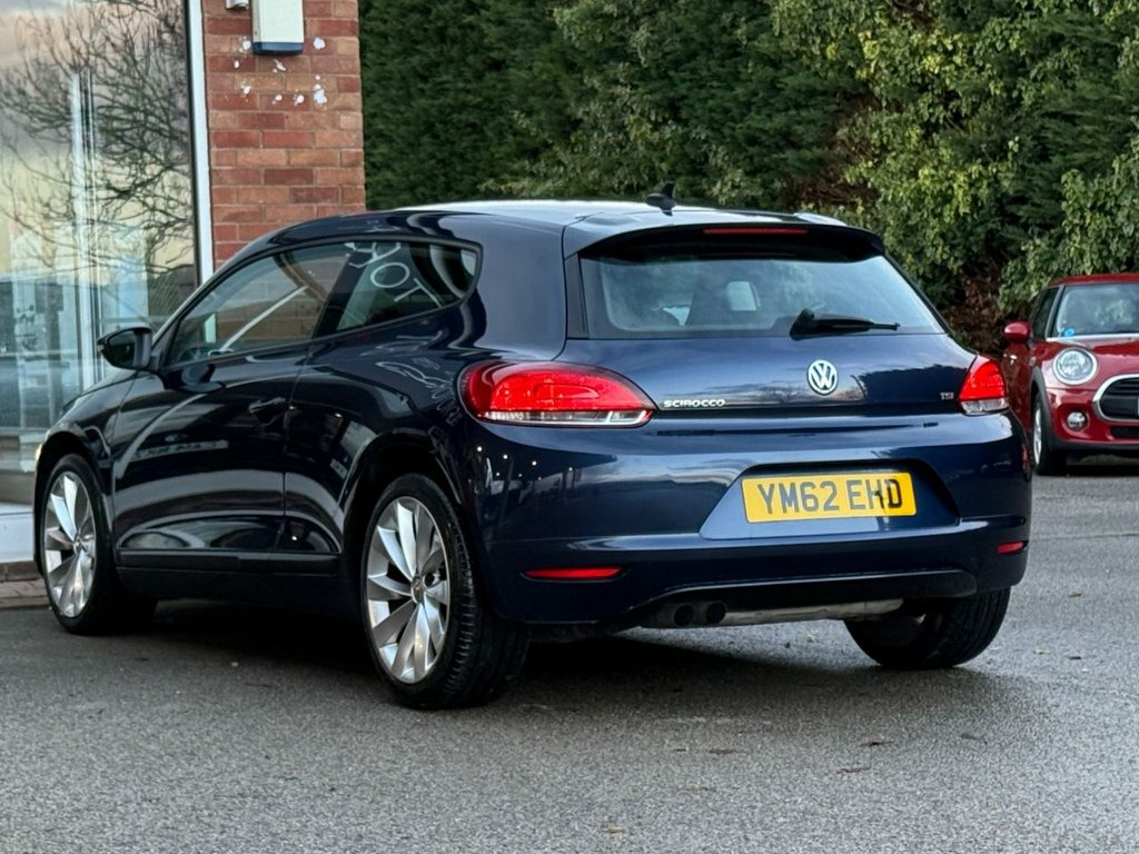 This 2013 Volkswagen Scirocco TSI presents a remarkable ownership history, having been cherished by just one owner from new and boasting a full service history, a very low mileage of only 70480 miles for its age and a clear vehicle history check, this 1.4 litre petrol model offers peace of mind. Inside, you'll find the RNS 510 DVD touch screen satellite navigation and radio system, complete with integrated voice control, and Bluetooth telephone preparation for hands free calls. The convenience of manual air conditioning is also included, alongside automatic driving lights activated by a dusk sensor. Experience the engaging performance of this Scirocco, which achieves 0-60mph in a swift 8.0 seconds. This acceleration figure demonstrates its capability compared to other vehicles in its class. The combination of its sporty design, low mileage, single owner provenance, and well appointed features makes this Volkswagen Scirocco a compelling choice for those seeking a stylish and well maintained coupe. 18in Alloy Wheels - Interlagos, Night Blue, RNS 510 DVD Touch Screen Satellite Navig, 12V Socket - Luggage Compartment, 17in Alloy Wheels - Long Beach, ABS - Anti-Lock Braking System, ASR - Anti Slip Regulation, Air Conditioning - Manual, Airbags - Curtain Front and Rear, Airbags - Driver, Airbags - Front Passenger, Airbags - Front Passenger with Deactivat, Airbags - Front Seat Side Impact, Alarm with Interior Protection, Anti-Theft Wheel Bolts, Armrest - Front Centre with Storage Comp, Automatic Dimming Rear View Mirror, Aux-In Socket, Bluetooth Telephone Preparation for Hand, Body Coloured Bumpers and Door Handles, Body-Coloured Door Mirrors with Integrat, Brushed Aluminium Instrument Surr