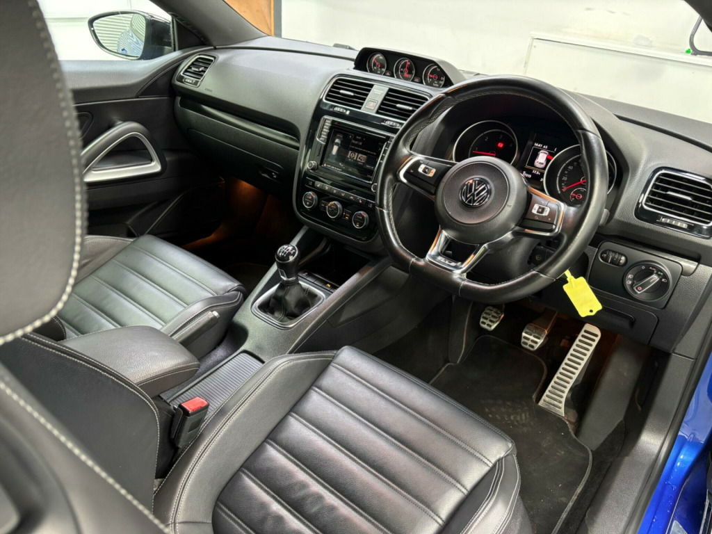 With a service history, this 2017 Volkswagen Scirocco R-Line Black Edition finished in Race blue metallic is a great choice. The Scirocco, with its 2.0L diesel engine and Euro 6 emission class, represents a blend of style and efficiency. The R-Line Black Edition trim adds a touch of sporty sophistication to this model.The car is equipped with a Winter Pack including leather upholstery, ensuring comfort in colder months. Parking is made easier with front and rear parking sensors, including parking assistance. The 2 Zone Electronic Climate Control, with automatic air recirculation, maintains a pleasant cabin environment. Automatic headlights provide added convenience. The large boot space is a practical advantage over similar vehicles, offering ample room for luggage or shopping. Furthermore, acceleration from 0-62mph in 8.6 seconds indicates that this vehicle is more responsive than others in its class. For peace of mind, this vehicle comes with a 3-month warranty.. 12V Socket - Luggage Compartment, 19in Alloy Wheels - Lugano Black, 2 Zone Electronic Climate Control with Automatic Air Recirculation, ABS - Anti-Lock Braking System, ASR - Anti Slip Regulation, Airbags - Curtain Front, Airbags - Curtain Rear, Airbags - Driver, Airbags - Front Passenger, Airbags - Front Passenger with Deactivation Switch, Airbags - Front Seat Side Impact, Alarm with Interior Protection, Aluminium Look Pedals, Anti-Theft Wheel Bolts, Armrest - Front Centre with Storage Compartment, Automatic Dimming Rear View Mirror, Bluetooth Telephone Preparation for Hands Free Profile Enabled Telephones, Body Coloured Bumpers, Body Coloured Door Handles, Branded Points of Interest for Sat Nav, Brushed Aluminium Instrument Surrounds, Car-Net Guide and Inform - 3 Year Subscription, Carpet Mats - Front and Rear, Central Locking - Remote with 2 Remote Keys, Colour Touch Screen - 6.5in, Composition Media System, Cup Holders - Front x2, DAB+ - Digital Radio Reception, Dashboard and Centre Console - Carbon Look Effect Inserts, Daytime Running Lights, Differential Lock - Electronic, Discover Navigation Touch-Screen System, Door Mirrors - Electrically Adjustable and Heated, Door Mirrors - Painted - Deep Black, Door Sill Protectors with R-Line Logo, Dust and Pollen Filter, EBD - Electronic Brake Pressure Distribution, ESC - Electronic Stability Control, Electric Windows - Front, Electronic Engine Immobiliser, European Mapping Data, Exterior Temperature Gauge, Footwell Illumination - Front, Front Fog Lights, Gear Shift Indicator, Glovebox - Illuminated and Cooled, Glovebox - Lockable, HBA - Hydraulic Brake Assist, Head Restraints - Front Whiplash Optimised, Head Restraints - Front with R-Line Logo, Head Restraints - Rear x2 Integrated, Headlights - Coming-Leaving Home Function, Headlights - Dusk Sensor - Automatic Driving Lights, Headlights - Halogen Clear - Range Adjustable, Heated Front Seats, Height and Reach Adjustable Steering Wheel, Hill Hold Assist, ISOFIX Child Seat Preparation - Outer Rear, Interior Light Delay, Keys - Two Remote Control Folding Keys, LED Rear Lights, LED Rear Number Plate Lights, Leather Trimmed Gear Knob, Leather Trimmed Handbrake Grip, Lights on Warning Buzzer, Load Lashing Points x4 in Luggage Compartment, Luggage Compartment - Hooks x2, Luggage Compartment Cover, Luggage Compartment Light, MDI - Multi Device Interface with USB - iPod Connection Cables, Map View - 2D and 3D, Multifunction Computer - Colour, Painted Roof - Deep Black, Parking Sensors - Front, Parking Sensors - Rear, Power Assisted Steering - Speed Sensitive, R-Line Styling Pack - Front and Rear Bumpers - Radiator Grille and Side Skirts, Radiator Grille - R-Line Design, Rain Sensor, Reading Lights - Front x2, Rear Spoiler Painted Deep Black, Rear Wash Wipe with Intermittent Wipe, Reflectors in Doors, Roof Lining - Black, Route Options for Sat Nav - Fast-Short-Eco, SD Card Reader, SMS Functionality - Read - Compose and Send SMS Messages Using Touch Screen Display - Android Compatible Smartphones Only, Seatbelt Reminder, Seats - Easy Entry Sliding Front, Seats - Front Electric Lumbar Support, Seats - Front Sports, Seats - Height Adjustment - Front, Seats - Split Folding Rear Backrests 50-50, Single CD Player, Sound Output - 4x20 Watt, Spare Wheel - Space Saver Steel, Speakers x8, Speed Limit Display, Sports Instrument Dials, Steering Wheel - 3-Spoke - Leather Trimmed, Steering Wheel - Aluminium Inserts, Steering Wheel - Multifunction, Steering Wheel - R-Line Logo, Storage Compartment in Roof Console, Storage Compartments in Doors, Sun Visors - Vanity Mirrors and Illuminated, TMC Plus - Traffic Message Channel, Tinted Glass - Heat Insulating Rear 90% Light Absorbing from B Pillar Backwards, Title and Cover Art Display, Tyre Pressure Loss Indicator, Unique R-Line Badging, White Instrument Lighting, Vienna Leather - Titan Black, Winter Pack icw Leather Upholstery. Full service history