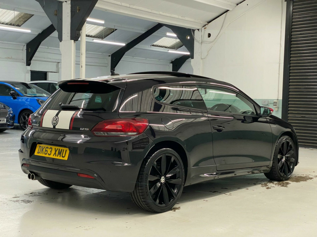 REGISTRATION: DK63XMUThis 2013 Volkswagen Scirocco TDI GTS presents a compelling proposition with its low mileage for its age and a clear vehicle history. Having been owned by only two previous keepers, this 2.0 litre diesel model has covered 95,500 miles, with its last service recorded at this mileage. The MOT remains valid until December 2026, and a three month warranty is included for your peace of mind. Notable features include heated front seats for comfort, automatic dusk sensing headlights, and a two zone electronic climate control system with automatic air recirculation. Enjoy the open air with the panoramic sunroof, and stay connected on the go with Bluetooth telephone preparation.The Scirocco TDI GTS offers an engaging driving experience, highlighted by its brisk 0-62mph acceleration time of just 8.1 seconds. This performance, combined with its efficient 2.0 litre diesel engine, positions it favourably against other vehicles in its class. The partial service history indicates consistent maintenance, further enhancing its appeal as a well cared for example of this sporty coupe.TO AVOID DISAPPOINTMENT, WE RECOMMEND RESERVING A VEHICLE WITH A REFUNDABLE HOLDING DEPOSIT OF £99. WITHOUT A HOLDING DEPOSIT, WE ARE WITHIN OUR RIGHTS TO SELL THE VEHICLE. PLEASE NOTE, THE SPECIFICATION OUTLINED WITHIN THIS ADVERT MAY NOT BE ACCURATE. PLEASE CONTACT US IF YOU HAVE ANY QUESTIONS REGARDING THE SPEC., nted glass - heat insulating rear 90% light absorbing from b pillar backwards, cruise control, rns 510 dvd touch screen satellite navigation and radio system with integrated voice control, 12v socket - luggage compartment, 18in alloy wheels - thunder, 2 zone electronic climate control with automatic air recirculation, abs - anti-lock braking system, acc - adaptive chassis control, asr - anti slip regulation, air vent surrounds - piano black, airbags - curtain front and rear, airbags - driver, airbags - front passenger, airbags - front passenger with deactivation switch, airbags - front seat side impact, alarm with interior protection, aluminium look pedals, anti-theft wheel bolts, armrest - front centre with storage compartment, automatic dimming rear view mirror, aux-in socket, black peak decorative inserts, bluetooth telephone preparation for hands free profile enabled telephones, body coloured bumpers and door handles, brushed aluminium instrument surrounds, carpet mats - front and rear with red stitching, central locking - remote with 2 remote keys, cherry red rear light clusters, colour screen - 5in, cup holders - front x2, dab+ - digital radio reception, dashboard and centre console - matt chrome, differential lock - electronic, door mirrors - contrasting with integrated indicators, door mirrors - electrically adjustable and heated, dust and pollen filter, ebd - electronic brake pressure distribution, esp - electronic stability programme, electric windows - front, exhaust tailpipes - chrome twin, exterior temperature gauge, flat tyre indicator, footwell illumination - front, front fog lights, gts exterior wing badges, glovebox - illuminated - cooled - lockable, golf ball gearknob, hba - hydraulic brake assist, head restraints - front whiplash optimised, head restraints - rear x2 integrated, headlights - coming-leaving home function, headlights - dusk sensor - automatic driving lights, headlights - halogen clear - range adjustable, heated front seats, height and reach adjustable steering column, hill hold assist, isofix child seat preparation - outer rear, interior light delay, lights on warning buzzer, luggage compartment cover, luggage compartment light, mdi - multi device interface with usb - ipod connection cables, panoramic sunroof, power assisted steering - speed sensitive, rns 315 touch screen satellite navigation and radio system, radiator grille - r-line design, rain sensor, reading lights - front x2, rear roof spoiler, rear wash wipe with intermittent wipe, reflectors in doors, roof lining - black, sd card reader, seatbelt reminder, seats - easy entry sliding front, seats - front electric lumbar support, seats - front sports, seats - front sports with gts logo on head restraints, seats - split folding rear backrests 50-50, spare wheel - space saver steel, speakers x8, steering wheel - 3-spoke - leather trimmed - multifunction with aluminium trim & gts logo, steering wheel - multifunction, steering wheel - multifunction - paddle shift, storage compartment in roof console, storage compartments in doors, stripes on bonnet and roof, sun visors - vanity mirrors and illuminated, tinted glass - heat insulating rear 65 percent light absorbing from b pillar backwards, unique gts kick plates, unique gts styling pack - bumpers - radiator grille & side sills, white instrument lighting