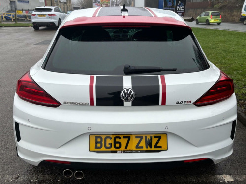 WE ARE PLEASED TO OFFER THIS HIGHLY DESIRABLE HIGH SPECIFICATION WELL MAINTAINED RARE LOW MILEAGE LOW OWNERSHIP AUTOMATIC EURO SIX VOLKSWAGEN SCIROCCO 2.0 TDI R-LINE DSG THREE DOOR + FINISHED IN THE BEST COLOUR OF PURE WHITE PAINTWORK AND IS COMPLEMENTED WITH THE EXTERIOR STYLING PACK WITH A CONTRASTING FULL TITAN BLACK VIENNA LEATHER UPHOLSTERY + ONLY 33,540 MILES HAS BEEN COVERED IN TOTAL BY TWO OWNERS + LAST OWNER SINCE SEPTEMBER 2020 AND IS BACKED WITH AN EXCELLENT SERVICE + JUST BEEN SERVICED WHICH INCLUDED THE CAMBELT KIT AND WATER PUMP BEING REPLACED PLUS THE GEARBOX BEING SERVICED TOO + THE MOT IS TILL FEBRUARY 2027 + OUTSTANDING CONDITION THROUGHOUT AND DRIVES SUPERB + 184 BHP MODEL + FULL R-LINE SPECIFICATION WHICH INCLUDES DISCOVER SATELLITE NAVIGATION / HEATED FRONT SEATS / MULTI FUNCTION LEATHER SPORTS STEERING WHEEL / FULL ELECTRIC PACK / DAB TUNER/ TINTED GLASS / HILL START ASSIST / MOBILE PHONE INTERFACE / SPRT EQUIPMENT / 19 TALLADEGA ALLOY WHEELS FINISHED IN GLOSS BLACK / PARKING DISTANCE CONTROL FRONT AND REAR / PREMIUM MULTI FUNCTION DISPLAY WITH MULTI COLOUR DISPLAY / AUTO DIMMING REAR VIEW MIRROR PLUS MUCH MORE + HANDBOOK PACK + DIGITAL PRINTOUT SERVICE HISTORY + 2 X KEYS + ANY TRIAL OR INSPECTION IS WELCOMED + HPI CLEAR WITH CERTIFICATE + SIX MONTHS NATIONWIDE WARRANTY IS INCLUDED + VOLKSWAGEN BUILD QUALITY + VIEWING IS ESSENTIAL TO APPRECIATE THIS TRULY CHERISHED EXAMPLE OF THIS MUCH SOUGHT AFTER MODEL. We have been established in Baildon for over 20 years. All our vehicles are fully inspected, prepared and valeted. We are finance specialists. Part exchange is welcome. All major credit and debits accepted. Open 7 days. Our postcode is BD177EX.