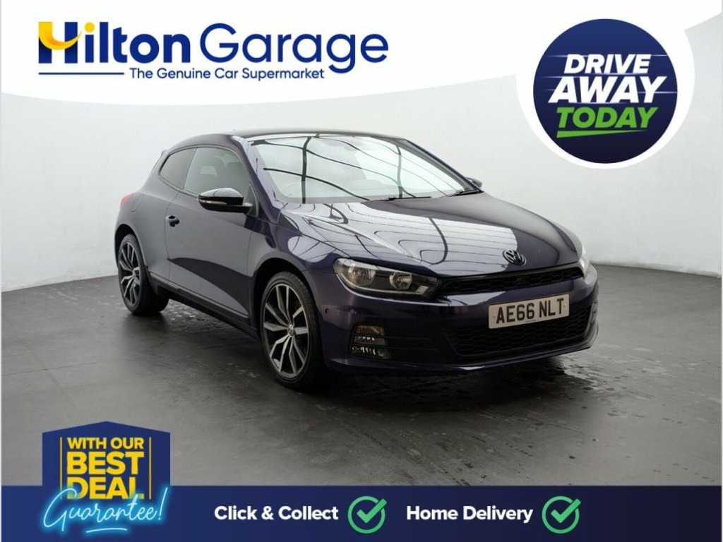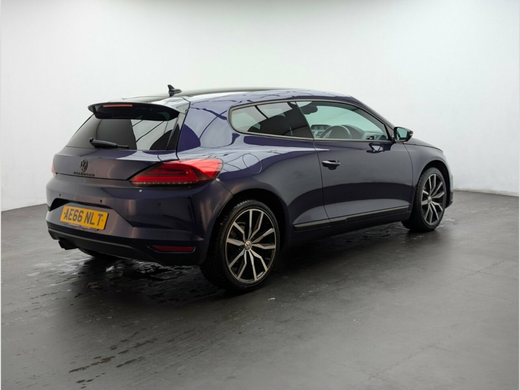 18" alloys, Park assist, Cruise control, Winter pack and Parking sensors - front and rear. Last service done at 41558 miles on 19/10/2023. This 2016 Volkswagen Scirocco TSI GT Black Edition is a superb example of a sporty yet practical coupé. Powered by a responsive 2.0 litre petrol engine, this Euro 6 compliant model offers an engaging driving experience with a 0-60mph time of just 7.4 seconds. The GT Black Edition trim level ensures a stylish appearance, complemented by chrome twin exhaust tailpipes. Inside, you'll find comfort and convenience with the included Winter Pack, which features heated seats for those colder journeys. For effortless parking, this Scirocco is equipped with Park Assist and both front and rear parking sensors, making manoeuvring in tight spaces a breeze. The generous boot space provides ample room for luggage or shopping, proving that this car doesn't compromise on practicality. 12V Socket - Luggage Compartment, 18in Alloy Wheels - Lisbon Black, 2 Front Three-Point Seat Belts with Tens, 2 Zone Electronic Climate Control with A, ABS - Anti-Lock Braking System with HBA , Airbags, Alarm with Interior Protection, Aluminium Look Pedals, Armrest - Front Centre with Storage Comp, Automatic Coming Home Lighting Function, Bag Hooks in the Luggage Compartment x2, Black Door Mirrors with Integrated Indic, Black Roof and Rear Roof Spoiler, Black Rooflining, Body Coloured Bumpers and Door Handles, Brushed Aluminium Instrument Surrounds, Car Net - Guide and Inform (3 Year Subsc, Carpet Mats - Front and Rear, Coasting Function, Composition Media System, Cruise Control, Cup Holders