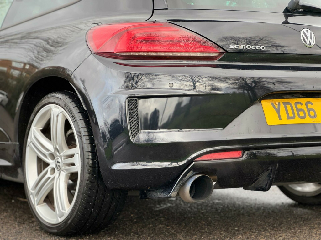 This 2016 Volkswagen Scirocco TSI R Line boasts a clear vehicle history, offering you peace of mind. This stylish coupe features a powerful 2.0 litre petrol engine, meeting Euro 6 emissions standards. Inside, you'll find comfortable heated front seats and a 2 zone electronic climate control system for personalised comfort. Practicality is enhanced with rear parking sensors, and the automatic driving lights, activated by a dusk sensor, add convenience and safety.The Scirocco TSI R Line is designed for an engaging drive, accelerating from 0 to 62 miles per hour in just 7.4 seconds. This performance, combined with its R Line trim and chrome twin exhaust tailpipes, sets it apart from other vehicles in its class, offering a more dynamic and refined driving experience. ar tinted glass - b pillar backwards - approx 90 percent tinted, tinted glass - heat insulating rear 90% light absorbing from b pillar backwards, 19in alloy wheels - lugano, 19in alloy wheels - lugano black, vienna leather - titan black, winter pack icw bi-xenon headlights and leather upholstery, 12v socket - luggage compartment, 19in alloy wheels - talladega, 2 zone electronic climate control with automatic air recirculation, abs - anti-lock braking system, asr - anti slip regulation, airbags - curtain front, airbags - curtain rear, airbags - driver, airbags - front passenger, airbags - front passenger with deactivation switch, airbags - front seat side impact, alarm with interior protection, aluminium look pedals, anti-theft wheel bolts, armrest - front centre with storage compartment, automatic dimming rear view mirror, bluetooth telephone preparation for hands free profile enabled telephones, body coloured bumpers, body coloured door handles, body-coloured door mirrors with integrated indicators, branded points of interest for sat nav, brushed aluminium instrument surrounds, car-net guide and inform (3 year subscription from new), carpet mats - front and rear, central locking - remote with 2 remote keys, coasting function, colour touch screen - 6.5in, composition media system, cup holders - front x2, dab+ - digital radio reception, dashboard and centre console - carbon look effect inserts, daytime running lights, differential lock - electronic, discover navigation touch-screen system, door mirrors - electrically adjustable and heated, door sill protectors with r-line logo, dust and pollen filter, ebd - electronic brake pressure distribution, esc - electronic stability control, electric windows - front, electronic engine immobiliser, european mapping data, exhaust tailpipes - chrome twin, exterior temperature gauge, footwell illumination - front, front fog lights, glovebox - illuminated and cooled, glovebox - lockable, hba - hydraulic brake assist, head restraints - front whiplash optimised, head restraints - front with r-line logo, head restraints - rear x2 integrated, headlights - coming-leaving home function, headlights - dusk sensor - automatic driving lights, headlights - halogen clear - range adjustable, heated front seats, height and reach adjustable steering wheel, hill hold assist, isofix child seat preparation - outer rear, interior light delay, keys - two remote control folding keys, led rear lights, led rear number plate lights, leather trimmed gear knob, leather trimmed handbrake grip, lights on warning buzzer, load lashing points x4 in luggage compartment, luggage compartment - hooks x2, luggage compartment cover, luggage compartment light, mdi - multi device interface with usb - ipod connection cables, map view - 2d and 3d, multifunction computer - colour, parking sensors - front, parking sensors - rear, power assisted steering - speed sensitive, r-line styling pack - front and rear bumpers - radiator grille and side skirts, radiator grille - r-line design, rain sensor, reading lights - front x2, rear roof spoiler, rear wash wipe with intermittent wipe, reflectors in doors, roof lining - black, route options for sat nav - fast-short-eco, sd card reader, sms functionality - read - compose and send sms messages using touch screen display - android compatible smartphones only, seatbelt reminder, seats - easy entry sliding front, seats - front electric lumbar support, seats - front sports, seats - height adjustment - front, seats - split folding rear backrests 50-50, single cd player, sound output - 4x20 watt, spare wheel - space saver steel, speakers x8, speed limit display, sports instrument dials, steering wheel - 3-spoke - leather trimmed, steering wheel - aluminium inserts, steering wheel - multifunction, steering wheel - paddle shift, steering wheel - r-line logo, storage compartment in roof console, storage compartments in doors, sun visors - vanity mirrors and illuminated, tmc plus - traffic message channel, tinted glass - heat insulating rear 65 percent light absorbing from b pillar backwards, title and cover art display, tyre pressure loss indicator, unique r-line badging, white instrument lighting