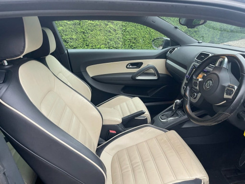 VOLKSWAGEN SCIROCCO FINISHED IN DEEP BLACK (£465), Individual leather in cornsilk beige and black (£2078), 19" Alloy wheels (£680), Navigation system, Heated seats, Panoramic sunroof (£710), Multi function steering wheel, Front centre armrest, Rear parking sensors (£364), Iso-fix seating system, Automatic headlights, Paddle shift gears, Kenwood multi media system with Radio and CD player, Bluetooth phone connectivity, Climate control and air conditioning, Electric lumbar support, Reverse parking camera. 19in Alloy Wheels - Lugano, Deep Black, Leather- Individual Vienna- Cornsilk Bei, Panoramic Sunroof, Rear Parking sensor