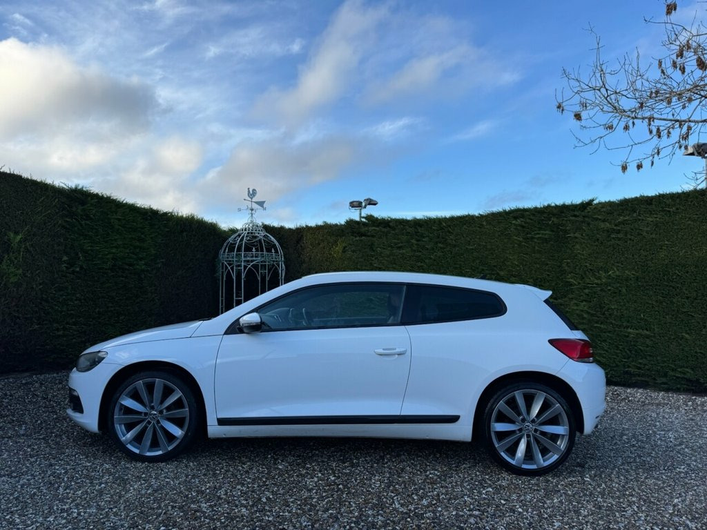 VOLKSWAGEN SCIROCCO FINISHED IN CANDY WHITE, Complete with full exclusive tan leather trim heated with electric lumbar adjust (£2100), Navigation system, 19" Lugano alloy wheels in silver, Privacy glass, Climate control and air conditioning, Radio and CD player, Multi function flat bottom steering wheel, Rear parking sensors (£365), 19in Alloy Wheels - Lugano, Candy White, Leather- Exclusive Vienna- Heated Seats , Parking Sensors - Rear