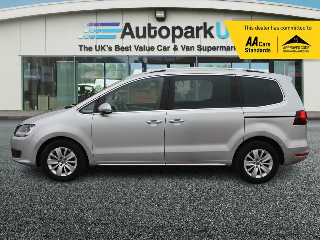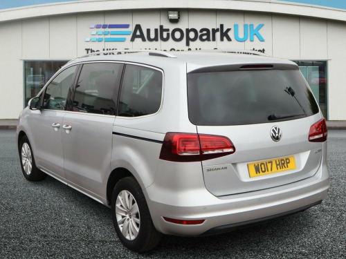 The Volkswagen Sharan 2.0 TDI SE is a seven-seat MPV has been cared for by one former keeper and has a good service history.  engineered for spacious practicality and long-distance comfort. Powered by a 2.0-litre turbocharged diesel engine paired with a 6-speed DSG automatic transmission. This drivetrain offers smooth gear transitions and responsive torque delivery, ideal for both urban navigation and motorway cruising.  Inside, the SE trim showcases Volkswagen's modular cabin architecture. The Easy Folding Seating System allows independent folding of the three second-row and two third-row seats, enabling flexible cargo and passenger configurations. The cabin features cloth upholstery, lumbar-adjustable front seats, and under-seat storage drawers, while climate control, rear ventilation, and folding tray tables enhance comfort across all rows. The Composition Media infotainment system integrates a touchscreen interface with Bluetooth, DAB radio, and USB connectivity. Practicality is a core strength: the Sharan offers up to 2,430 litres of cargo space with seats folded, sliding rear doors for easy access in tight spaces, and roof rails for external storage solutions. Safety is comprehensive, including Front Assist with City Emergency Braking, Electronic Stability Control, ISOFIX mounts across multiple seats, and adaptive cruise control. The rigid body structure and Euro NCAP 5-star rating reinforce its family-friendly credentials. At Autopark UK, we pride ourselves on qua * FREE MOT ON DEPOSIT (no advisories)  *, **AWAITING PDI 110 POINT INSPECTION BEFO