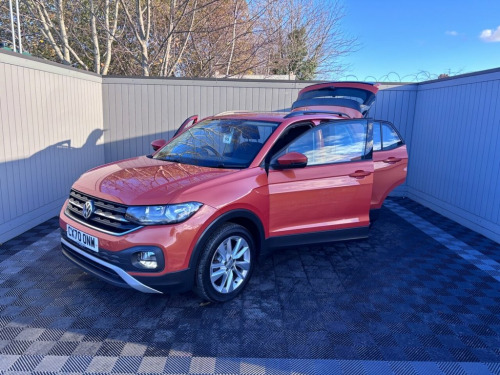 THIS 2020 VOLKSWAGEN T-CROSS TSI SE IS A SUPERB EXAMPLE, HAVING BEEN OWNED BY JUST ONE CAREFUL KEEPER AND BOASTING A PARTIAL SERVICE HISTORY. THIS STYLISH COMPACT SUV IS POWERED BY AN EFFICIENT 1.0 LITRE EURO 6 COMPLIANT PETROL ENGINE, OFFERING A REMARKABLE FUEL ECONOMY OF UP TO 50 MILES PER GALLON. INSIDE, YOU'LL FIND A HOST OF CONVENIENT FEATURES DESIGNED TO ENHANCE YOUR DRIVING EXPERIENCE, INCLUDING A BLUETOOTH MOBILE PHONE INTERFACE FOR SEAMLESS CONNECTIVITY, AND APP CONNECT WITH WIRELESS ANDROID AUTO AND APPLE CARPLAY INTEGRATION. FOR ADDED SAFETY AND EASE ON LONGER JOURNEYS, IT IS EQUIPPED WITH ADAPTIVE CRUISE CONTROL AND A BLIND SPOT MONITOR WITH LANE KEEPING SYSTEM. THE CABIN IS KEPT COMFORTABLE WITH A MANUALLY CONTROLLED AIR CONDITIONING SYSTEM. THE T-CROSS TSI SE STANDS OUT WITH ITS LOW CO2 EMISSIONS AND FALLS INTO A LOW INSURANCE GROUP, MAKING IT AN ECONOMICAL CHOICE FOR MANY DRIVERS. THESE HIGHLIGHTS DEMONSTRATE HOW THIS PARTICULAR VOLKSWAGEN T-CROSS OFFERS EXCELLENT VALUE AND A MORE COST EFFECTIVE OWNERSHIP PROPOSITION COMPARED TO OTHER VEHICLES IN ITS CLASS. ITS COMBINATION OF PRACTICALITY, MODERN TECHNOLOGY, AND EFFICIENT PERFORMANCE MAKES IT A COMPELLING OPTION FOR THOSE SEEKING A VERSATILE AND USER FRIENDLY COMPACT SUV. 12V Socket - Centre Console, 17in Alloy Wheels - Clayton, 3-Point Seat Belt for Centre Rear Seat, 3-Point Seat Belts in Front with Electri, ABS - Anti-Lock Braking System, Adaptive Cruise Control, Alarm, App Connect - Wireless Car-Net, Automatic Coming-Leaving Home Lighting F, Automatic Dimming Rear View Mirror, Blind Spot Monitor and Lane Keeping Syst, Bluetooth Mobile Phone Interface, Body Coloured Bumpers, Body-Coloured Door Mirrors with Integrat, Breakdown Kit, Child Seat Anchor for Child Seat System , Curtain Airbag System for Front and Rear, DAB+ - Digital Radio Reception, Decorative Inserts, Diversity Antenna for FM Reception, Door and Side Trim Panel, Driver Alert System, Driver and