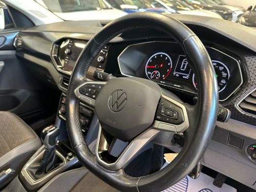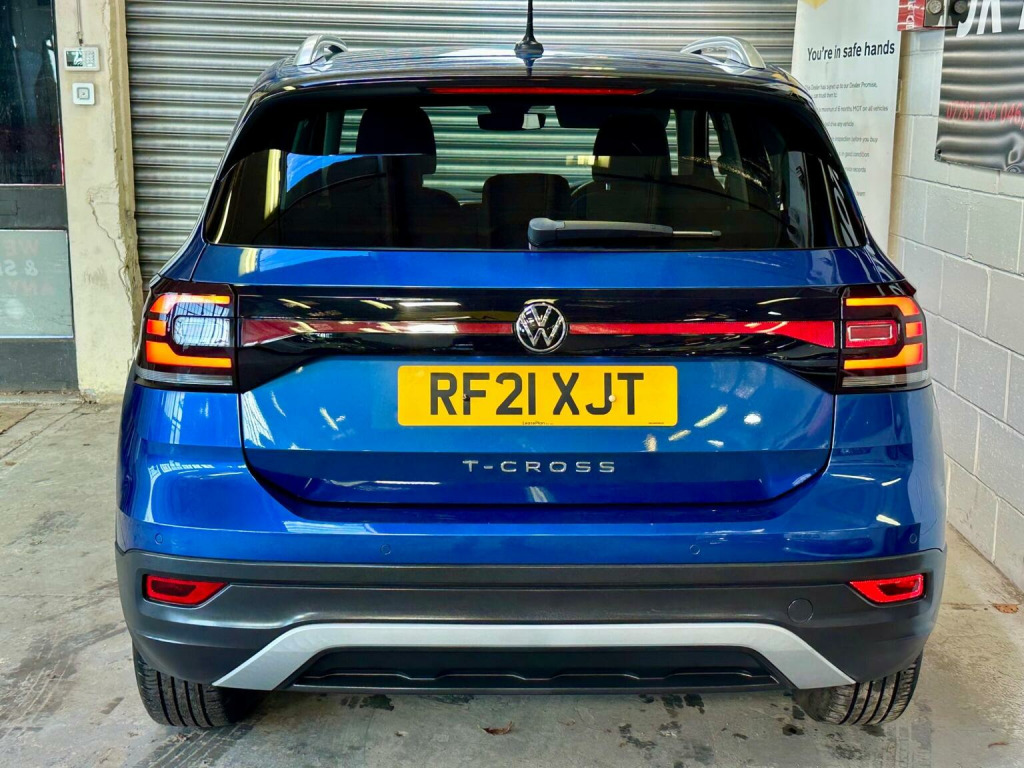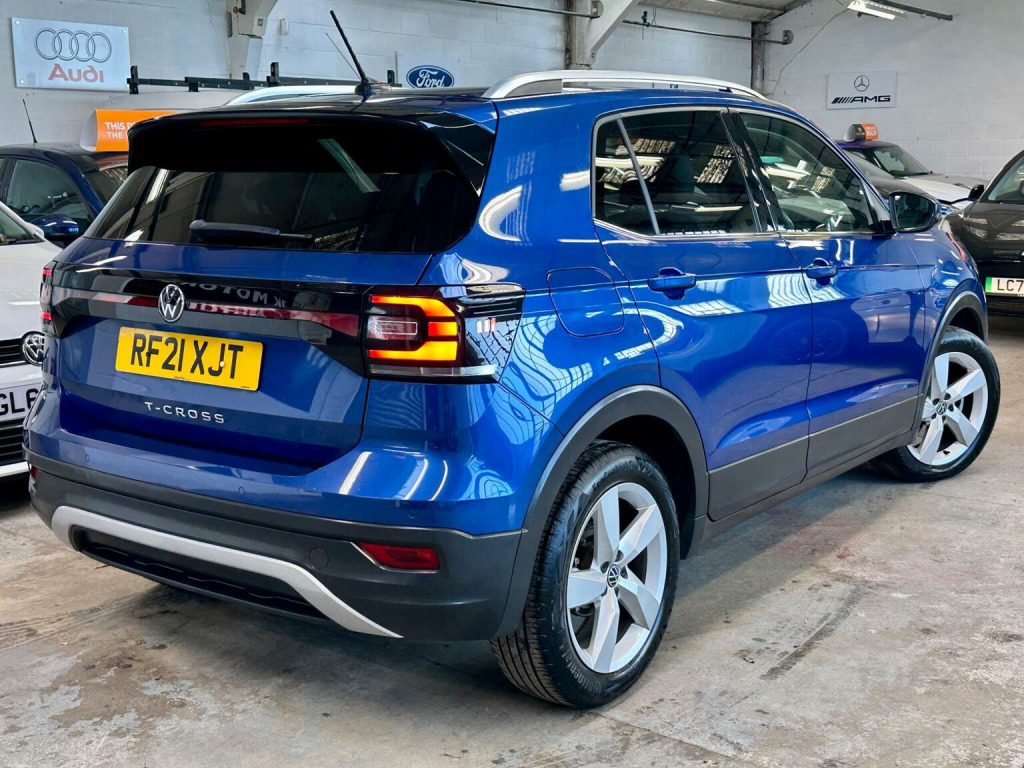 Ready to drive away today one owner from new, showroom condition Volkswagen T-Cross 1.0 TSI SEL DSG Euro 6 (s/s) 5dr. Just been serviced and through MOT, no advisories. Looks great finished in metallic Reef blue, 17 alloy wheels, privacy glass, LED lights and subtle rear roof spoiler. Interior makes for a modern experience featuring half leather trim, titan black pearl finish dashboard and surrounds, touchscreen multimedia featuring apple car play/android mirror, Bluetooth connectivity, sat nav, DAB radio, front and rear parking sensors with on screen parking aid, multifunction leather steering wheel, active cruise control with lane departure and collision warning system. 2 keys, buy with confidence from an award winning, AA Approved dealership with a variety of warranty products available. Viewing available seven days a week by appointment (evening and weekends available), nationwide delivery. Same day finance decisions in house at competitive rates, nil deposit options, please inquire with a simple call to drive away today. Drive away insurance, part exchange welcome, top prices paid. Member of the Motor Trade trading standards and motoring ombudsman code of practice.