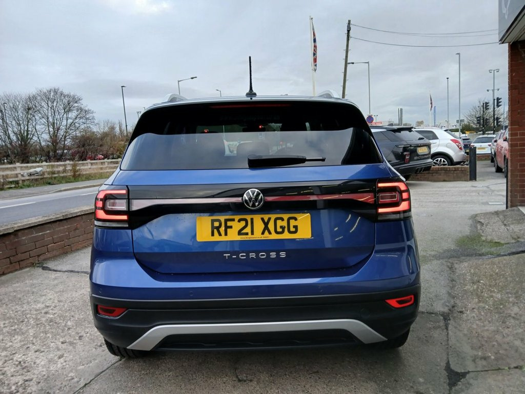 Volkswagen T-Cross 1.0 TSI SEL SUV – Low Miles, Excellent Condition Introducing this stunning Volkswagen T-Cross 1.0 TSI SEL Automatic, finished in eye-catching Reef Blue Metallic paintwork. With only 21,800 miles from new and just one careful owner, this Euro 6 compliant SUV is a fantastic example of Volkswagen's renowned build quality, practicality, and style. Powered by a refined 1.0-litre TSI petrol engine delivering 110bhp, paired with a smooth automatic gearbox, the T-Cross offers the perfect balance of efficiency, comfort, and responsive performance. Whether cruising on the motorway or navigating city streets, this SUV provides a confident and enjoyable drive. The well-equipped SEL specification ensures every journey is both convenient and enjoyable. Features include satellite navigation, front and rear parking sensors, climate control, and 17" alloy wheels that complement its sporty and modern design. Privacy glass enhances both aesthetics and comfort, while the spacious, well-finished interior showcases Volkswagen's premium materials and ergonomic design. This T-Cross is stunning inside and out, clearly cherished and maintained to a high standard. With its low mileage, strong fuel efficiency, and compliance with Euro 6 emissions standards, it's an ideal choice for drivers seeking a stylish, reliable, and economical compact SUV. Low-rate finance options are available, making ownership simple and affordable, and nationwide delivery can be Reef Blue, 12V Socket - Centre Console, 17in Alloy Wheels - Chesterfield, 2 x USB-C Connection - USB Charging Sock, 3 Rear Three-Point Seat Belts, 3-Point Seat Belts in Front with Height , ABS - Anti-Lock Braking System, Adaptive Cruise Control, Airbags - Front Seat Side Impact, Alarm, Automatic Coming-Leaving Home Lighting F, Automatic Dimming Rear View Mirror, Automatic Hazard Lights Activation Under, Automatic Post-Collision Braking System, Body Coloured Bumpers, Body Coloured Door Handles, Body-Coloured Door Mirrors with Integrat, Carpet Mats - Front and Rear, Child Security Locks in the Rear Doors, Climate Control - 2Zone Electronic Air C, Curtain Airbag System for Front and Rear, Decor